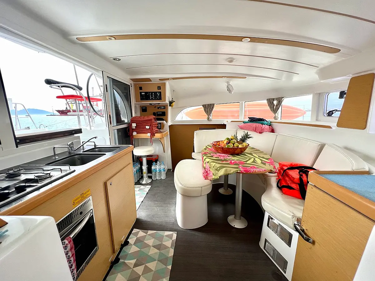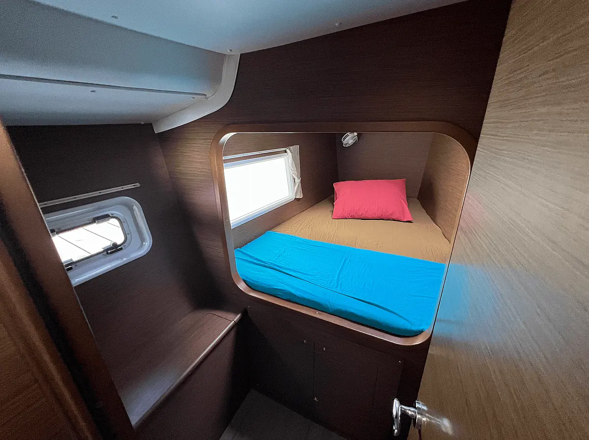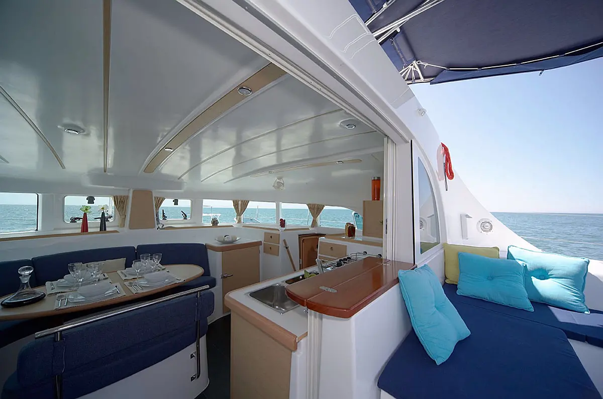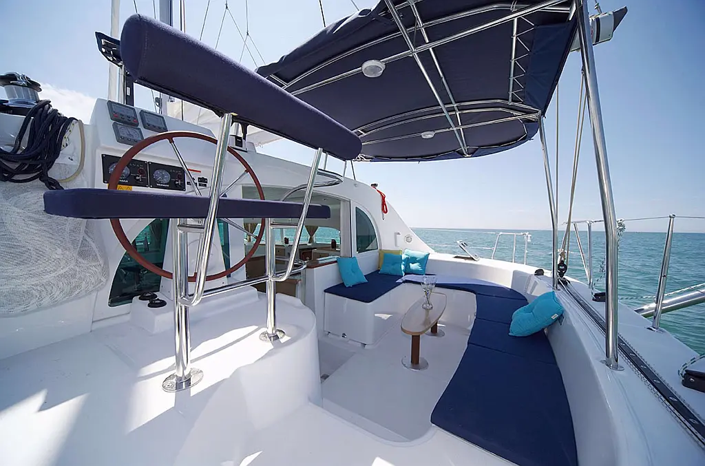 Barbecue grill in cockpit, Bimini, Cockpit cushions, Refrigerator, Solar Panels, Water maker