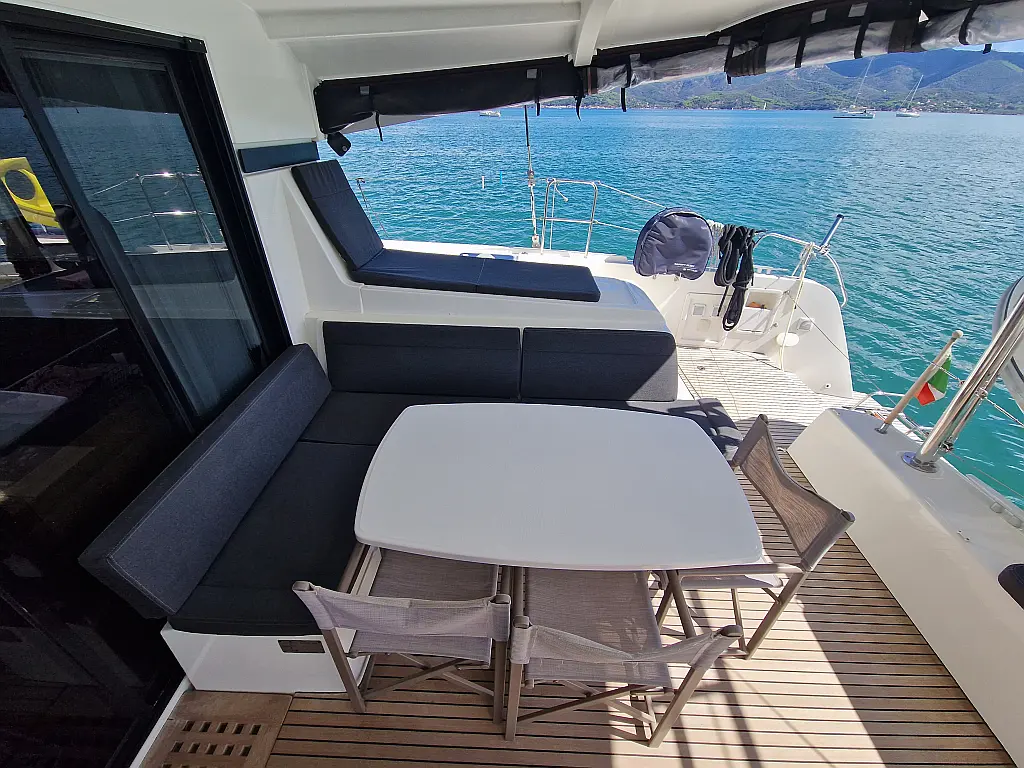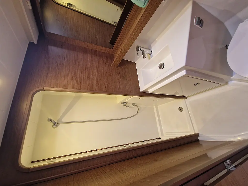 Bimini, Cockpit cushions, Dinghy, Electric winches, Electric toilet, Coffee maker, Inverter, Solar Panels, Teak Cockpit, Water maker