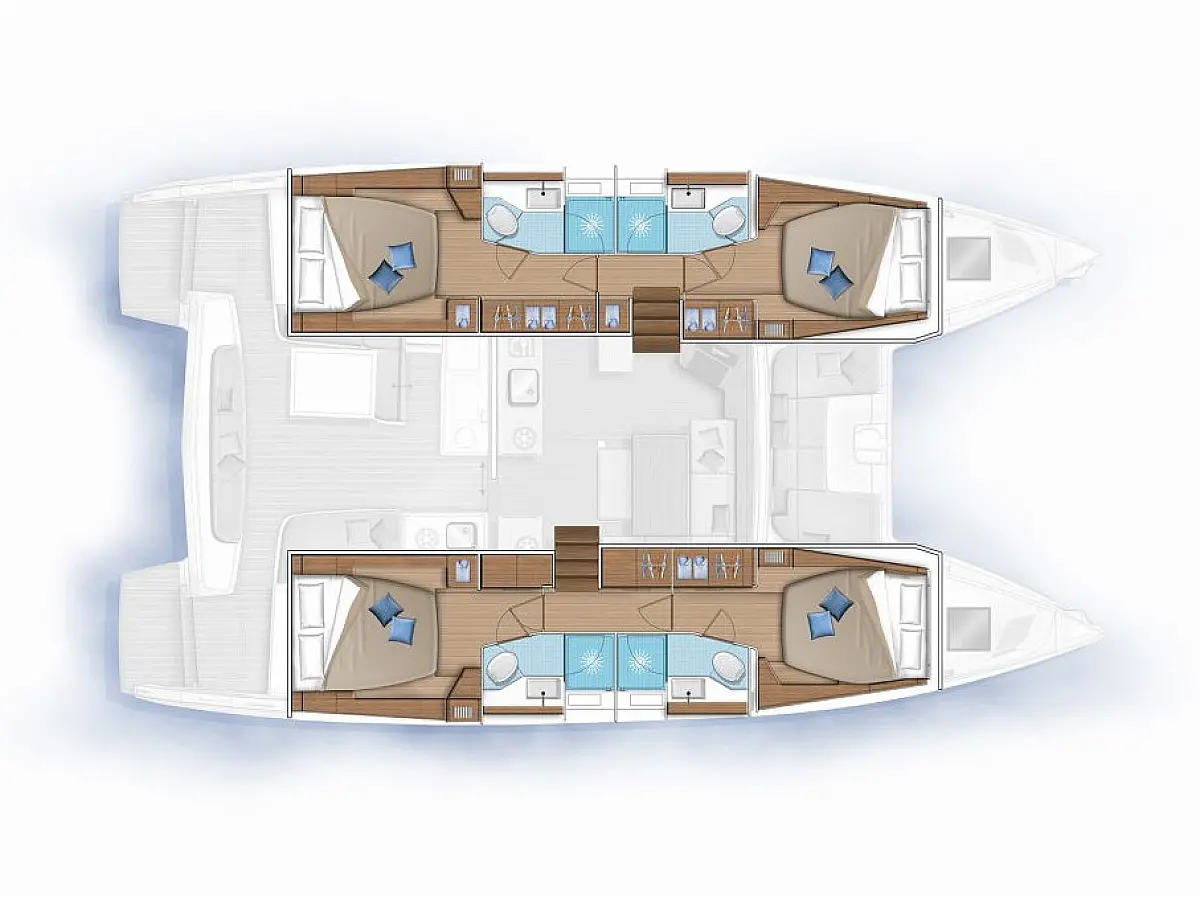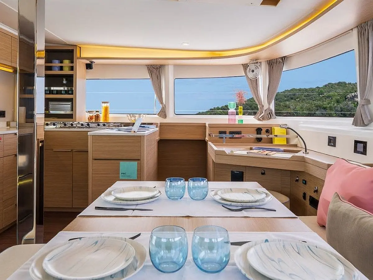 Barbecue grill in cockpit, Refrigerator, Coffee maker, Ice maker, Dishwasher, Bimini, Sprayhood, Cockpit cushions, Teak deck, Water maker, Air condition, Heating, Washer/Dryer, Electric toilet, Wi-Fi & Internet, Dinghy, Outboard engine, Electric winches