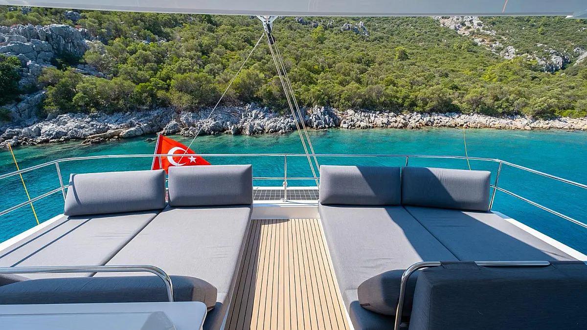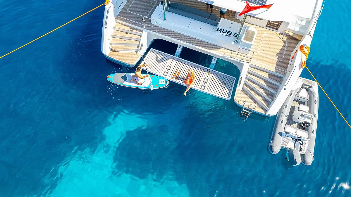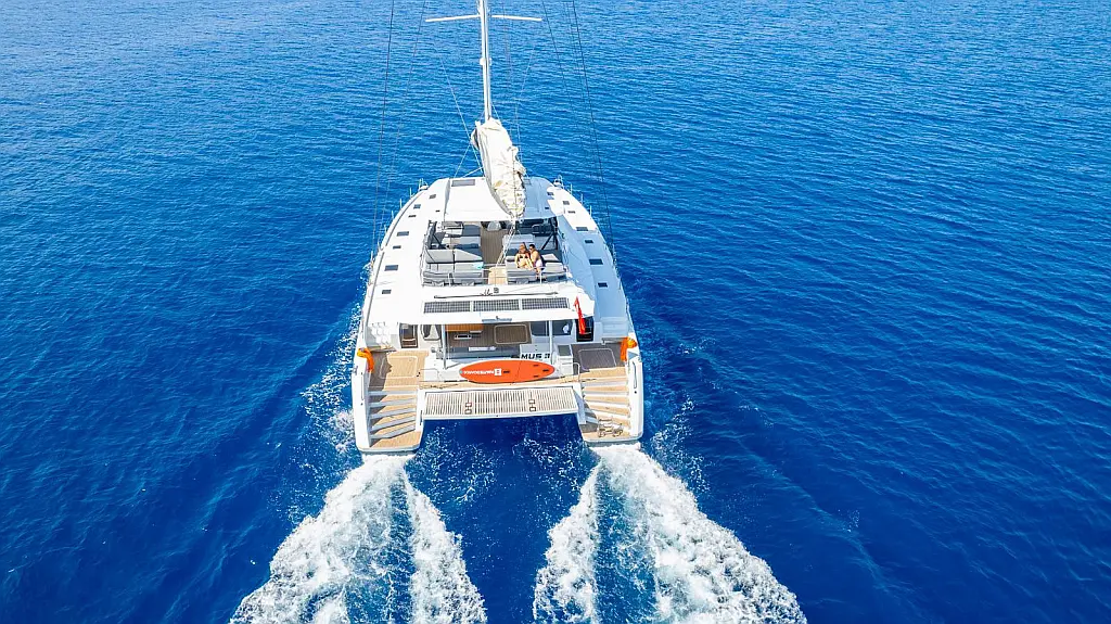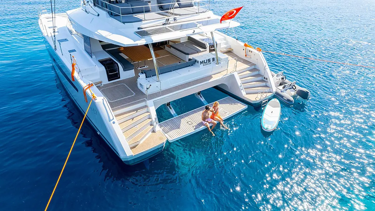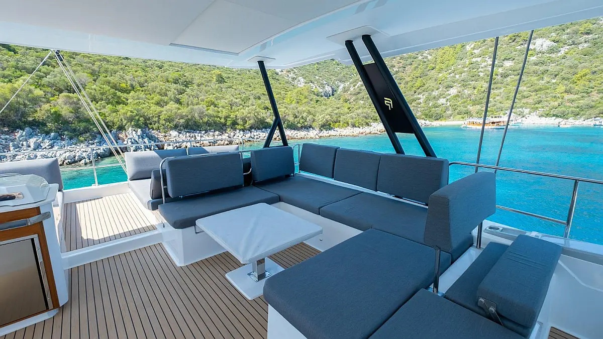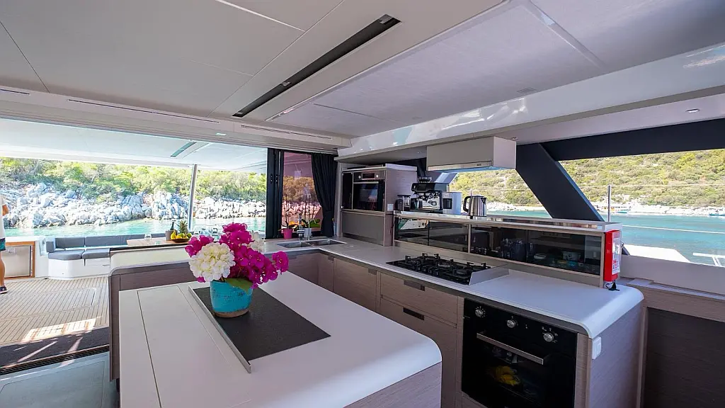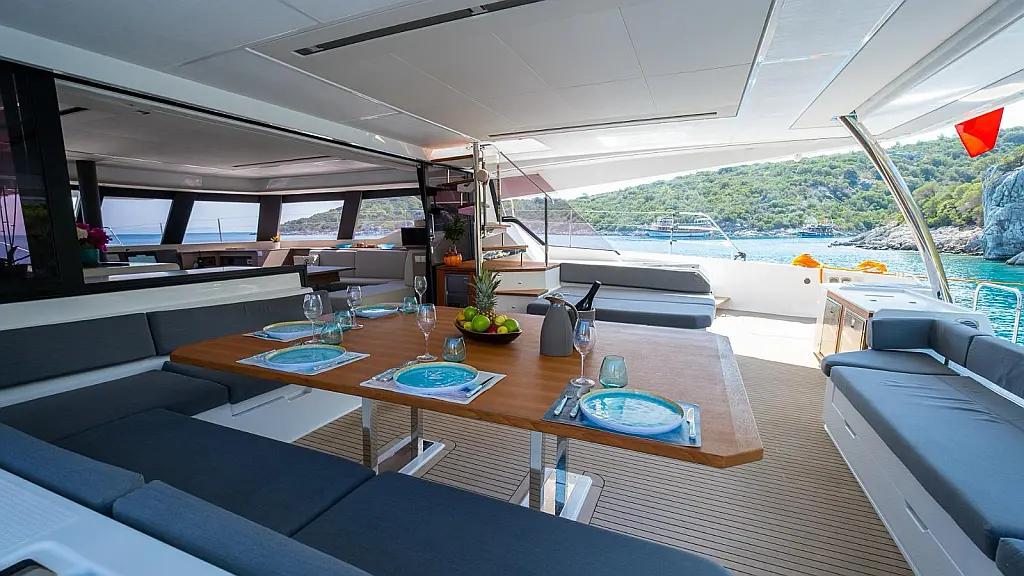 Electric winches, Inverter, Flybridge, Teak Cockpit, Refrigerator, Ice maker, Air condition, Convertible table, Dishwasher, Washer/Dryer, Solar Panels, Water maker, Tenderlift platform, Dinghy
