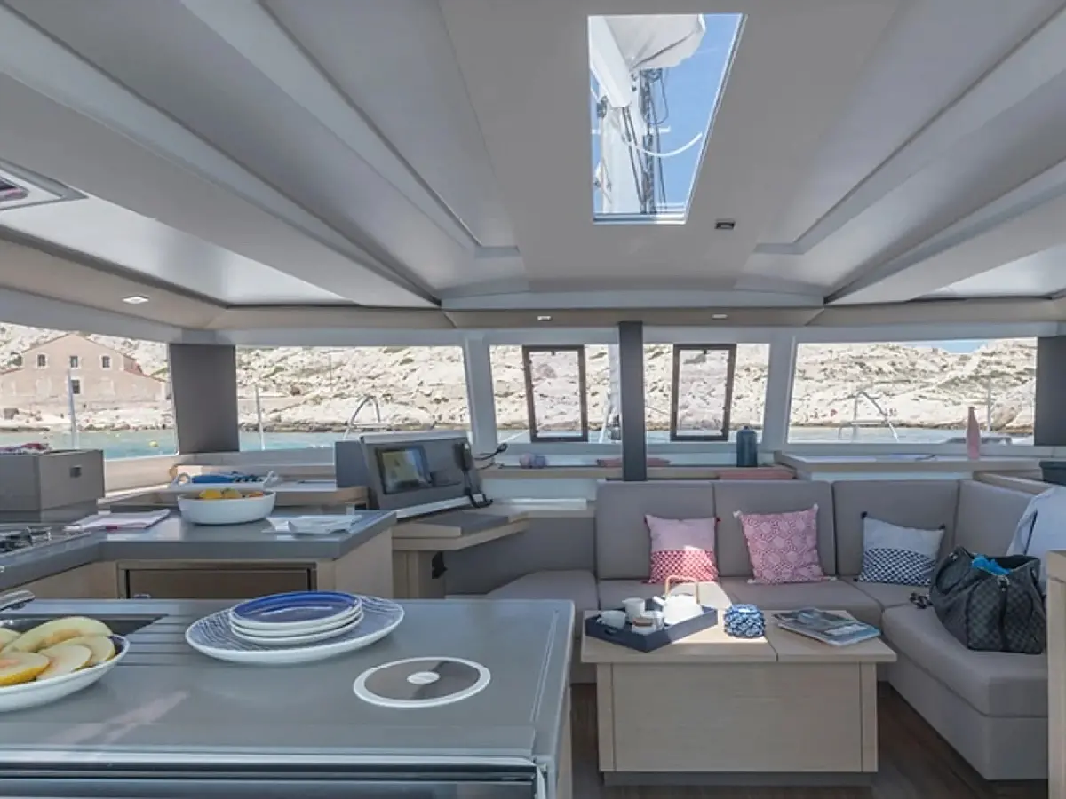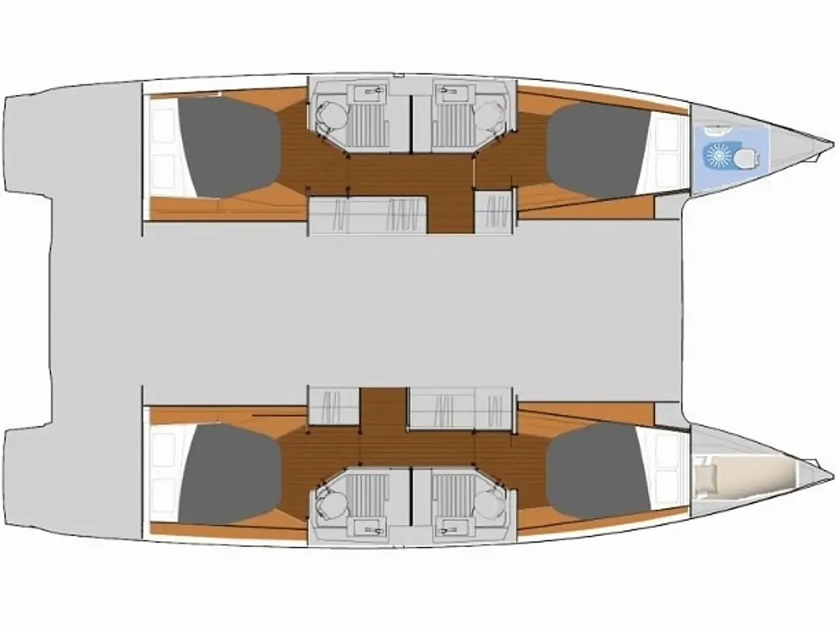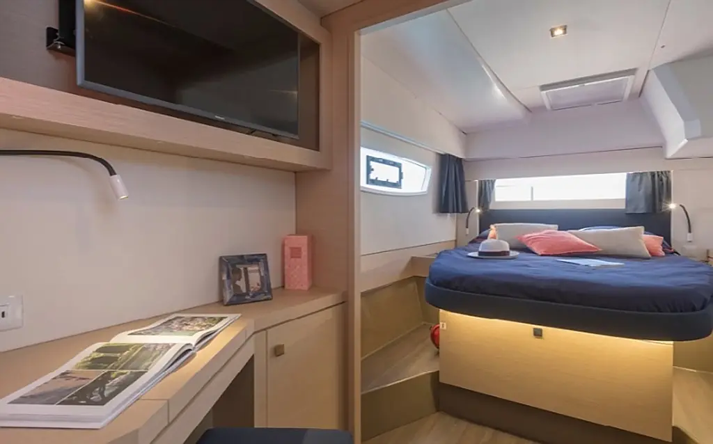 4 doubles cabins + convertible saloon + one forepeak