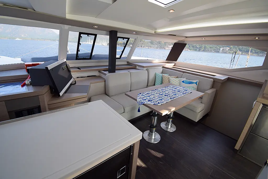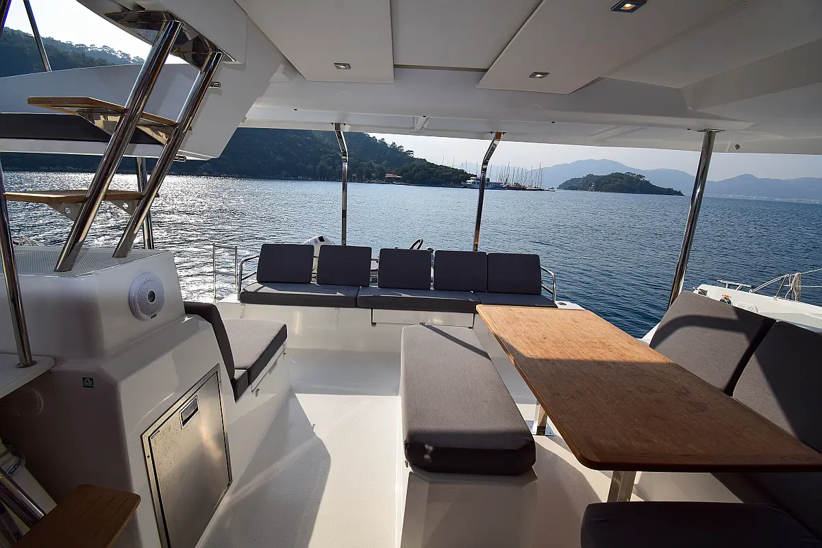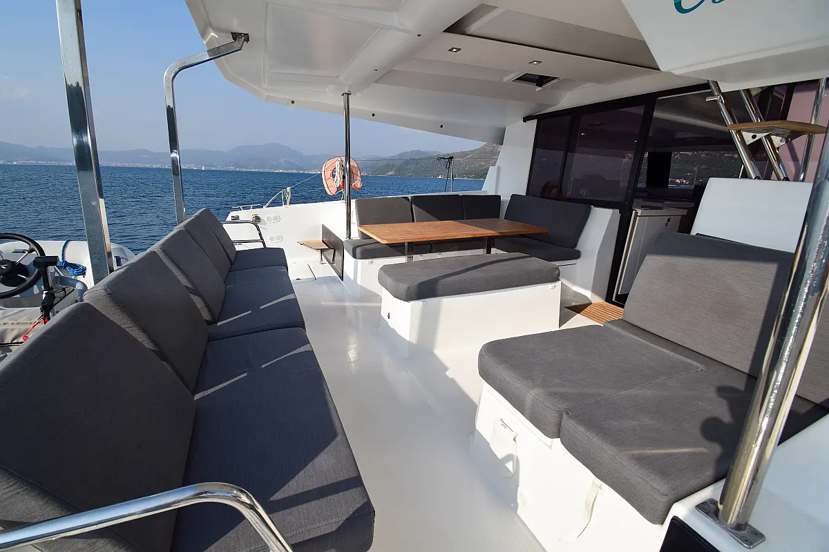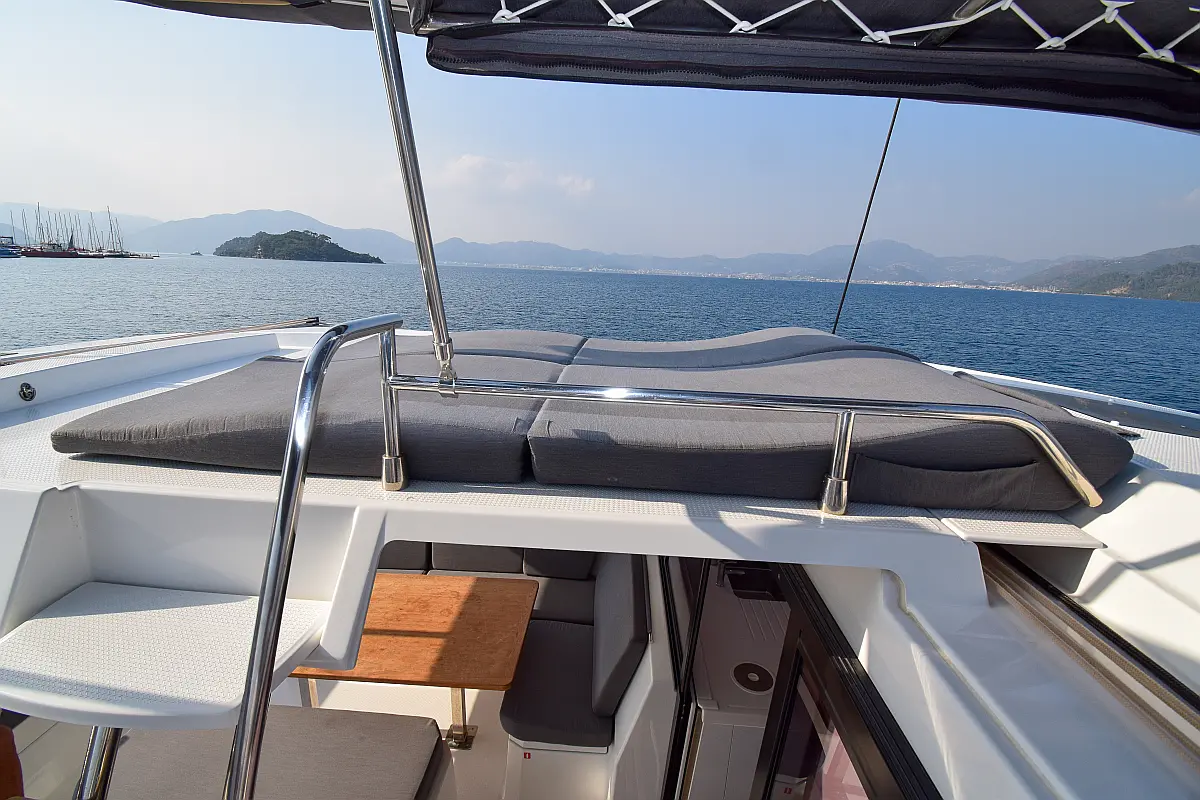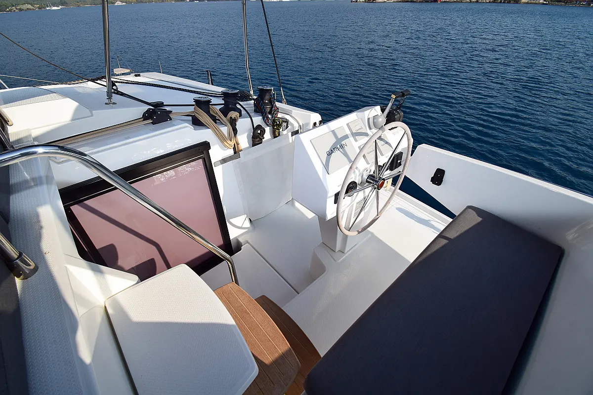 Bimini, Dinghy, Refrigerator, Holding tank, Inverter, Cockpit cushions, Cockpit speakers, Electric winches, Swimming platform
