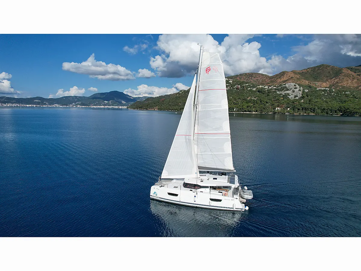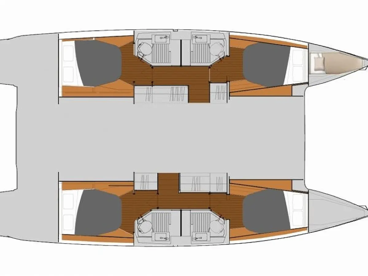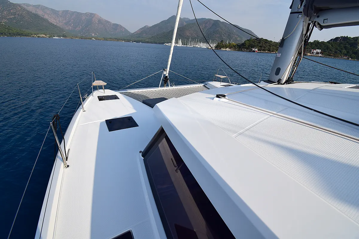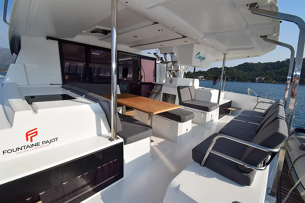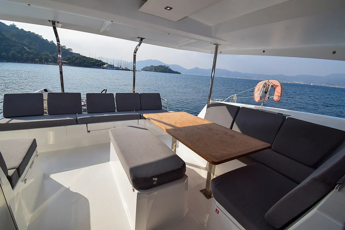 Bimini, Dinghy, Refrigerator, Holding tank, Inverter, Cockpit cushions, Cockpit speakers, Electric winches, Swimming platform