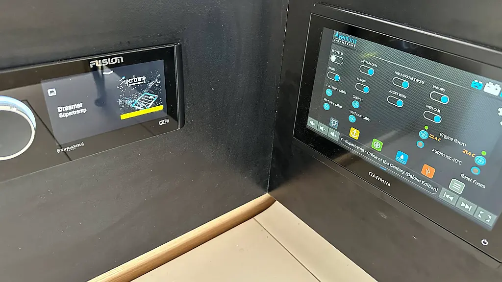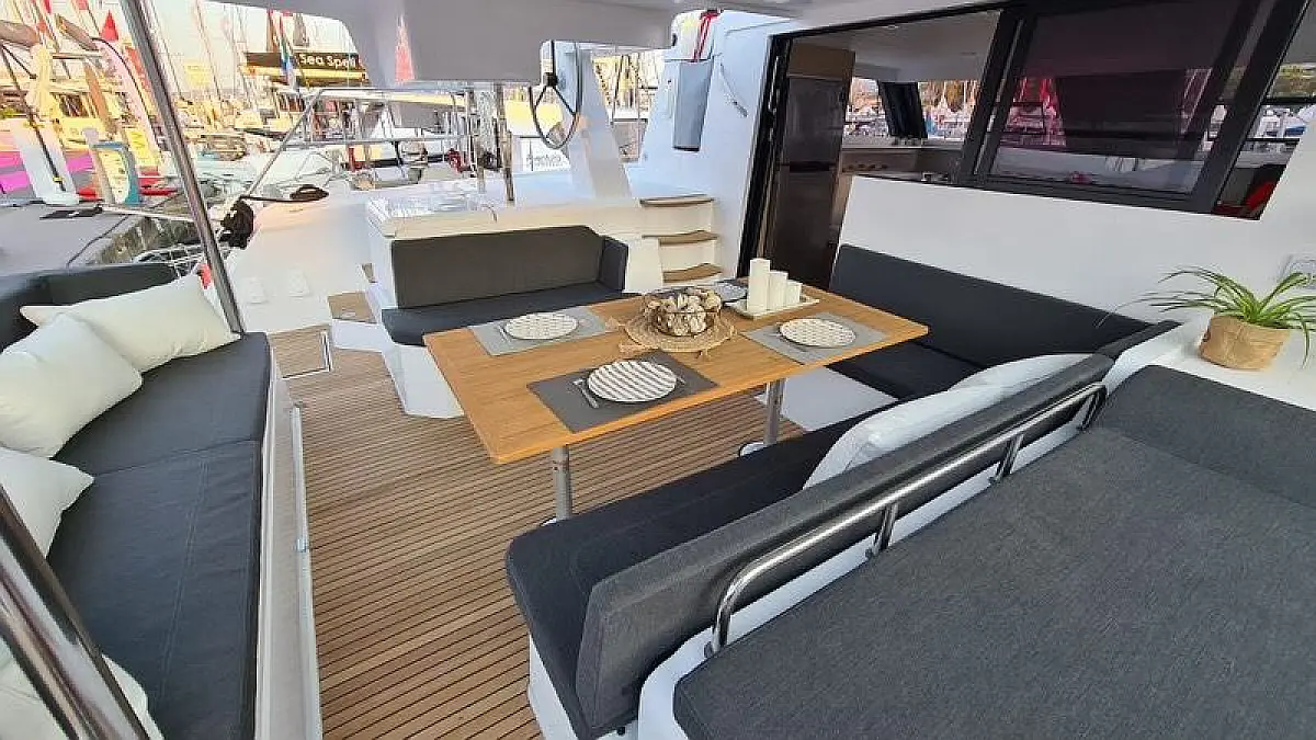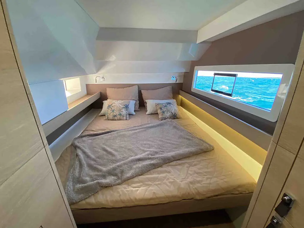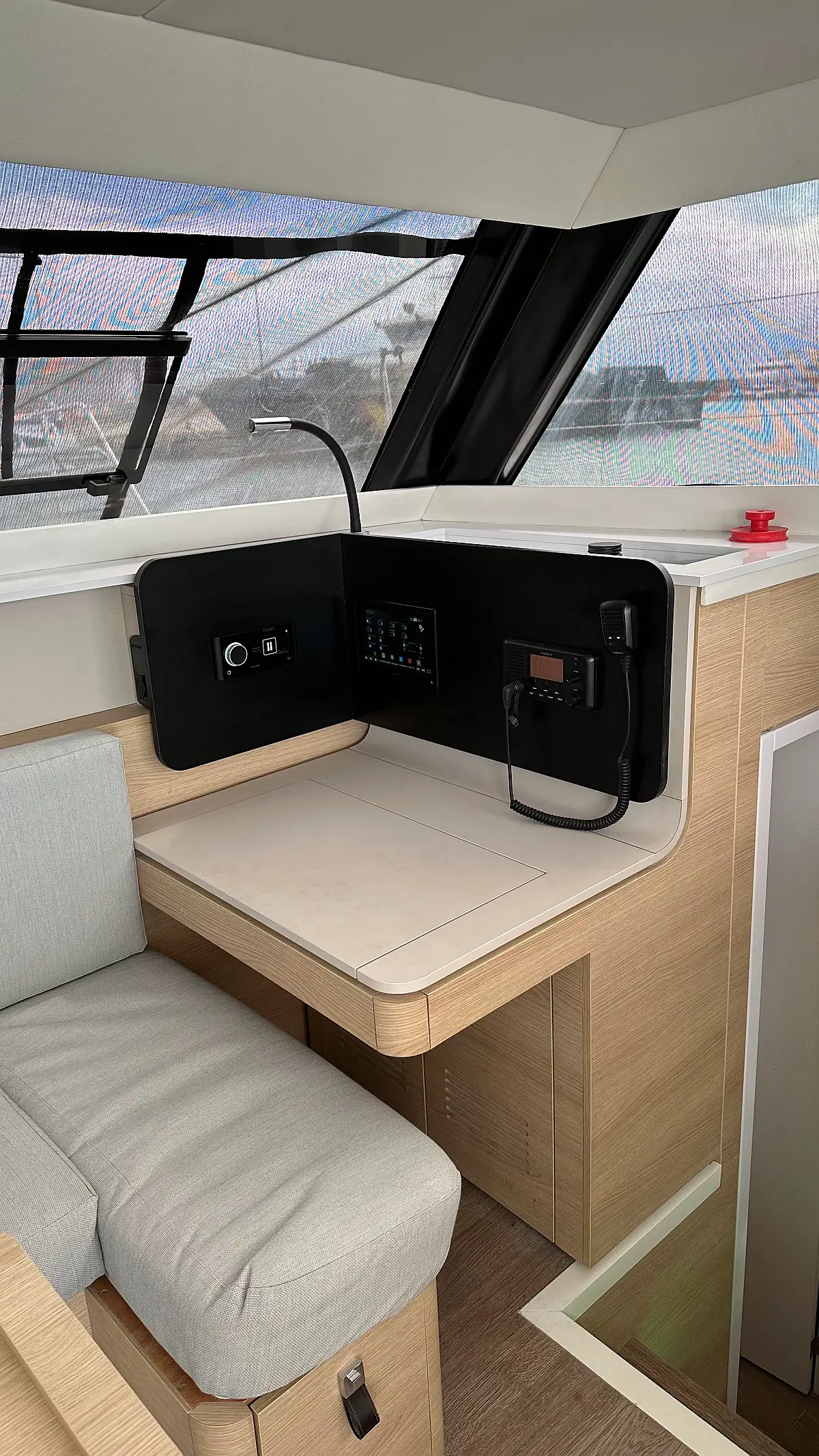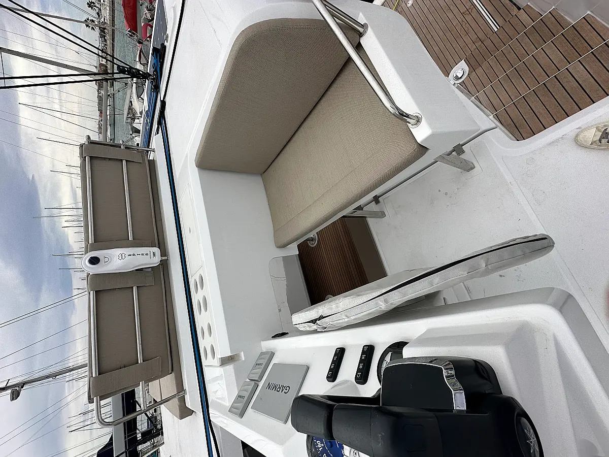 Water maker, Air condition, Flybridge, Outboard engine, Refrigerator, Inverter, Solar Panels, Holding tank, Electric toilet