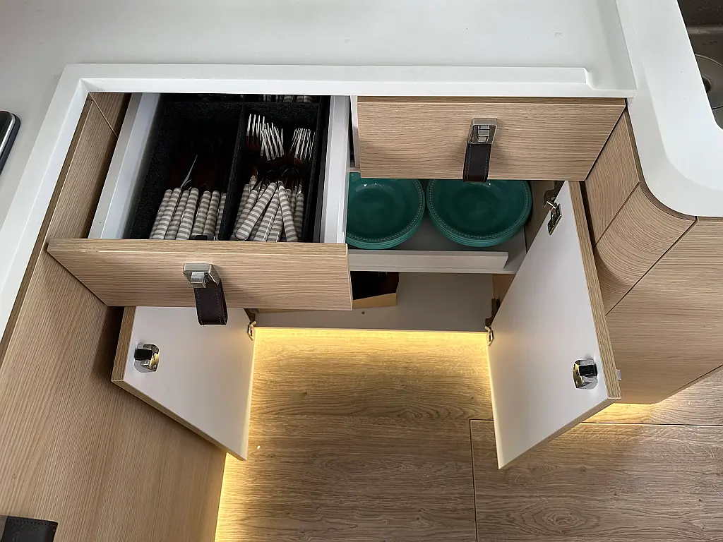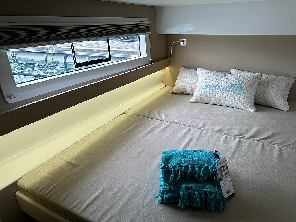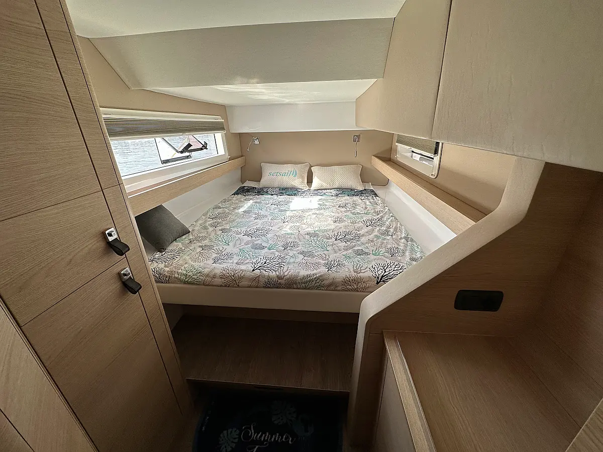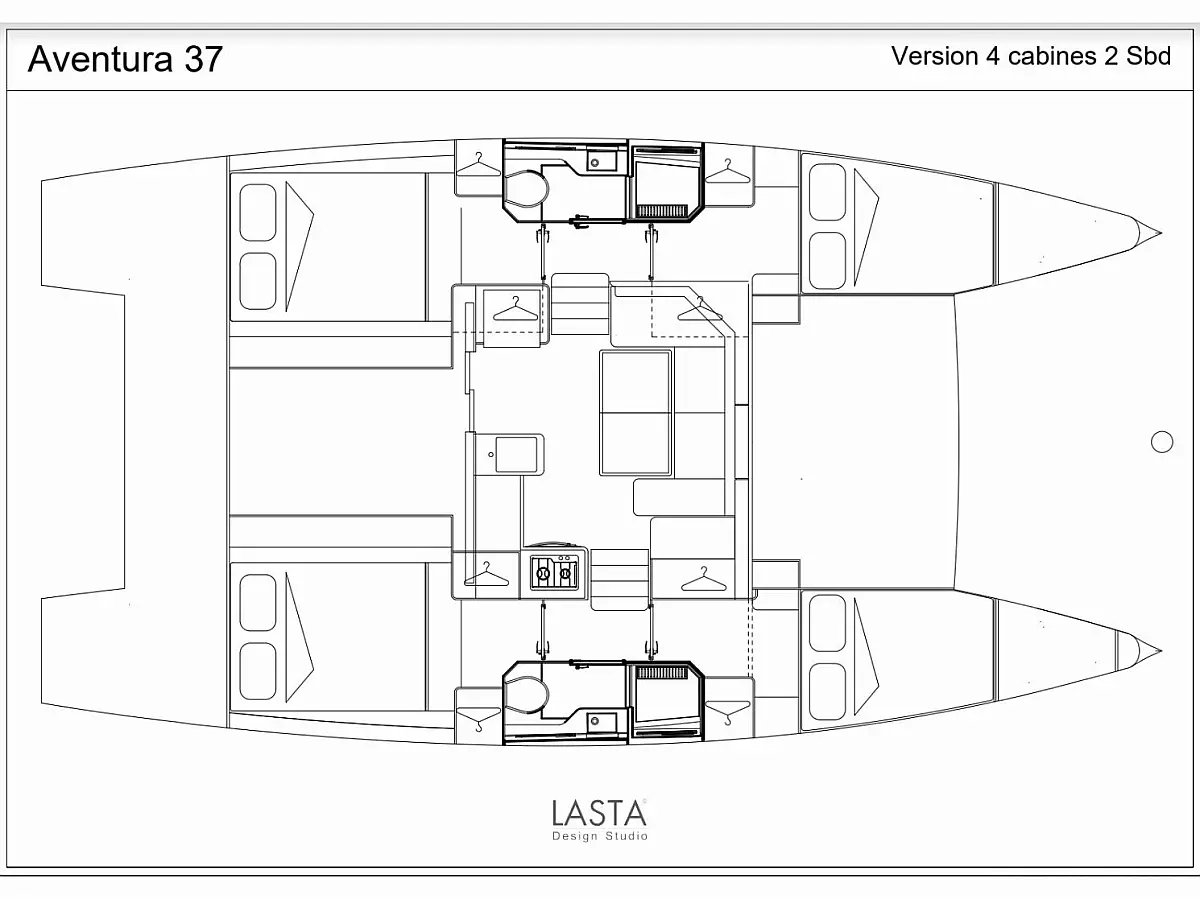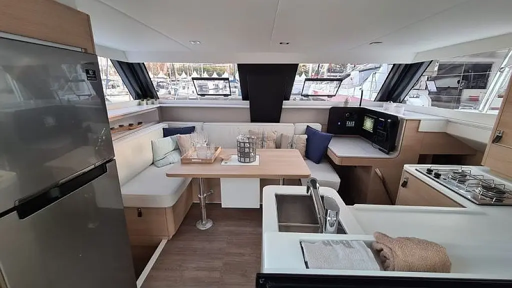 Water maker, Air condition, Flybridge, Outboard engine, Refrigerator, Inverter, Solar Panels, Holding tank, Electric toilet