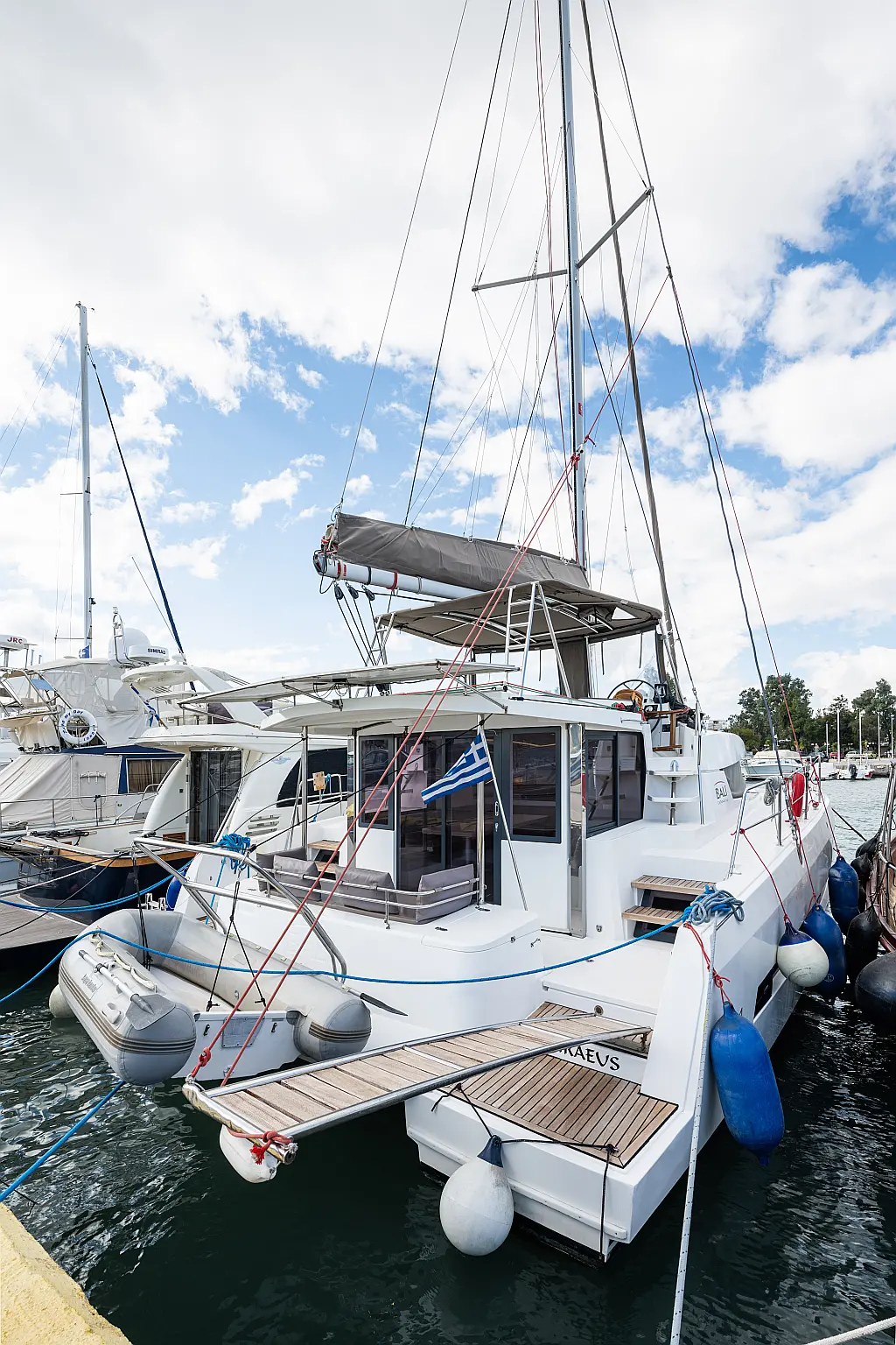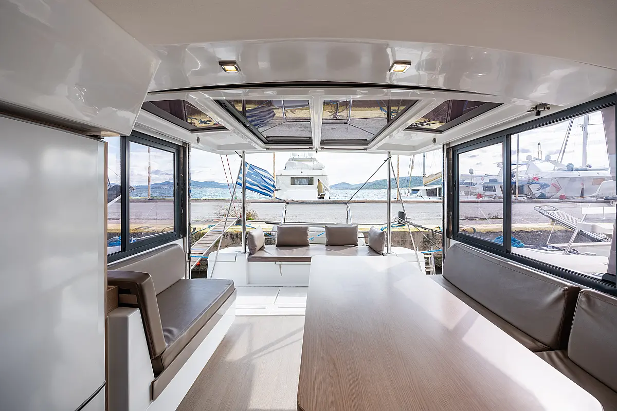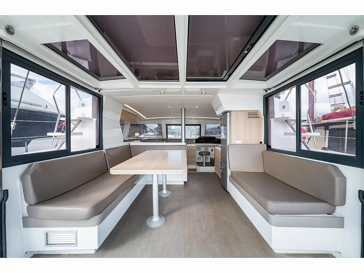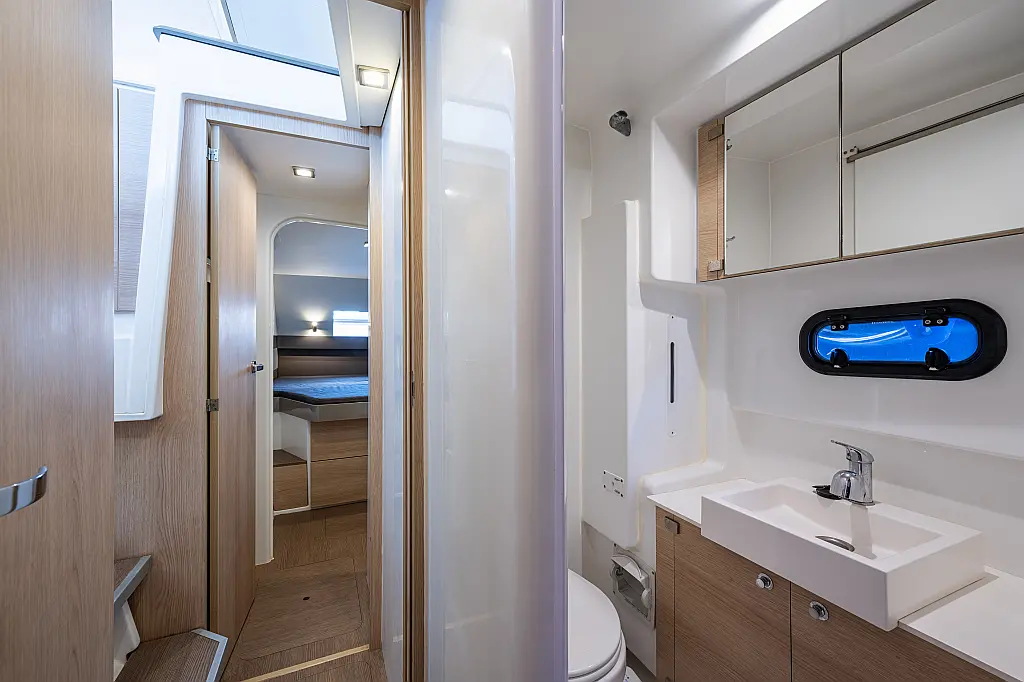Holding tank, Air condition, Water maker, Generator, Cockpit cushions, Sprayhood, Swimming platform, Electric winches, Solar Panels