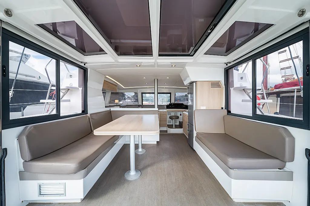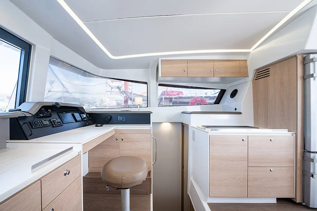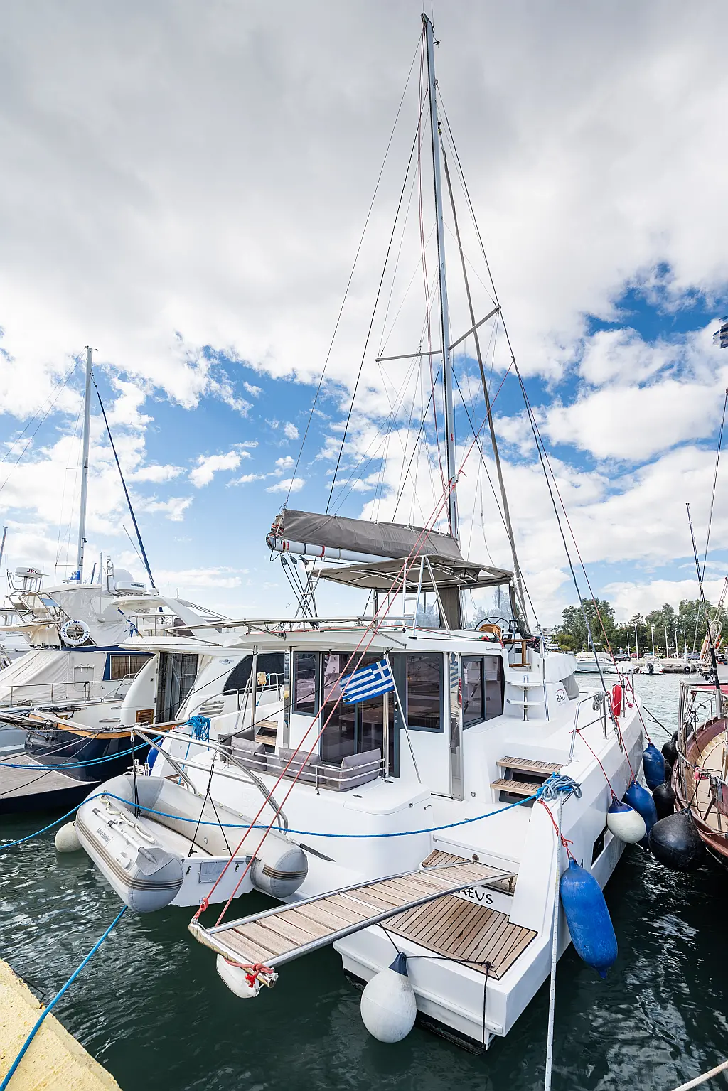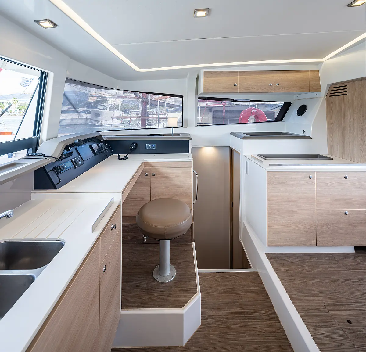 Holding tank, Air condition, Water maker, Generator, Cockpit cushions, Sprayhood, Swimming platform, Electric winches, Solar Panels