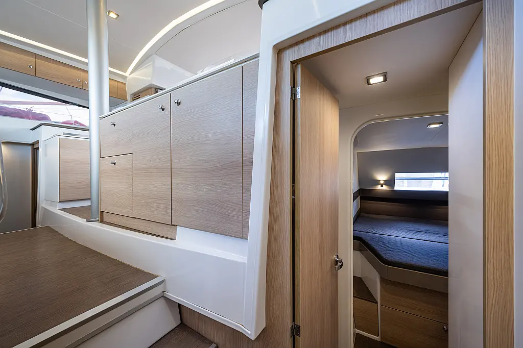 6 (4 double-bed cabins +2 bow cabins)