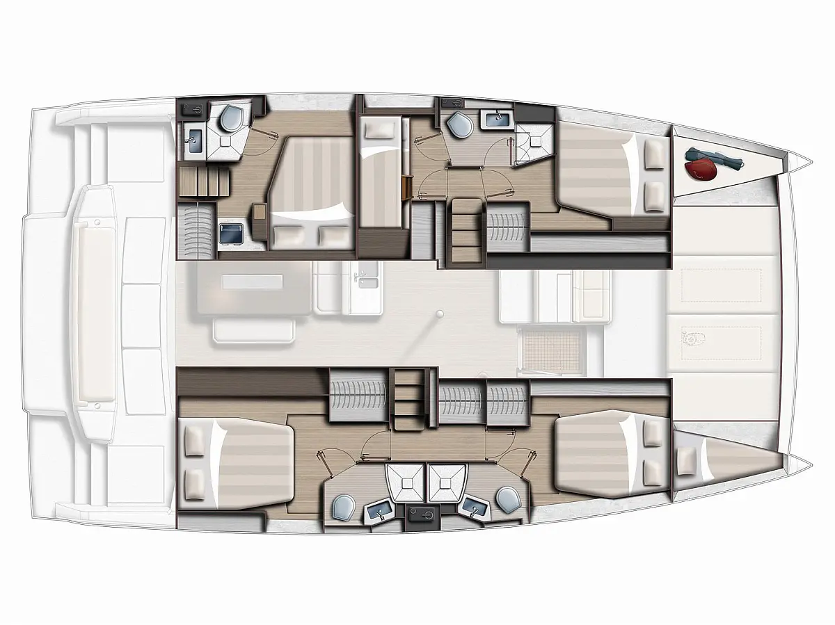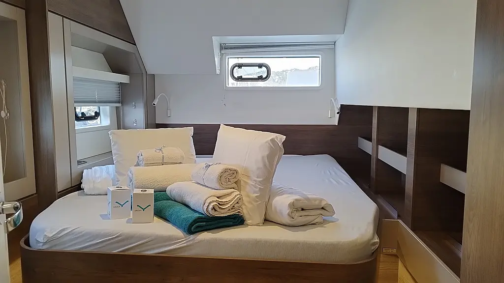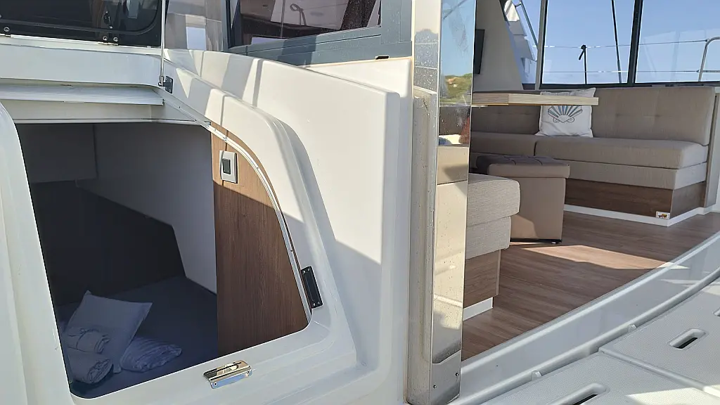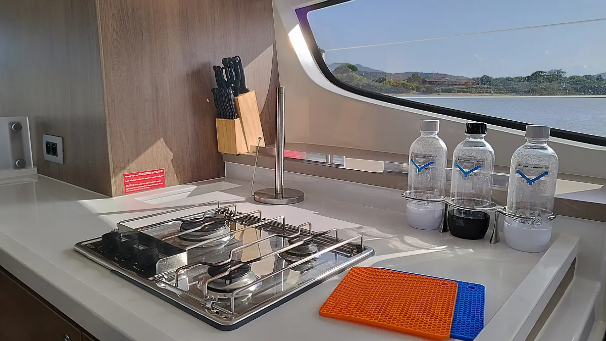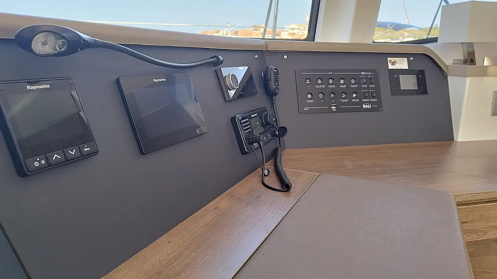 Cockpit cushions, Barbecue grill in cockpit, Electric toilet, Refrigerator, Electric winches, Inverter, Solar Panels