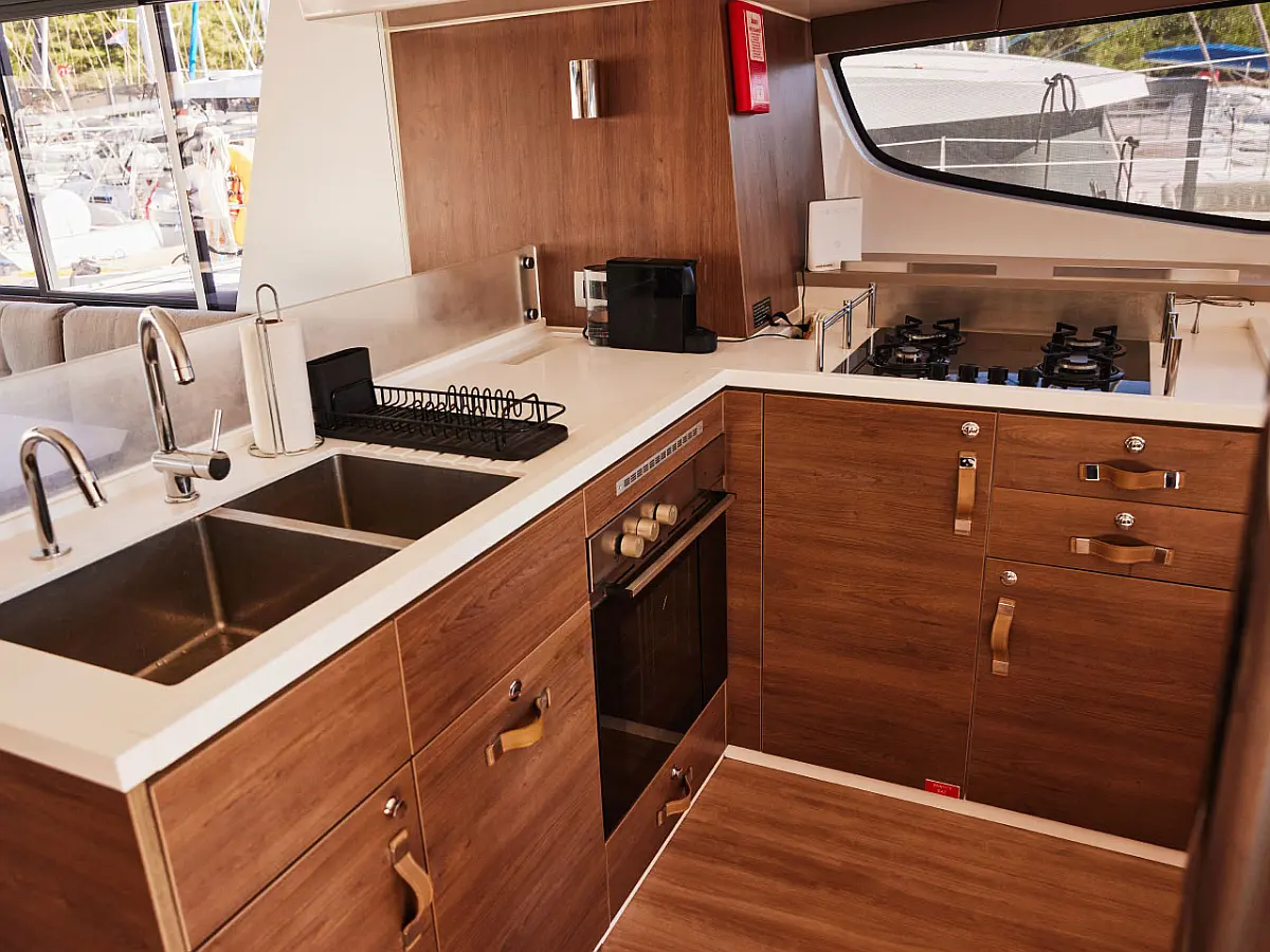 Refrigerator, Cockpit cushions, Bimini, Dinghy, Generator, Air condition, Inverter, Water maker