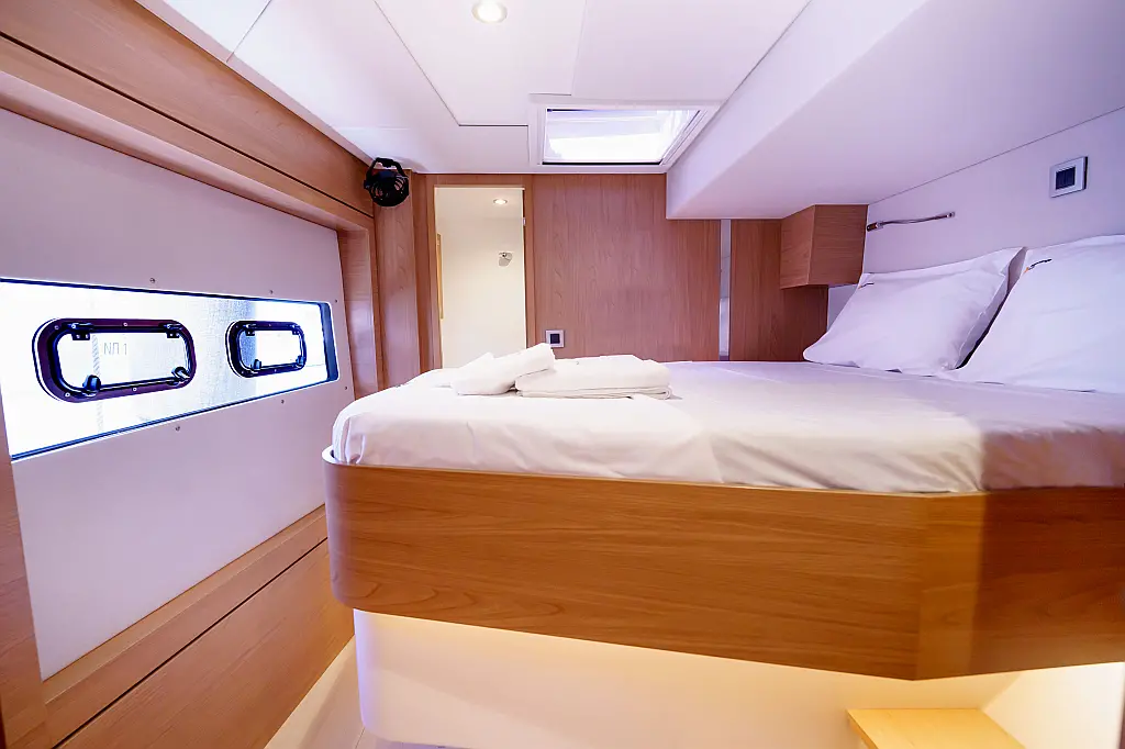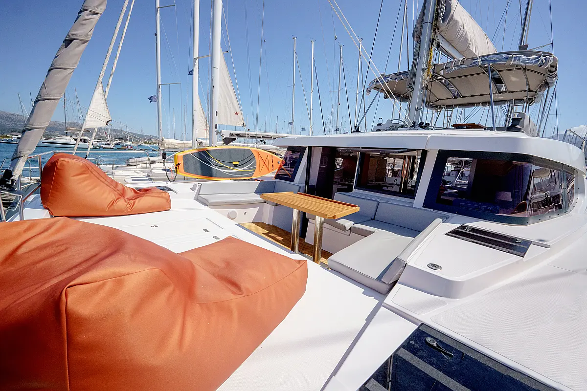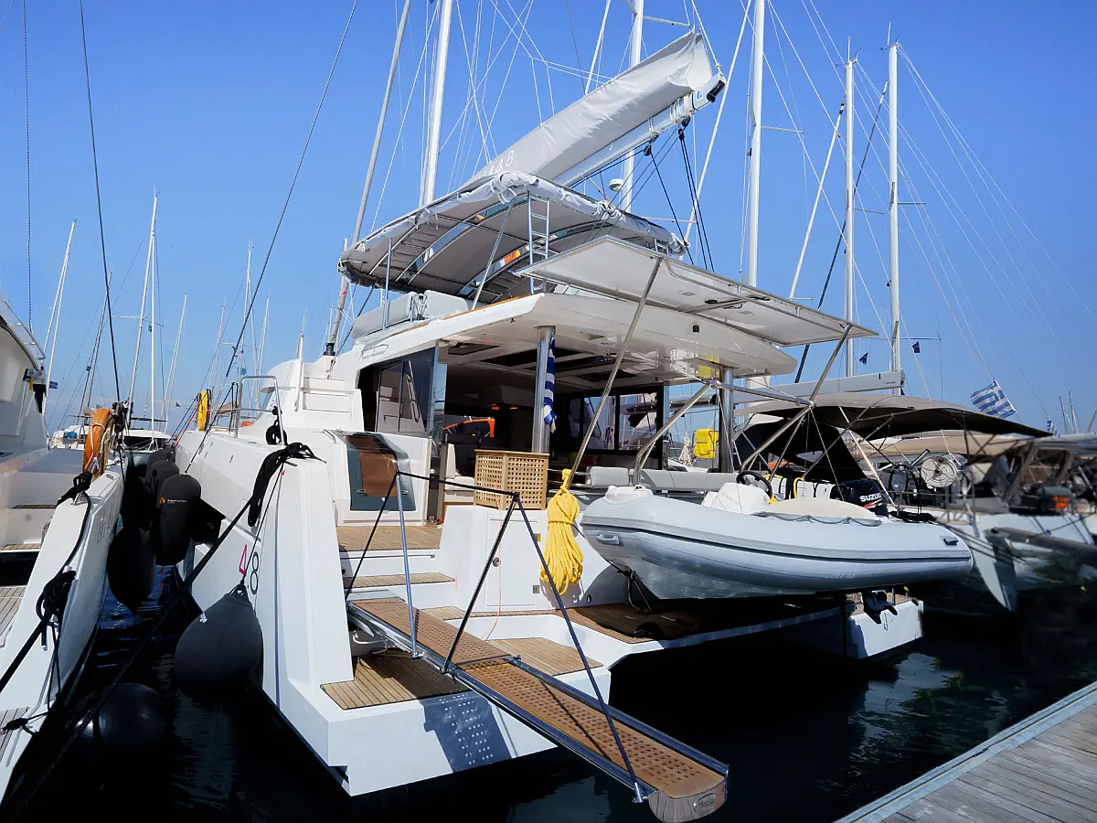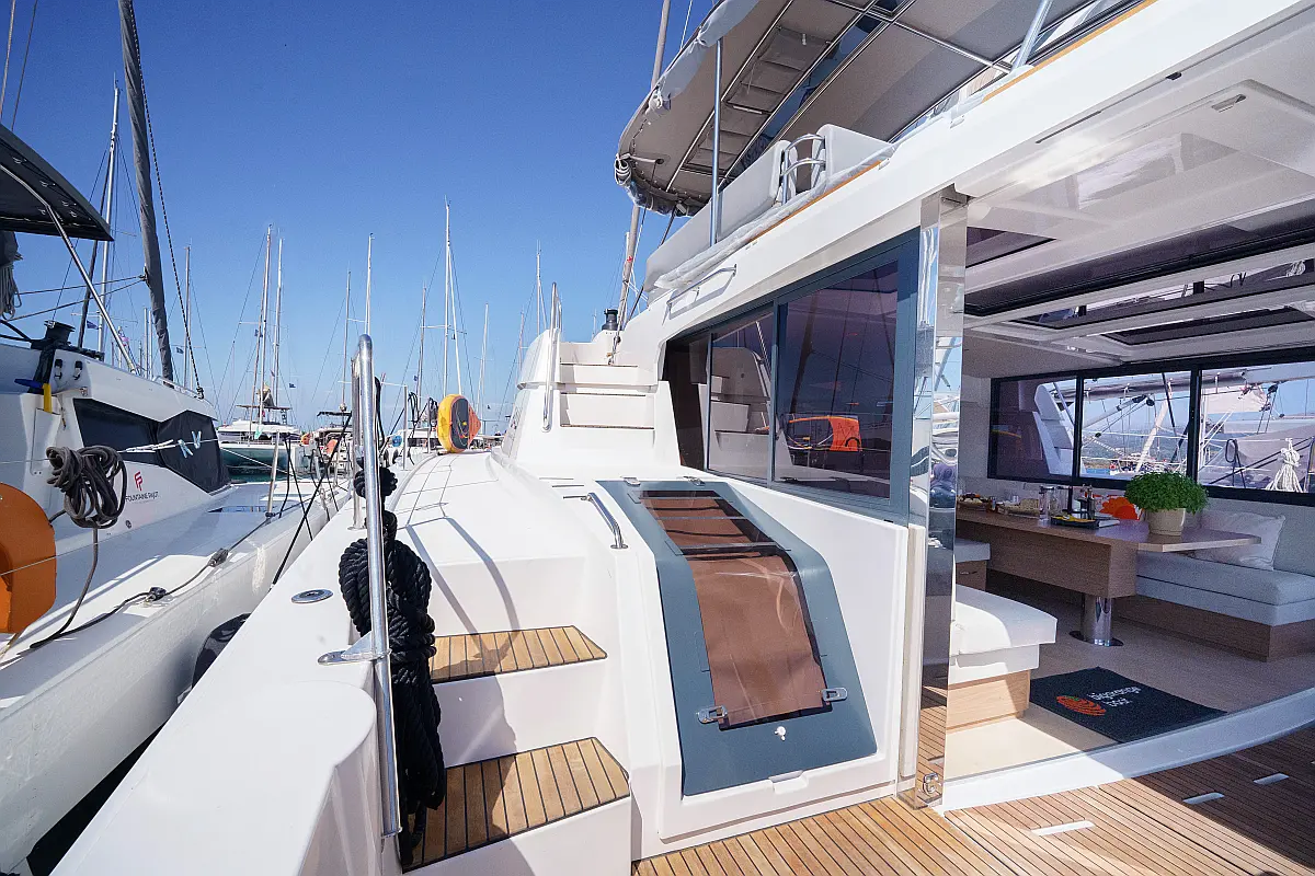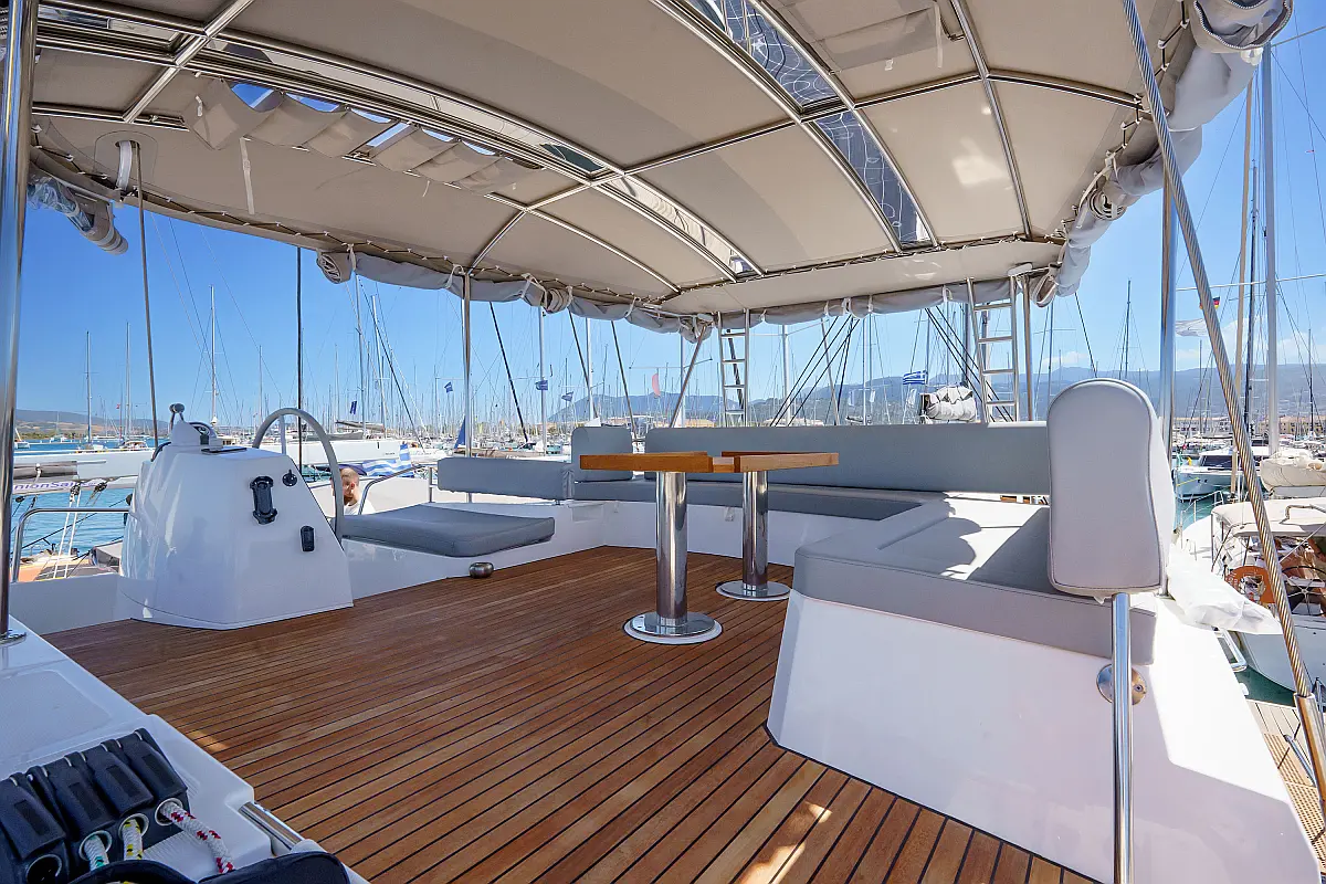 Teak deck, Wi-Fi & Internet, Electric toilet, Coffee maker, Ice maker, Air condition, Water maker, Generator, Cockpit cushions, Dinghy, Sprayhood, Swimming platform, Teak Cockpit, Bimini, Electric winches, Solar Panels