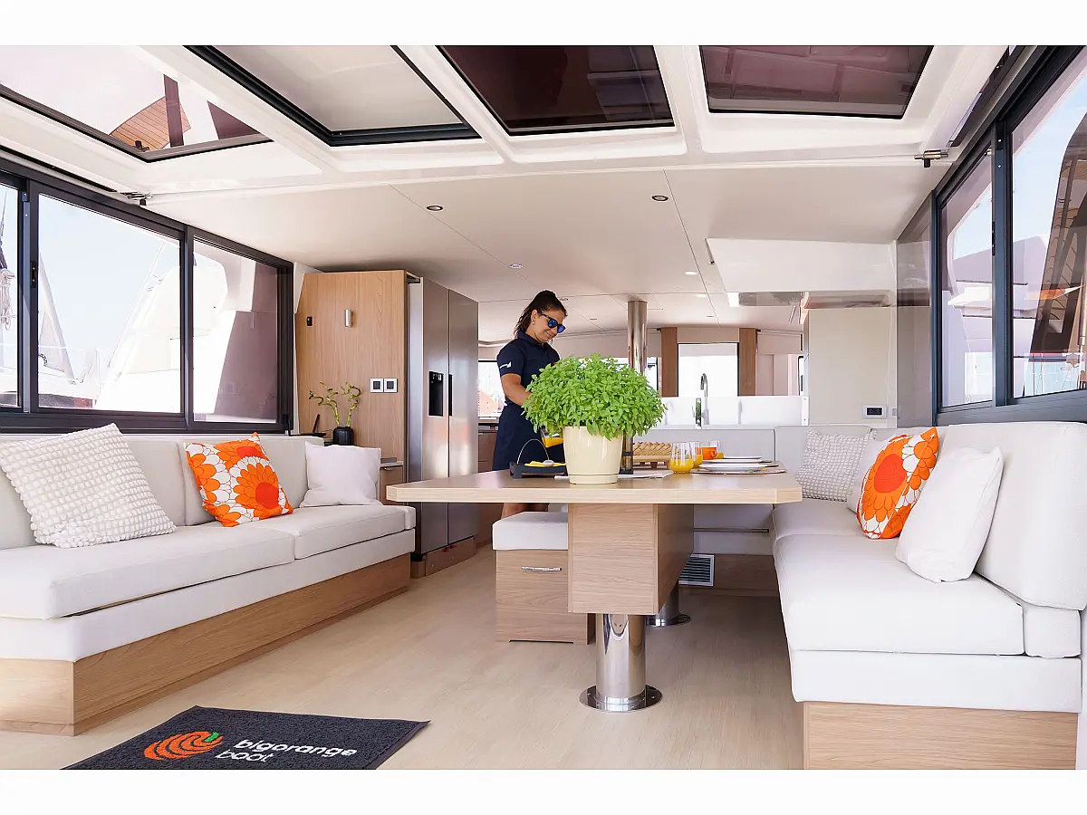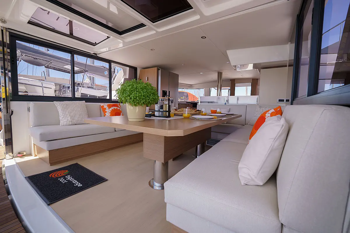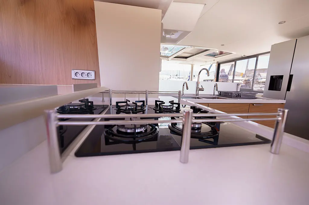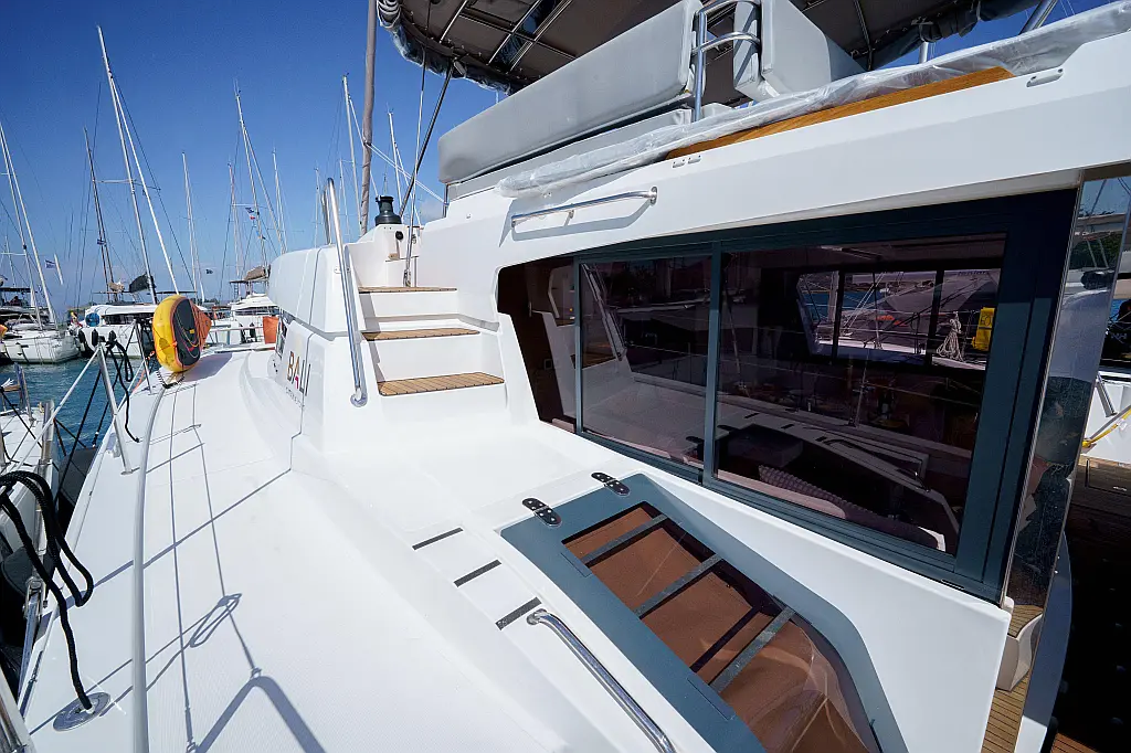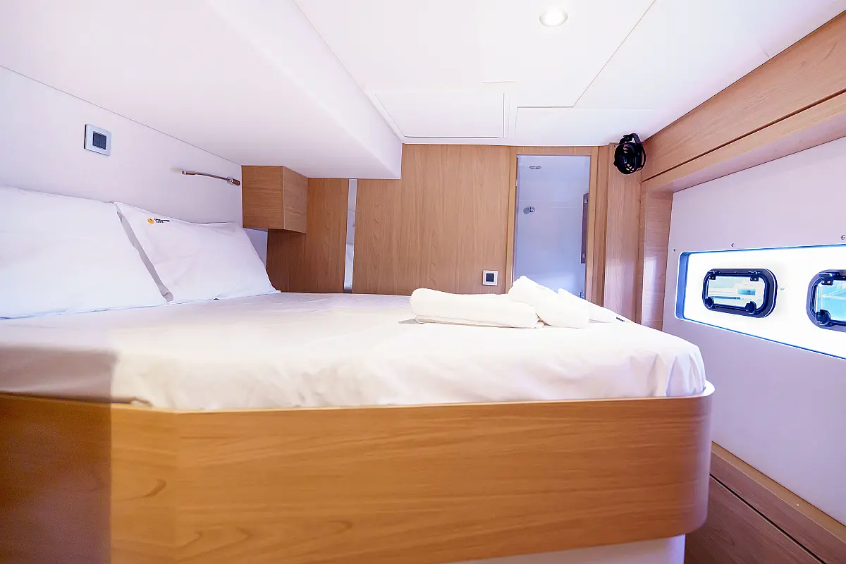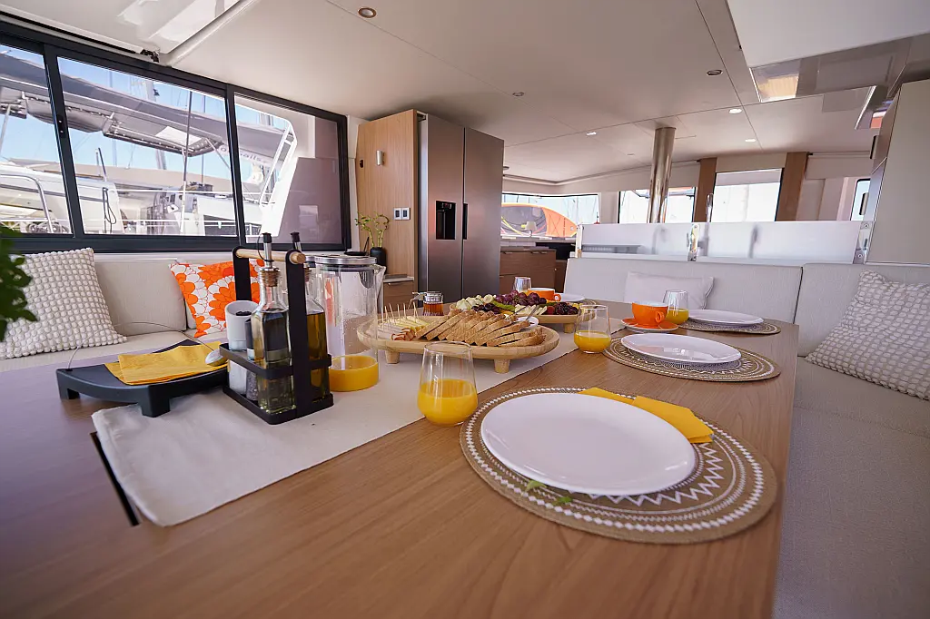 Teak deck, Wi-Fi & Internet, Electric toilet, Coffee maker, Ice maker, Air condition, Water maker, Generator, Cockpit cushions, Dinghy, Sprayhood, Swimming platform, Teak Cockpit, Bimini, Electric winches, Solar Panels