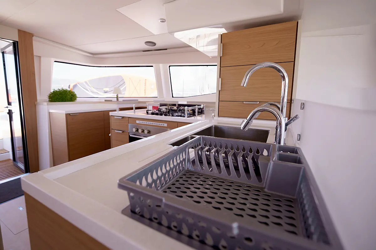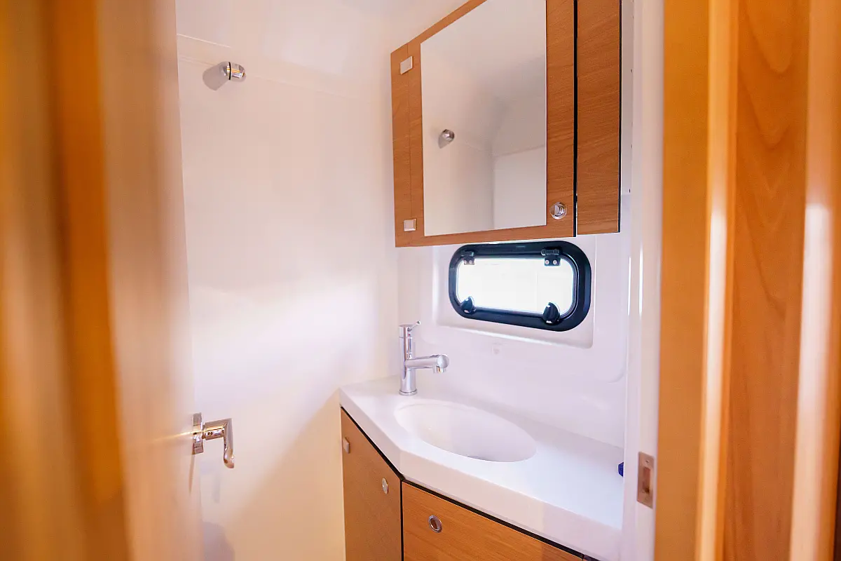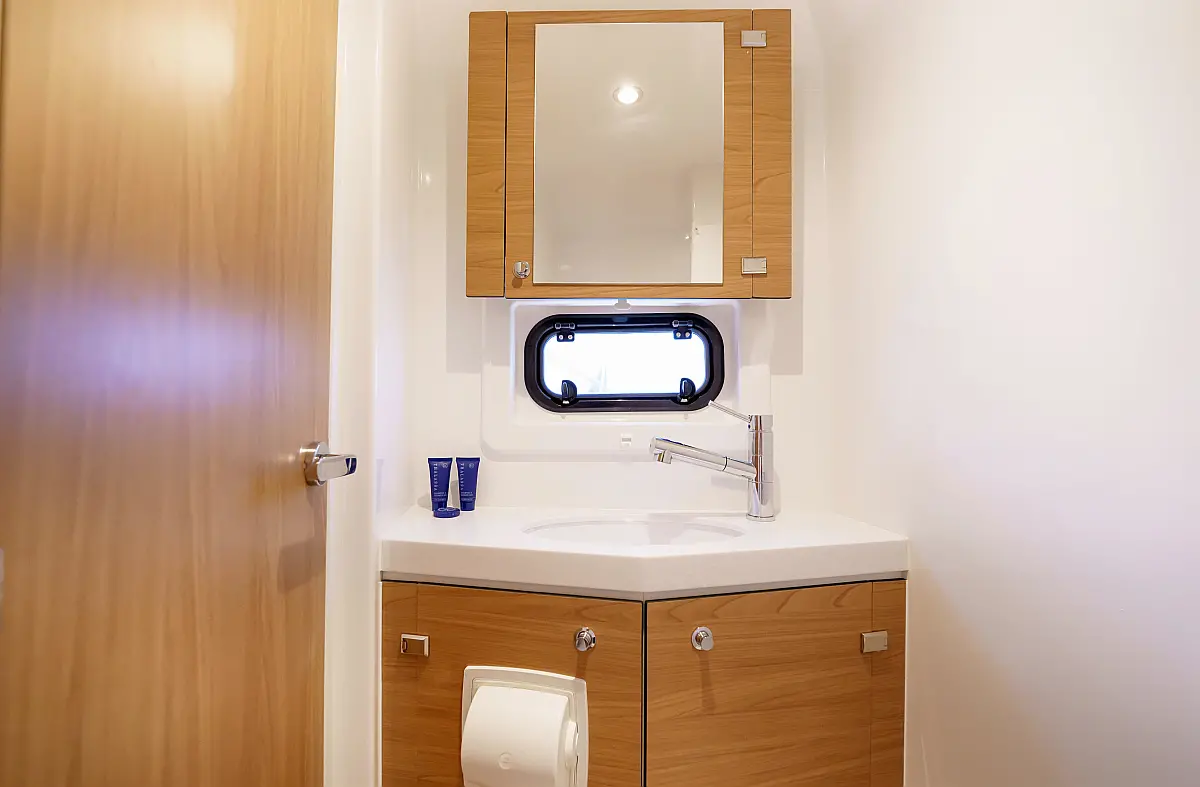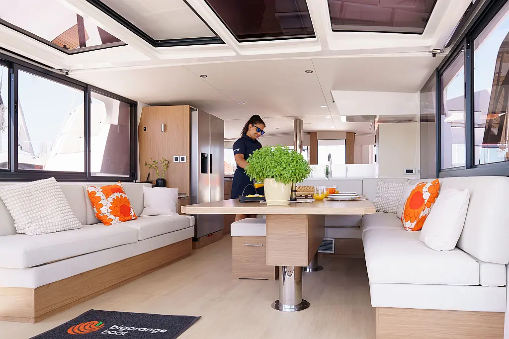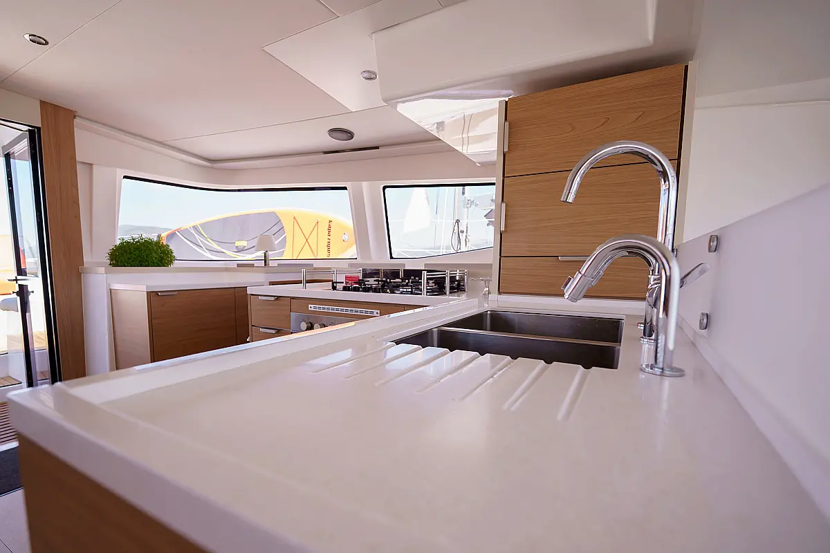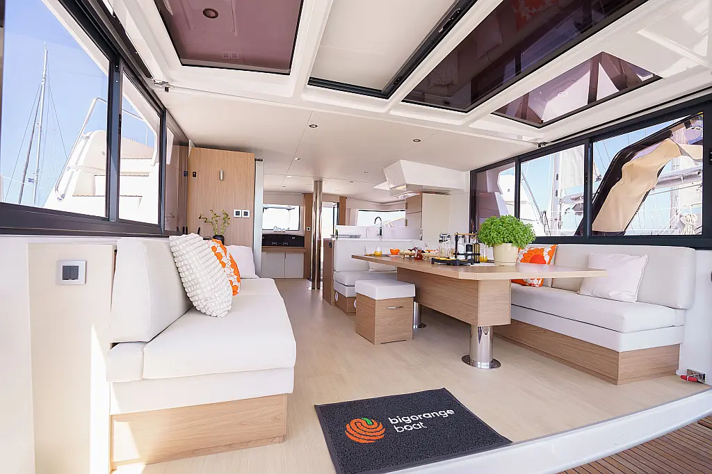 Teak deck, Wi-Fi & Internet, Electric toilet, Coffee maker, Ice maker, Air condition, Water maker, Generator, Cockpit cushions, Dinghy, Sprayhood, Swimming platform, Teak Cockpit, Bimini, Electric winches, Solar Panels
