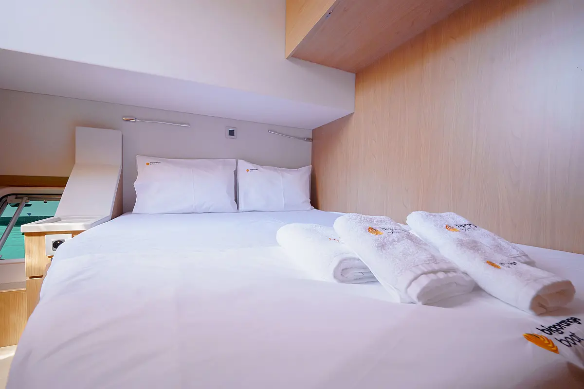 6 (4 double-bed cabins +2 cabins with bunk beds)