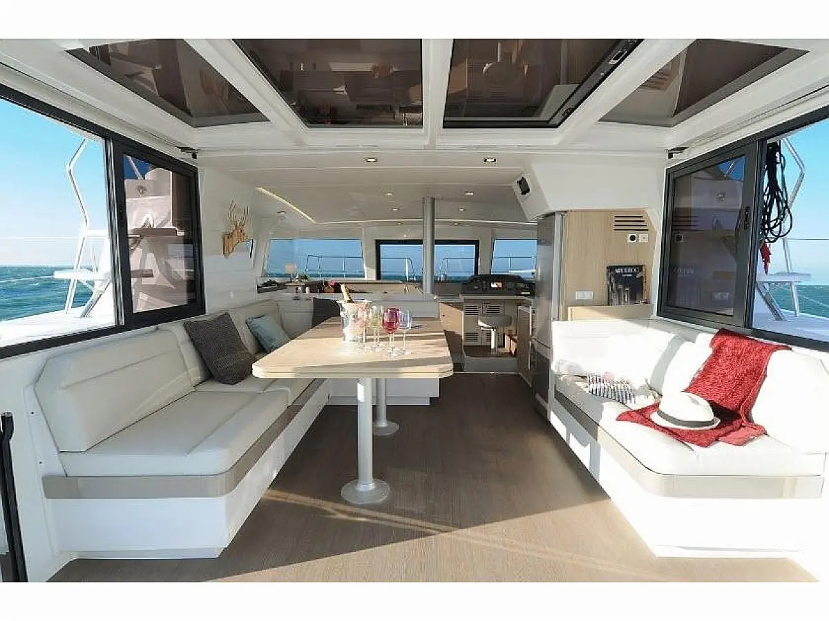 Cockpit cushions, Dinghy, Solar Panels, Heating, Electric toilet, Bimini