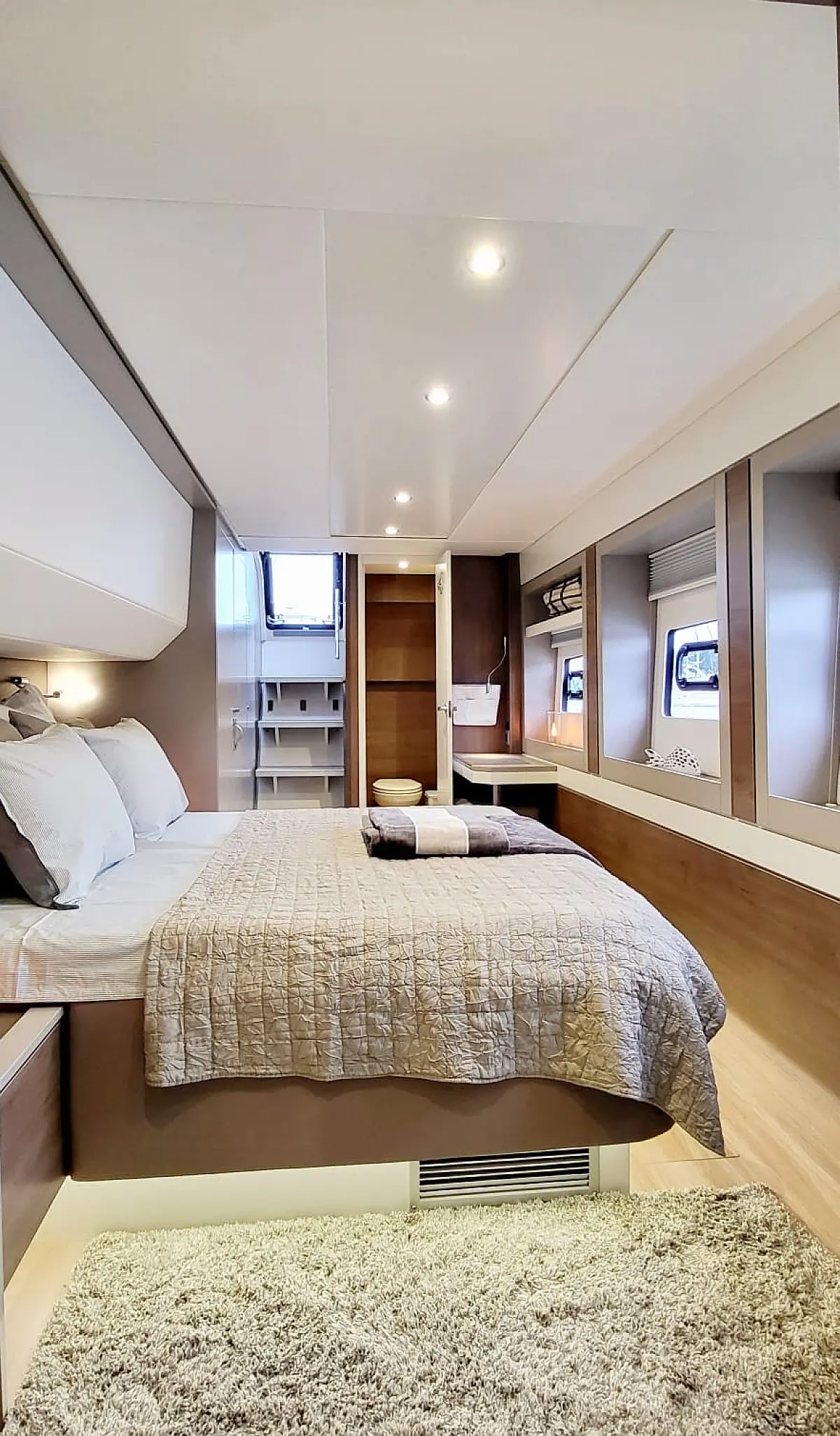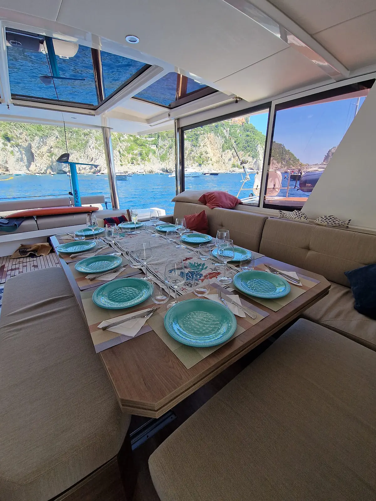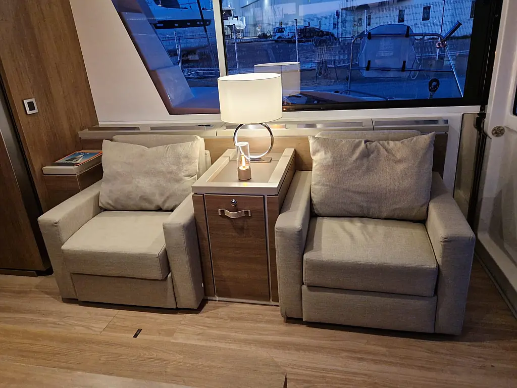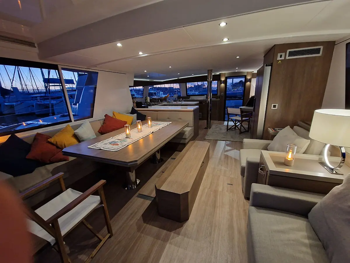 Refrigerator, Dinghy, Generator, Air condition, Water maker, Coffee maker, Teak deck