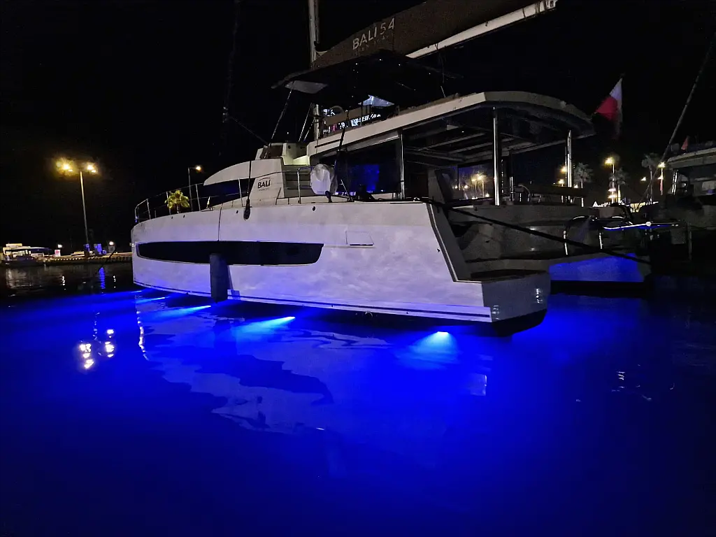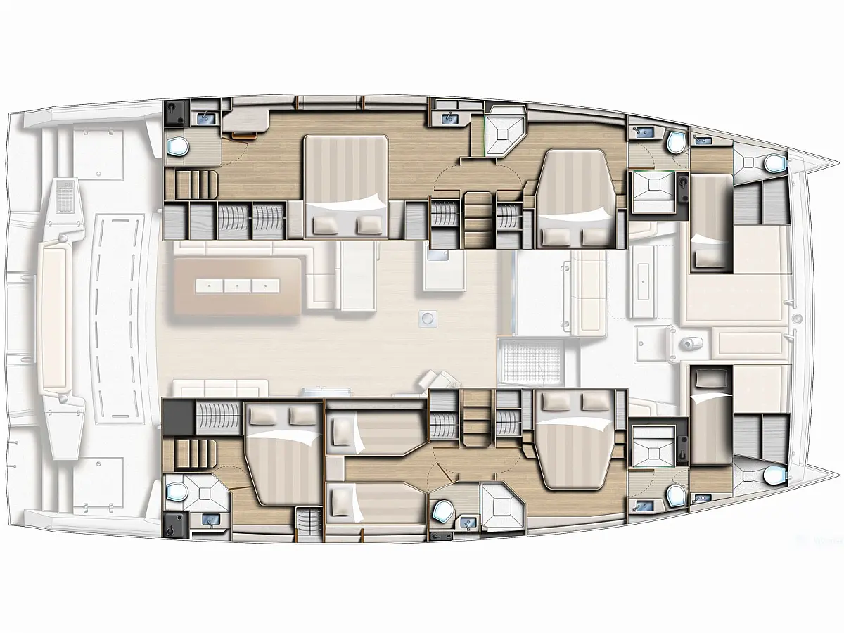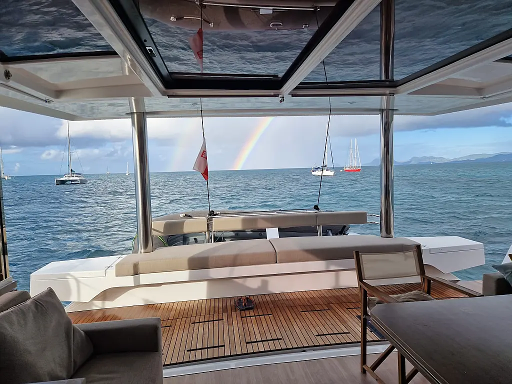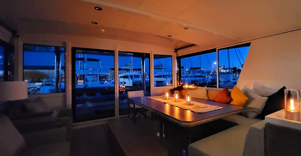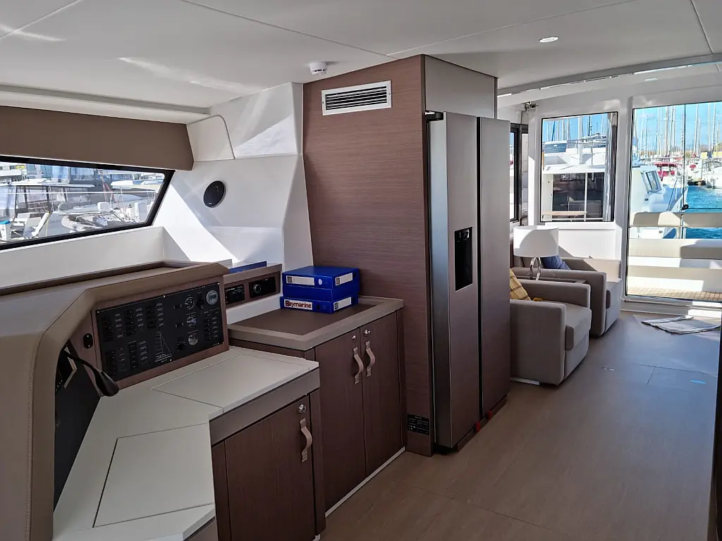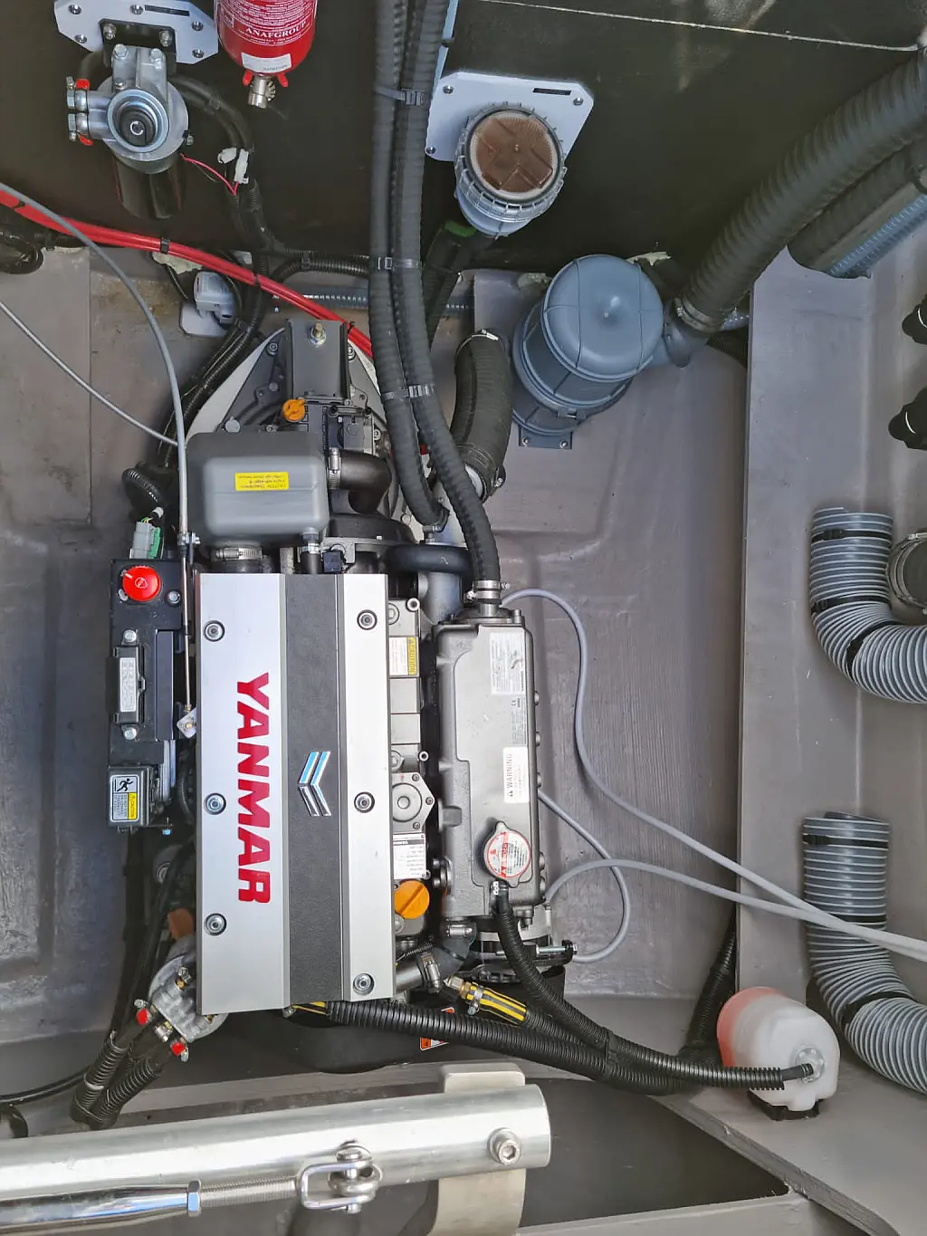 Cockpit cushions, Air condition, Dinghy, Refrigerator, Generator, Barbecue grill in cockpit, Coffee maker, Teak deck, Teak Cockpit, Water maker