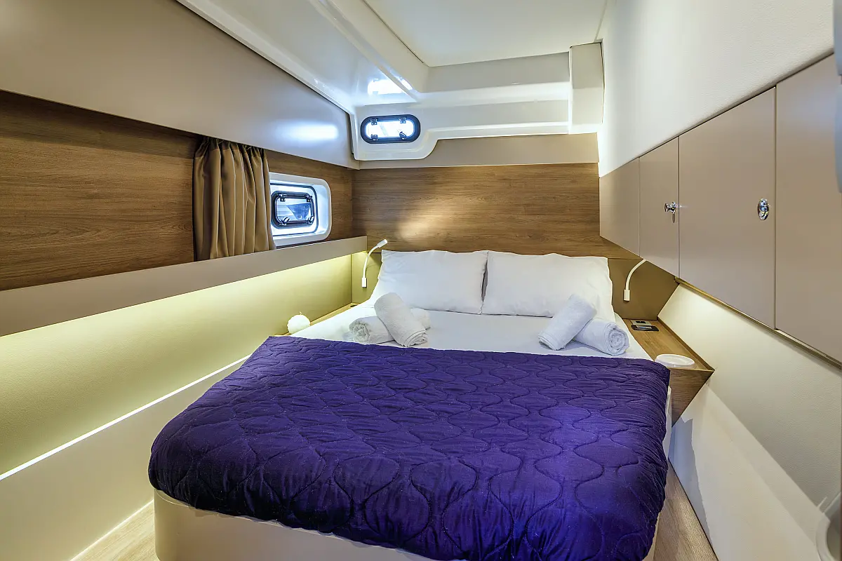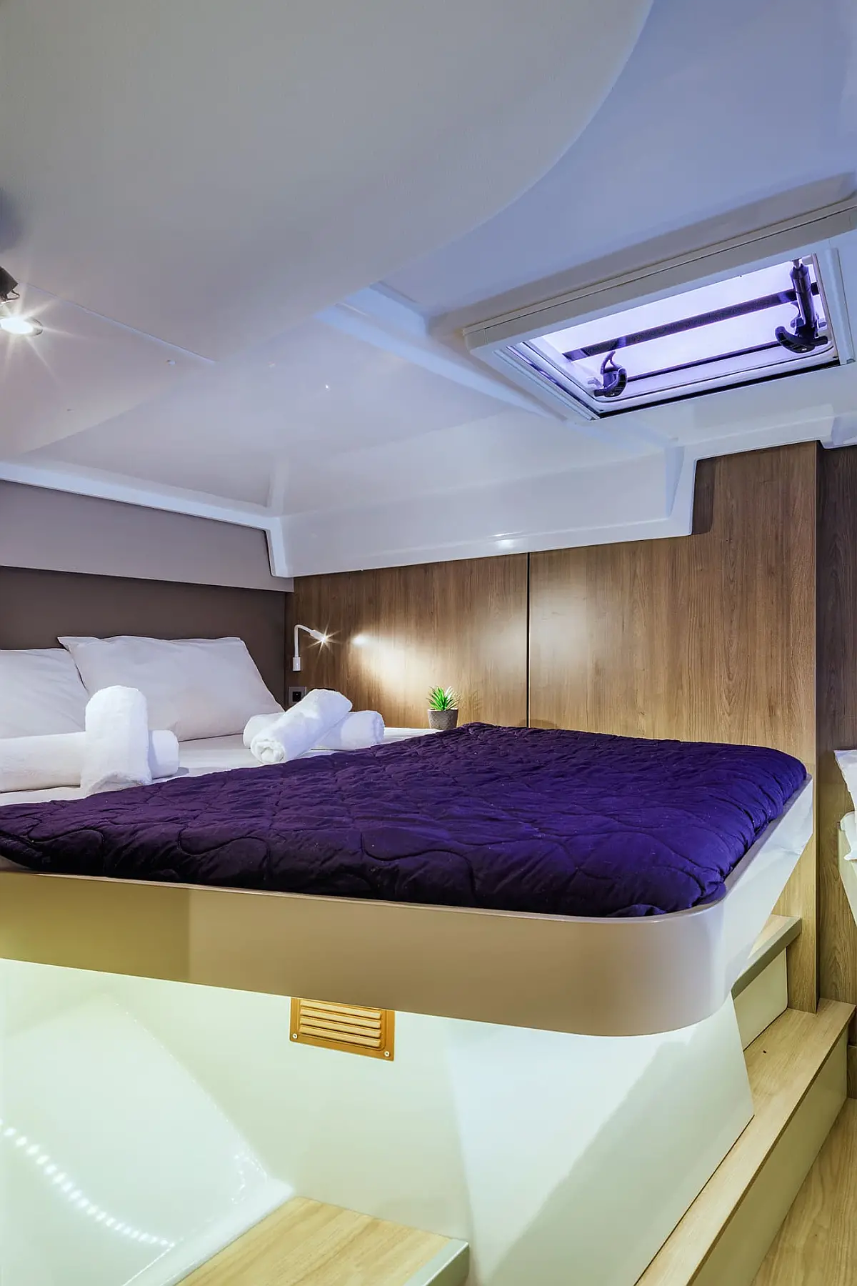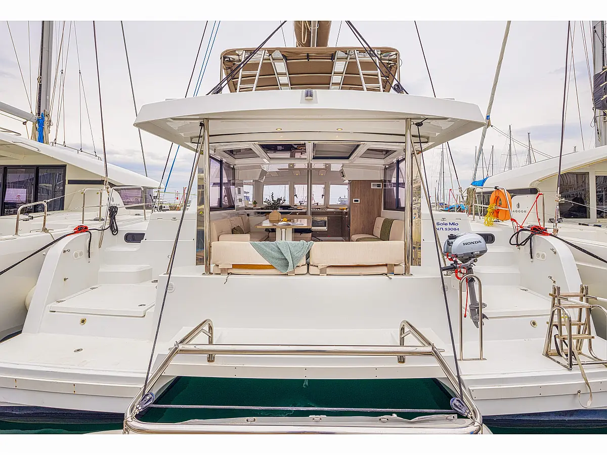 Dinghy, Outboard engine, Bimini, Cockpit cushions, Solar Panels, Air condition, Coffee maker, Refrigerator, Electric toilet, Electric winches, Generator, Inverter