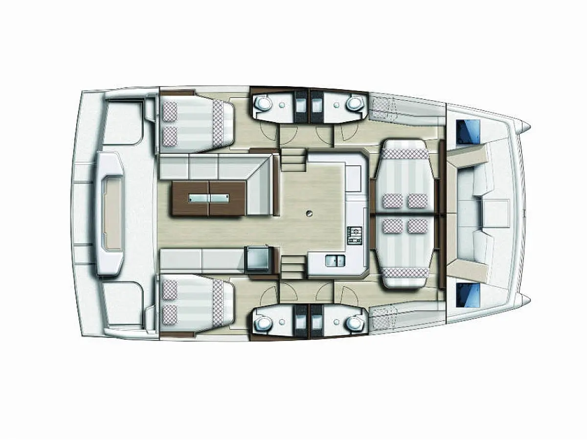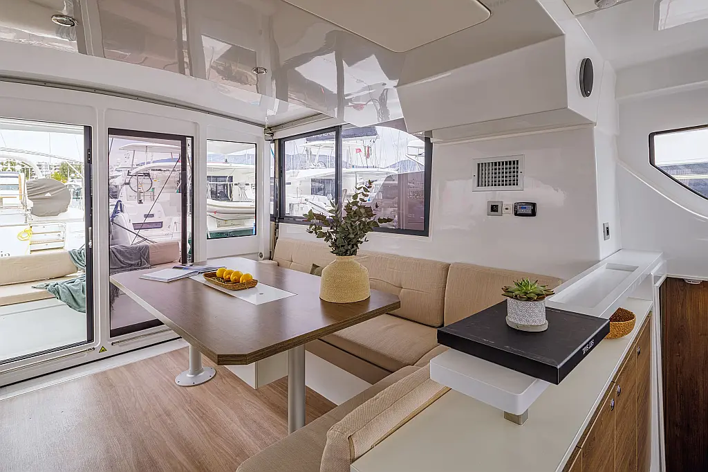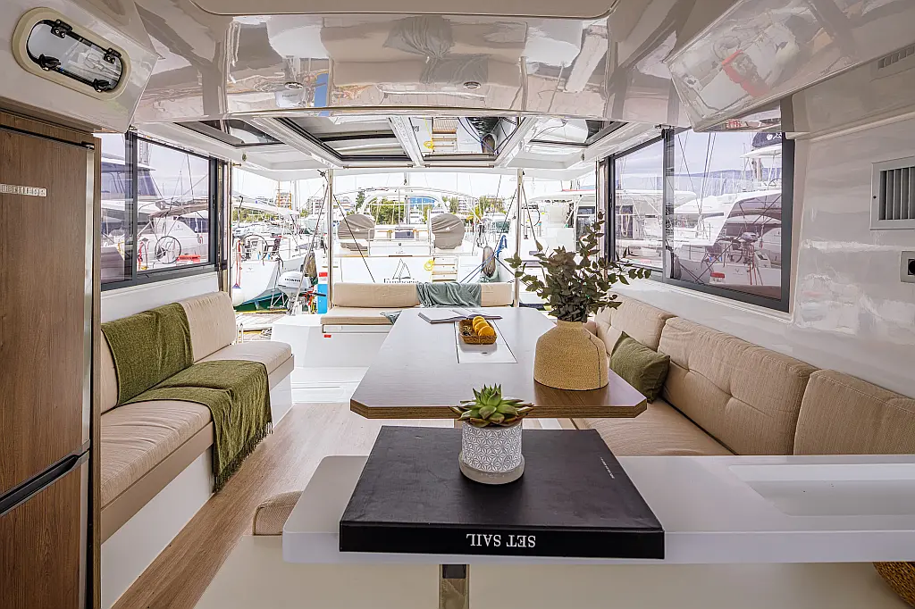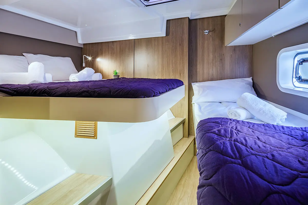 Dinghy, Outboard engine, Bimini, Cockpit cushions, Solar Panels, Air condition, Coffee maker, Refrigerator, Electric toilet, Electric winches, Generator, Inverter