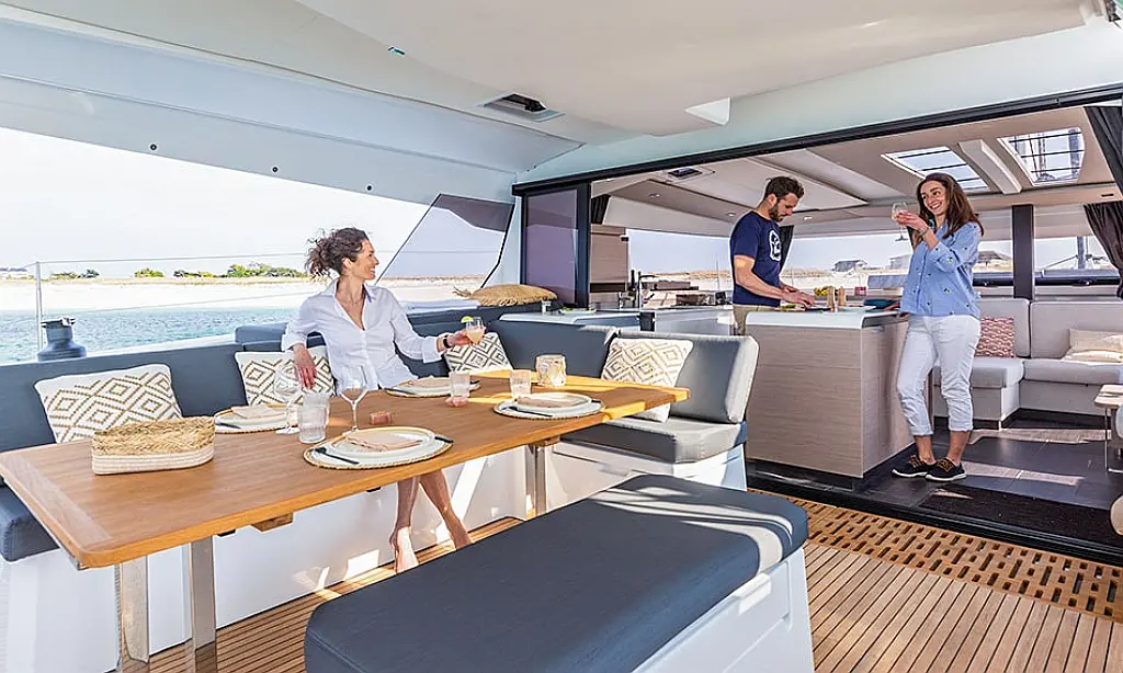 Electric winches, Ice maker, Air condition, Dinghy, Wi-Fi & Internet, Coffee maker, Hydraulic gangway, Flybridge, Generator, Swimming platform, Outboard engine, Water maker, Electric toilet, Solar Panels, Inverter, Refrigerator, Cockpit cushions