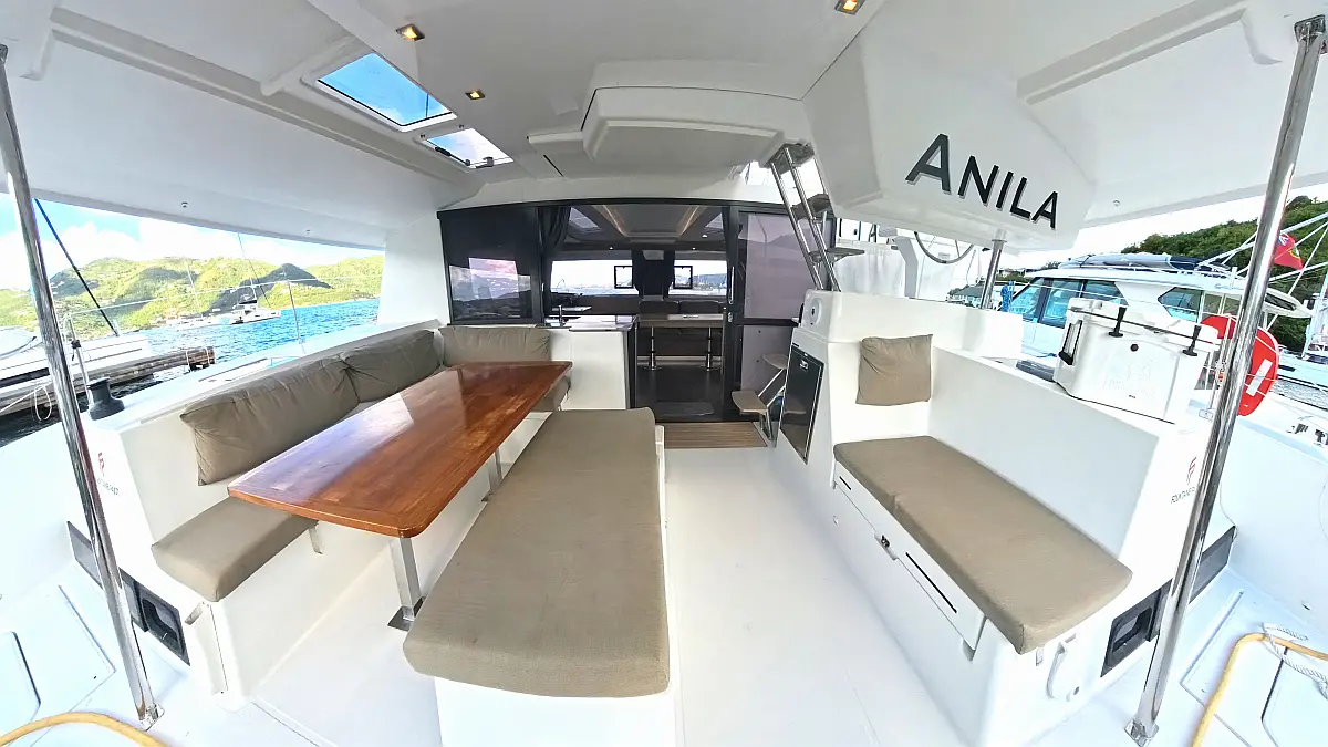Coffee maker, Refrigerator, Wi-Fi & Internet, Inverter, Dinghy, Electric toilet, Air condition, Cockpit cushions, Solar Panels, Cockpit speakers, Bimini