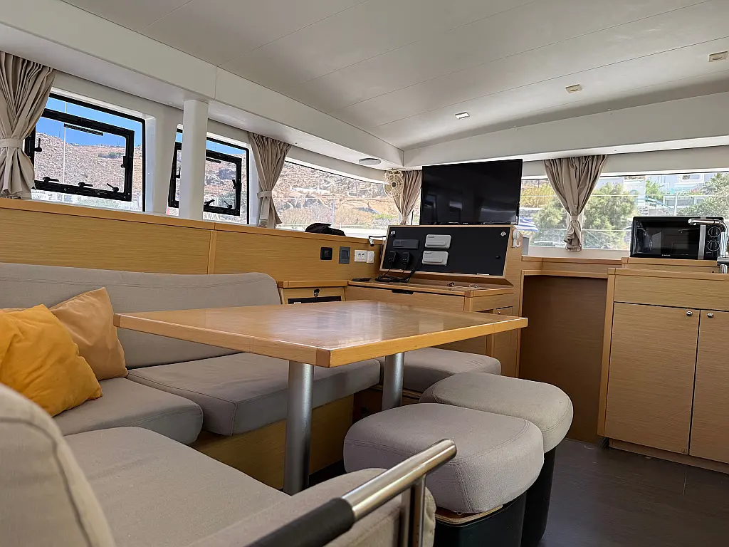 Air condition, Electric winches, Electric toilet, Inverter, Generator, Bimini, Cockpit cushions, Sprayhood, Cockpit speakers, Dinghy, Outboard engine, Refrigerator