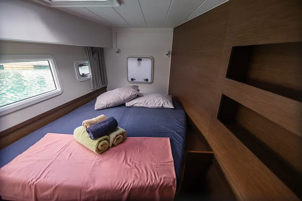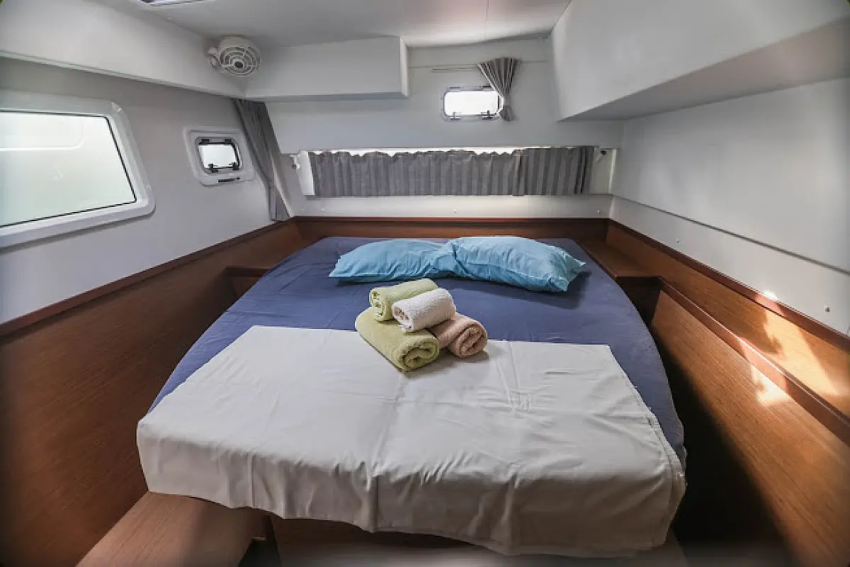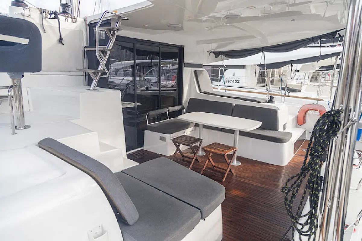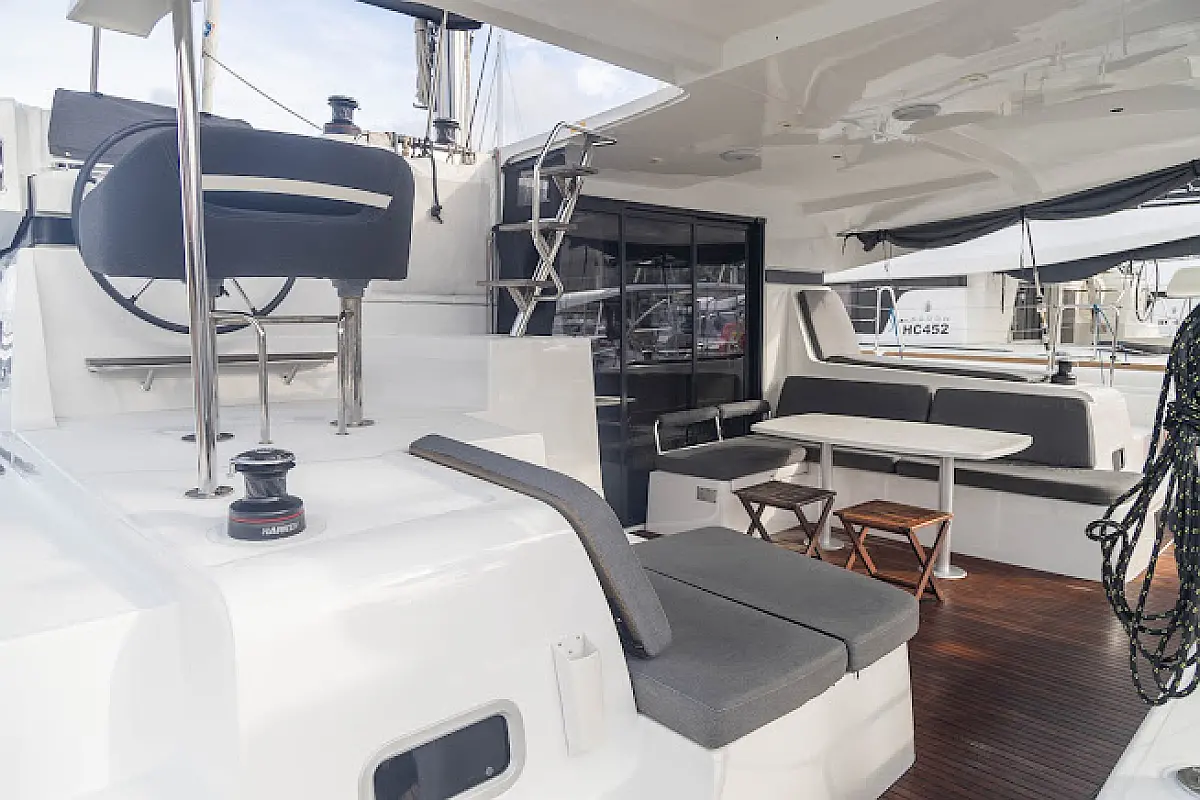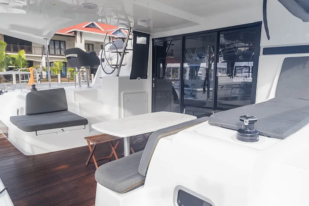 Refrigerator, Water maker, Bimini, Dinghy, Outboard engine, Teak deck, Solar Panels