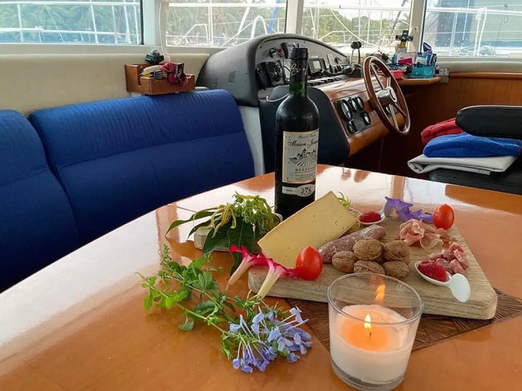 Solar Panels, Water maker, Refrigerator, Outboard engine, Dinghy, Air condition, Ice maker