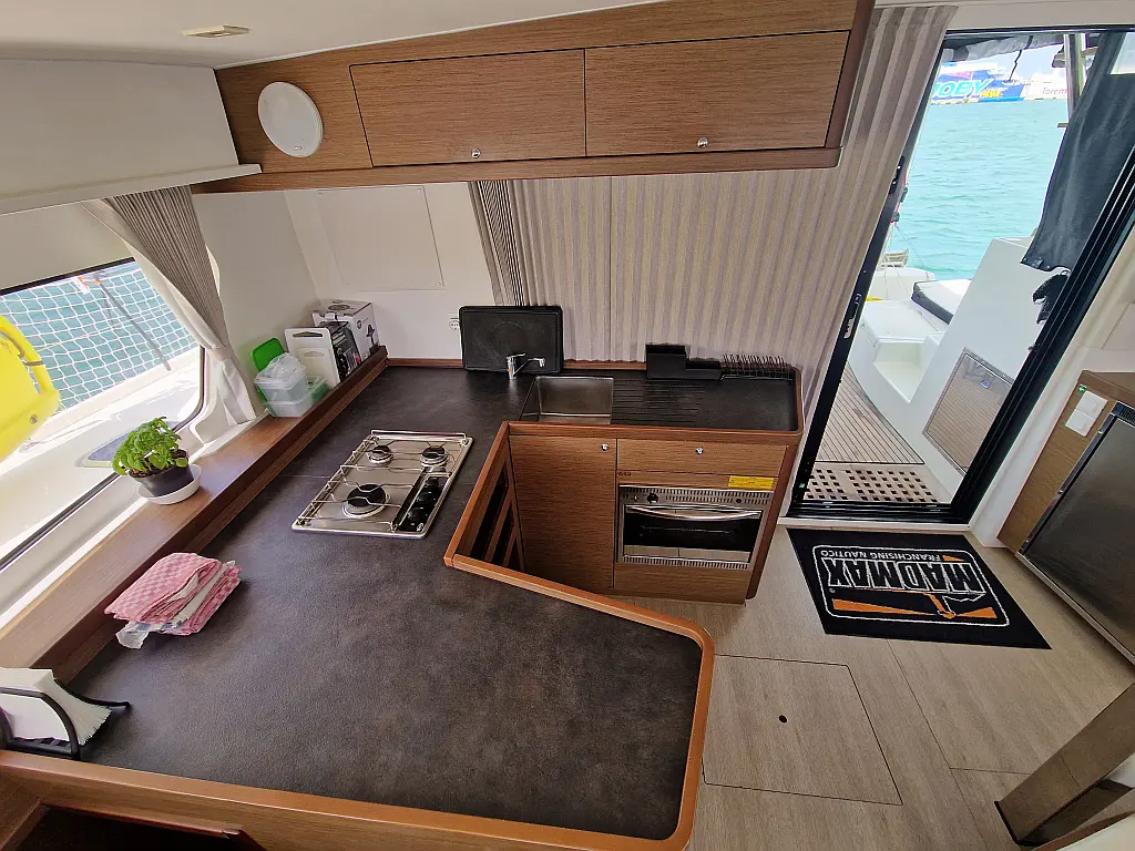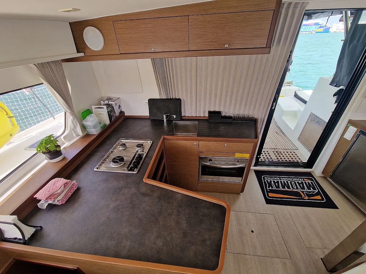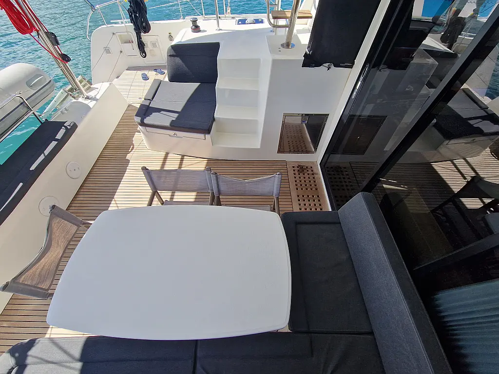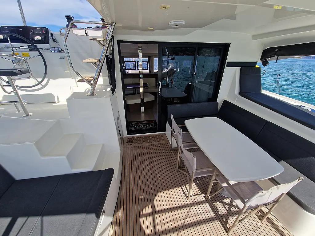 Bimini, Cockpit cushions, Dinghy, Electric winches, Electric toilet, Coffee maker, Inverter, Solar Panels, Teak Cockpit, Water maker