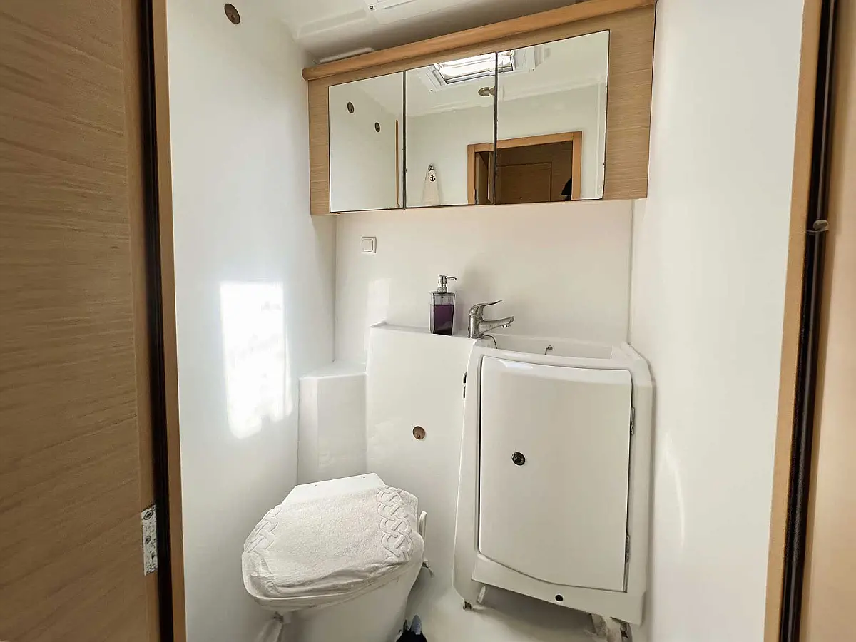 Electric toilet, Solar Panels, Dinghy, Outboard engine, Cockpit cushions, Cockpit speakers, Electric winches, Sprayhood, Swimming platform, Teak Cockpit, Inverter