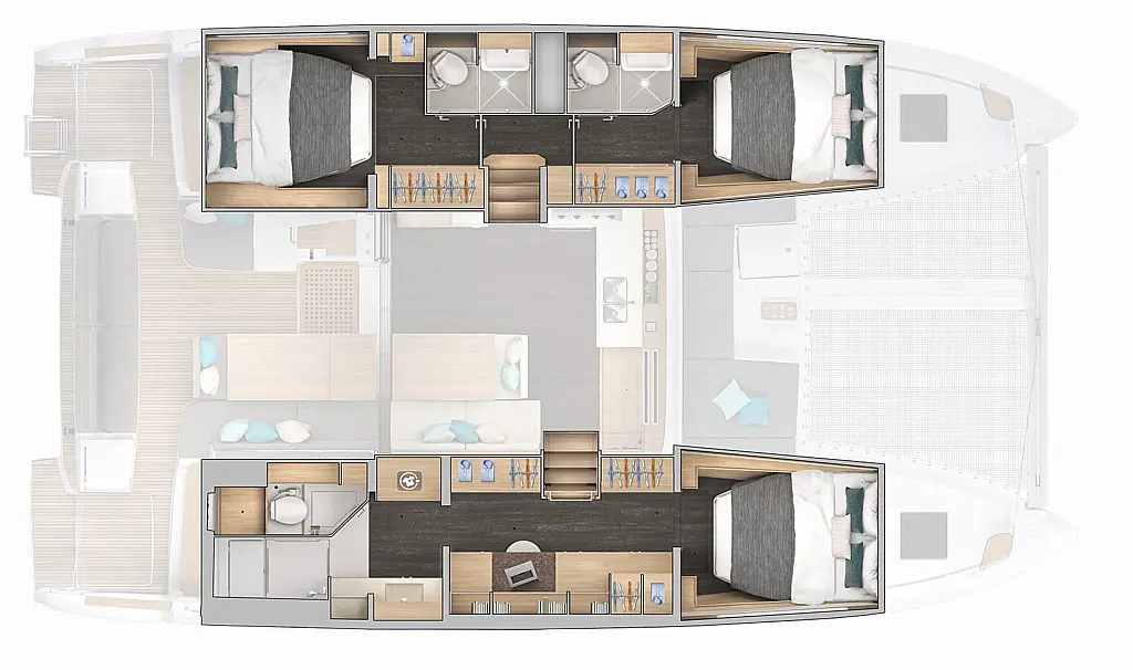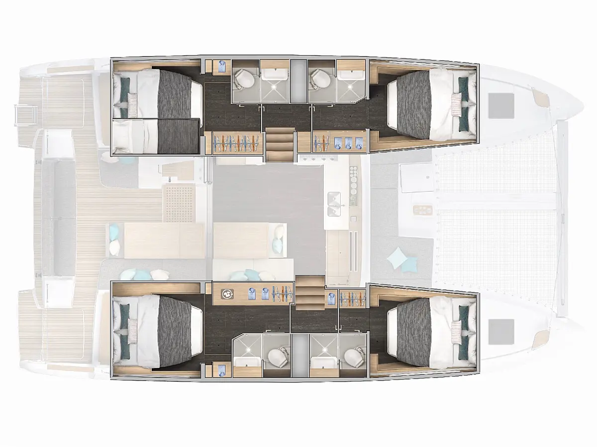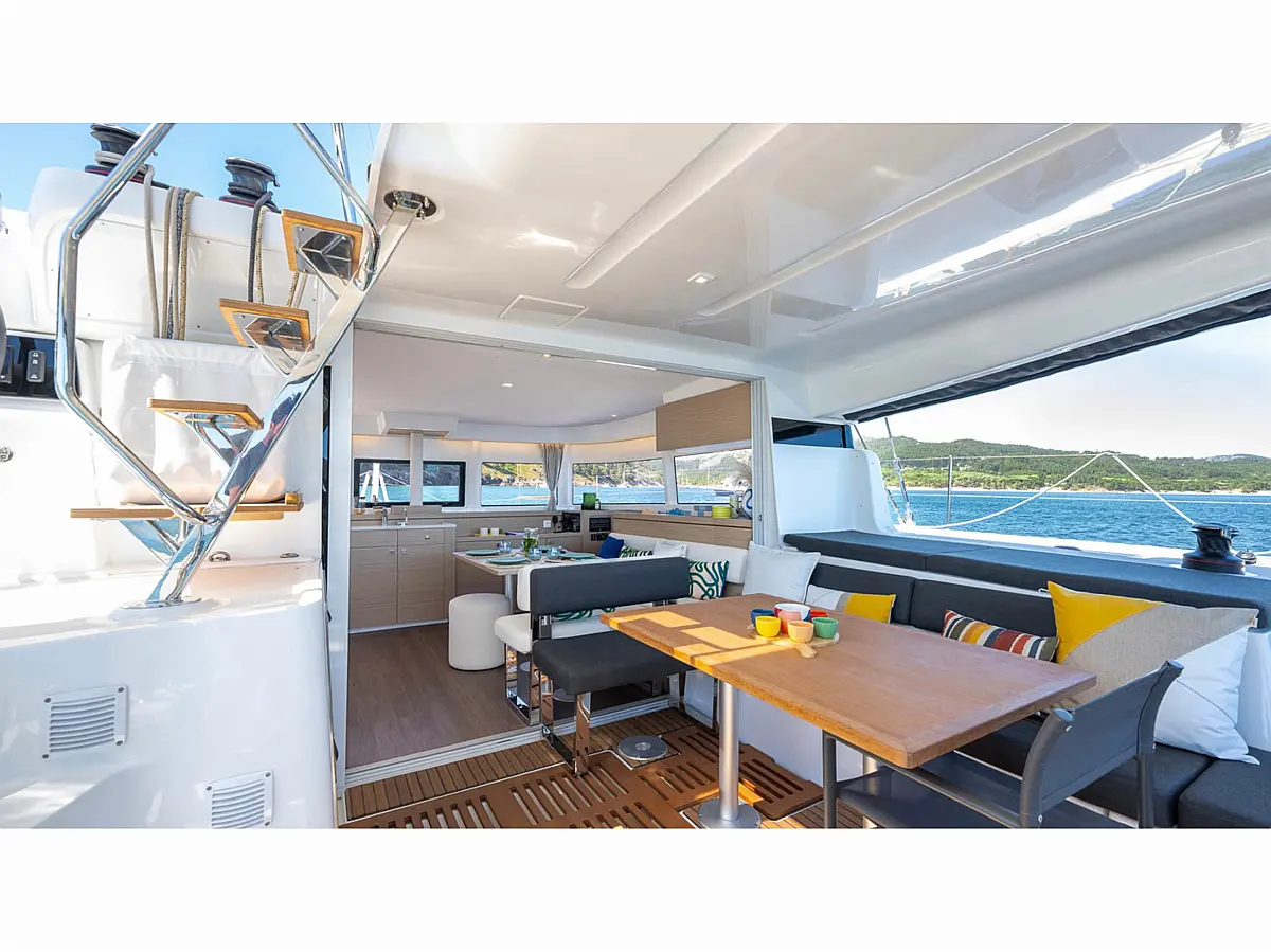 Barbecue grill in cockpit, Bimini, Cockpit cushions, Generator, Solar Panels, Water maker