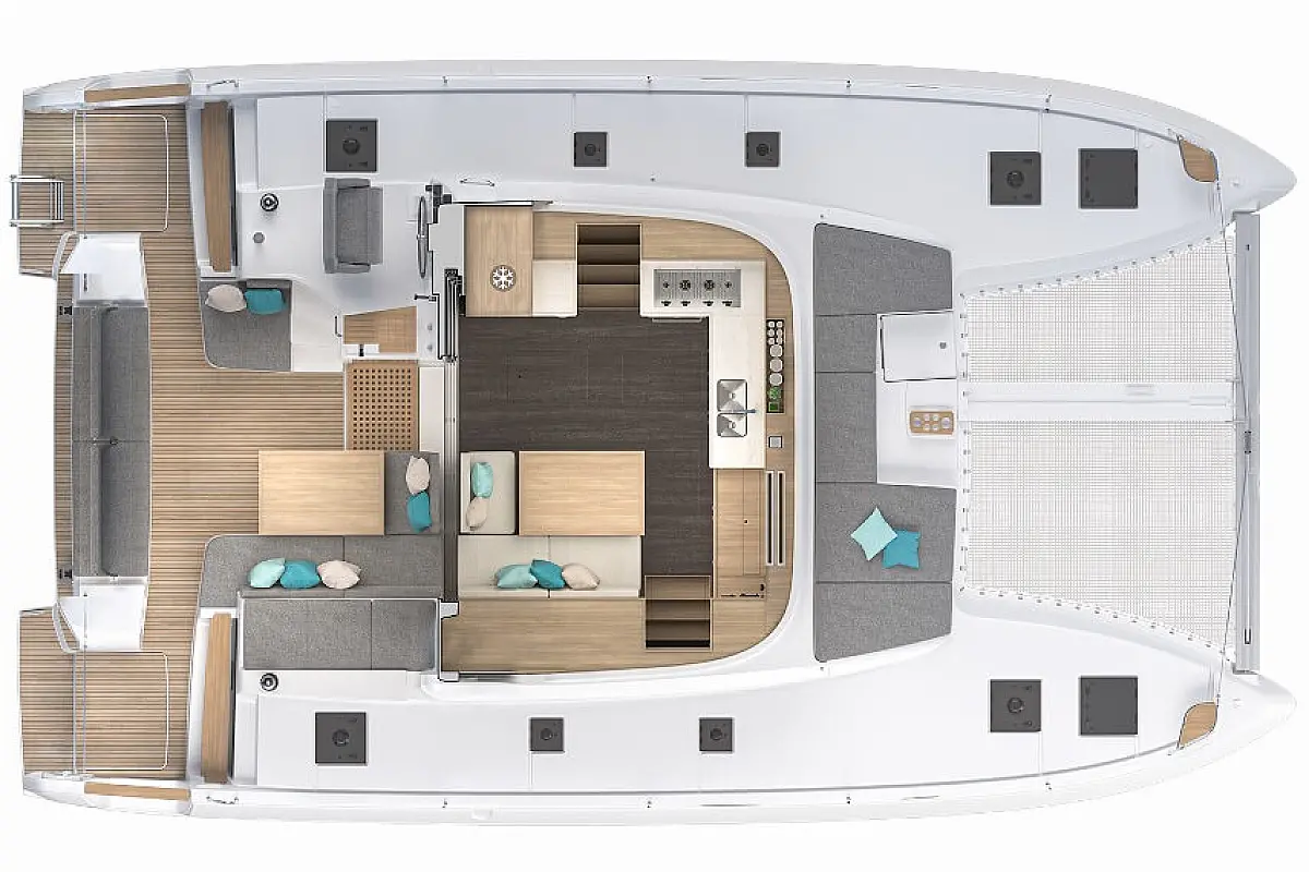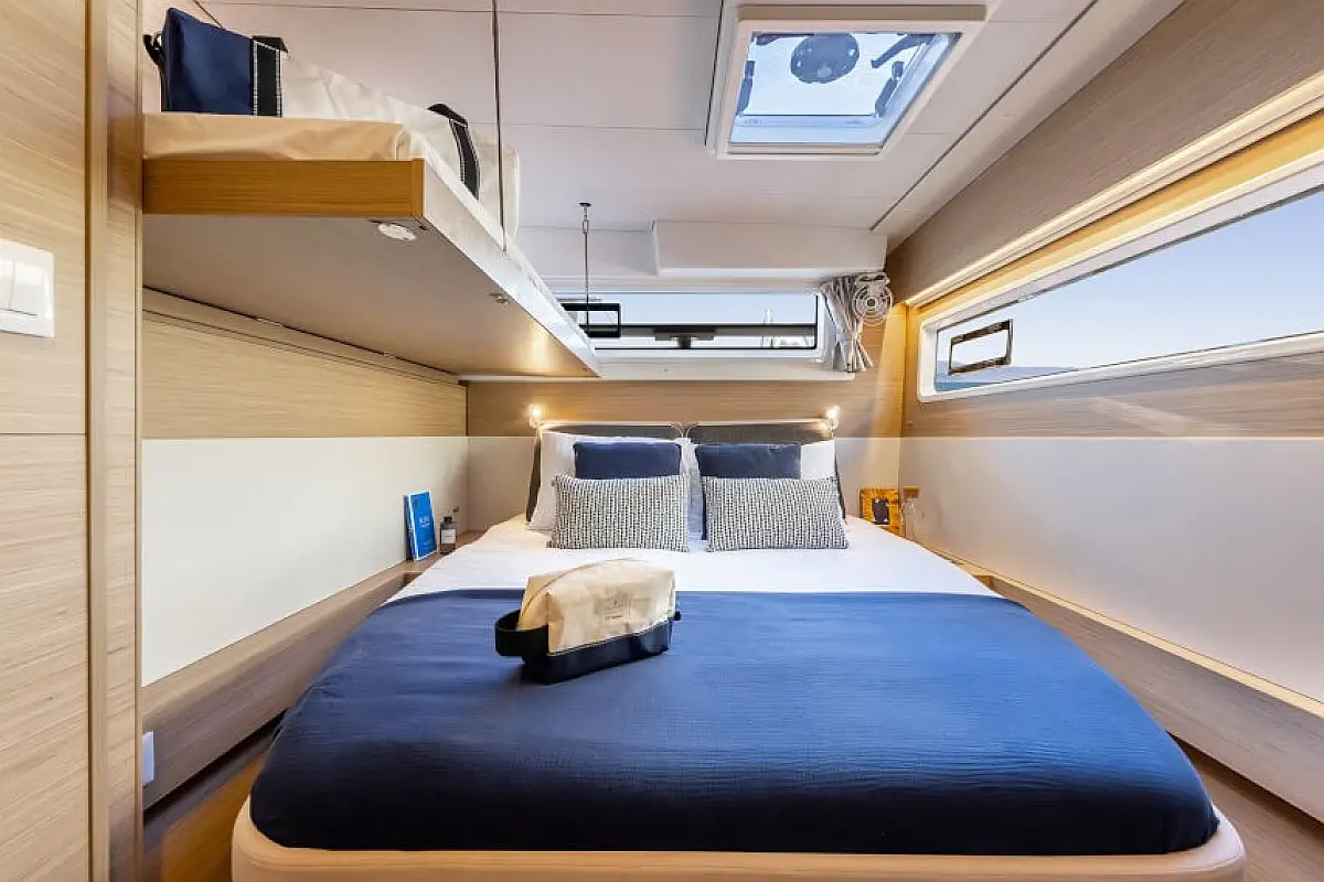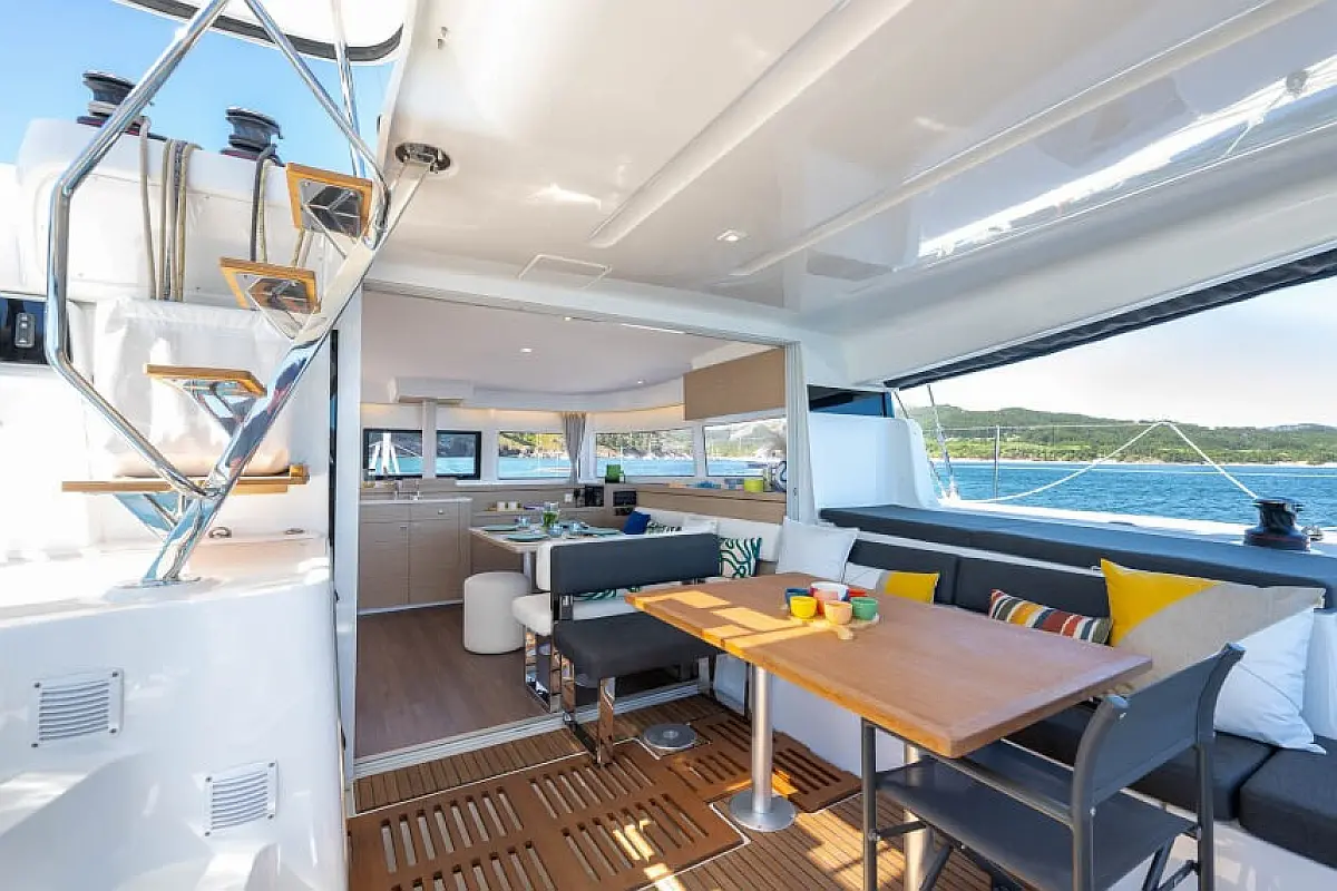 Coffee maker, Refrigerator, Wi-Fi & Internet, Inverter, Dinghy, Electric toilet, Air condition, Generator, Water maker, Cockpit cushions, Solar Panels, Cockpit speakers, Bimini