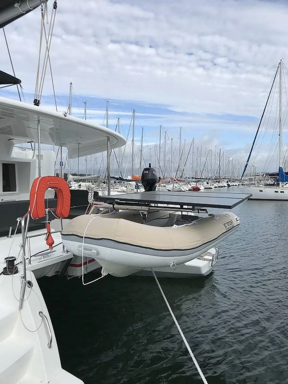 Refrigerator, Bimini, Dinghy, Outboard engine, Flybridge, Teak deck