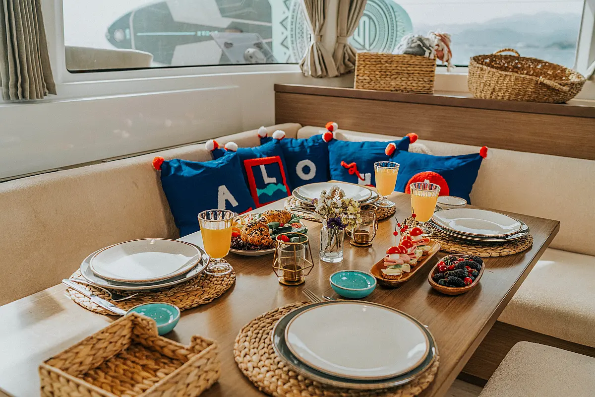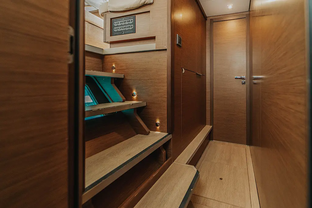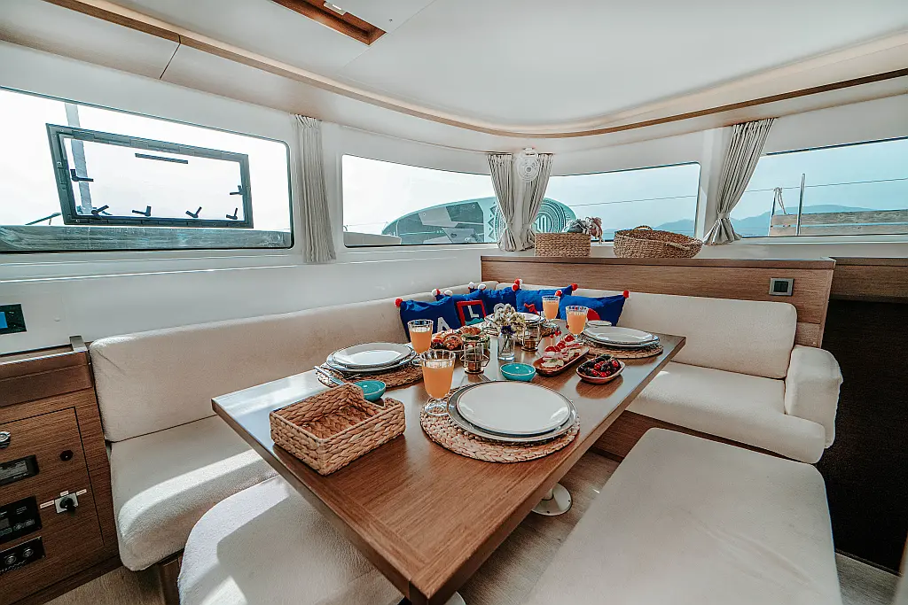 Refrigerator, Electric toilet, Cockpit cushions, Air condition, Water maker, Inverter, Generator, Solar Panels, Coffee maker, Heating, Electric winches