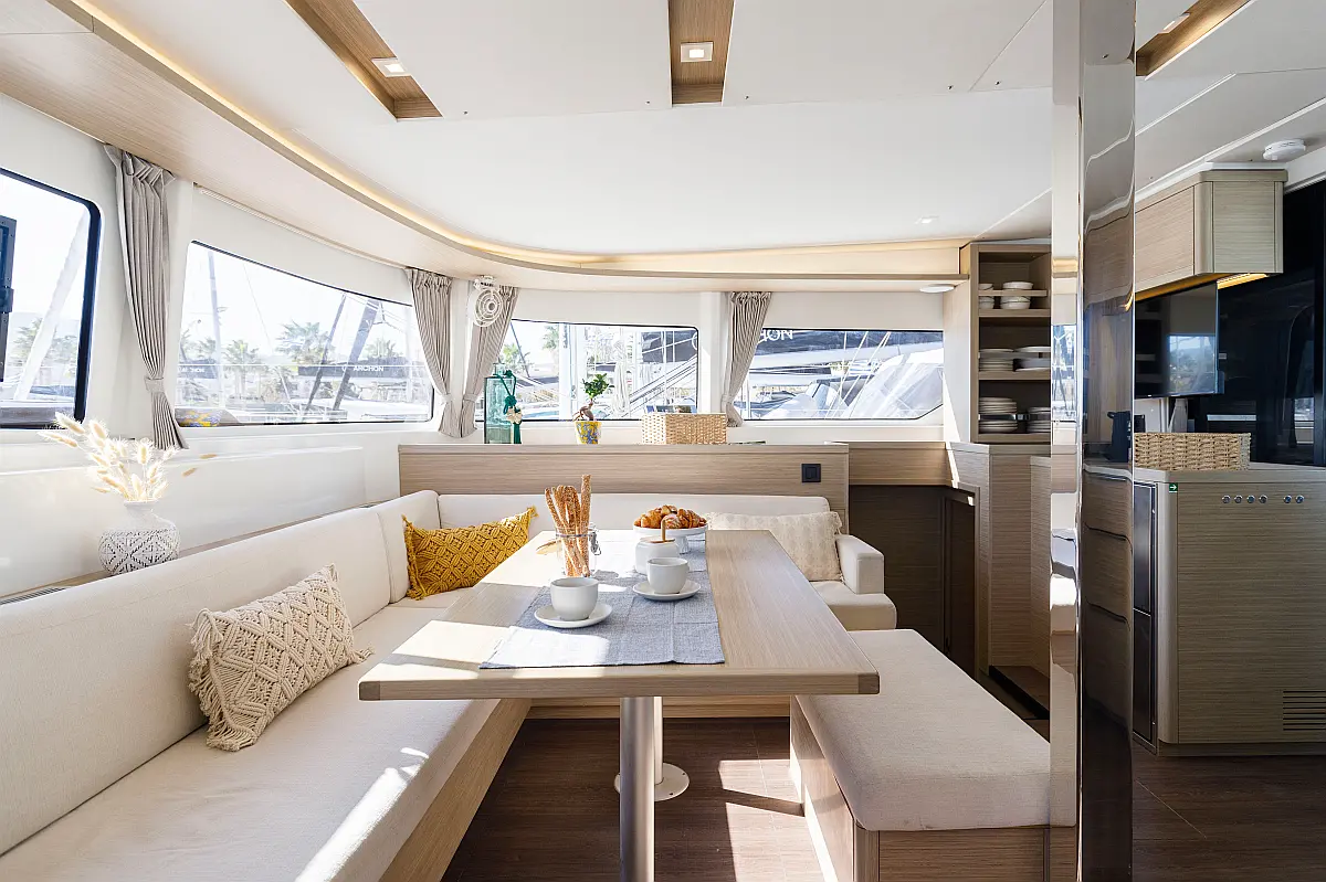 Air condition, Hydraulic gangway, Water maker, Electric winches, Coffee maker, Solar Panels, Generator, Bimini, Teak Cockpit, Cockpit cushions, Sprayhood, Cockpit speakers, Dinghy, Outboard engine, Refrigerator