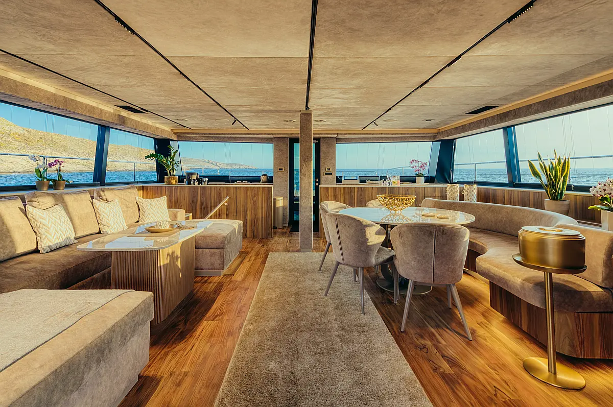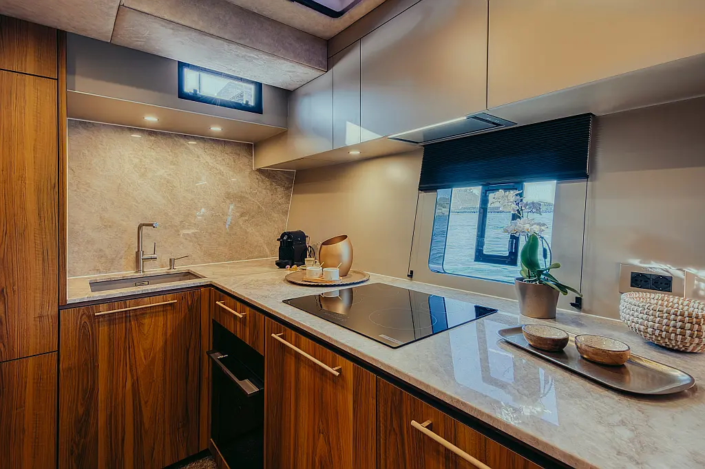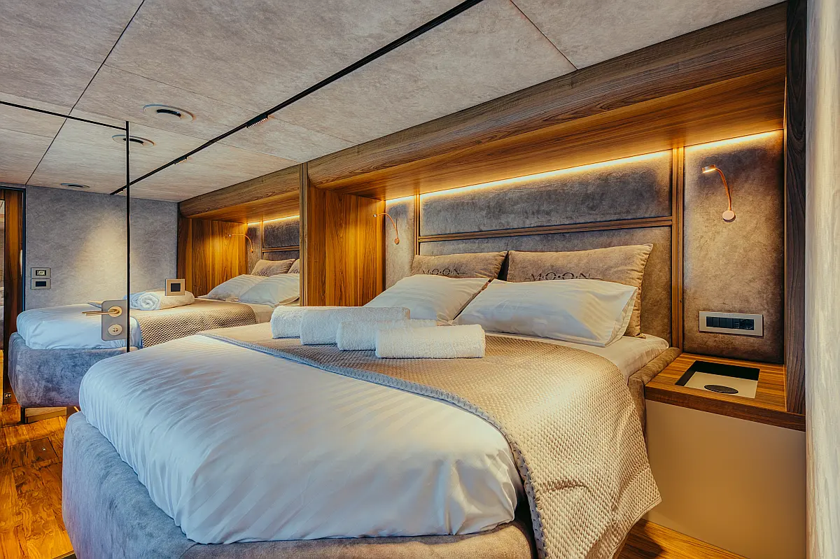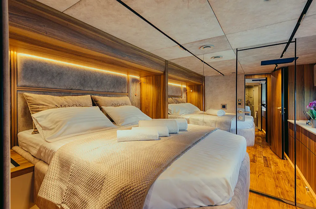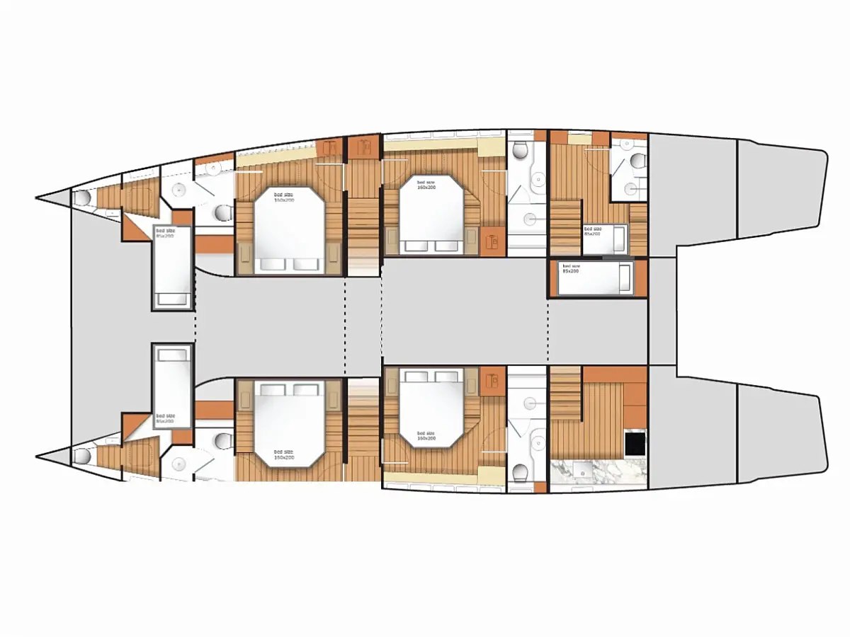 6 (4+2) galley in aft cabin, 1 owner's cabin, 1 VIP cabin, 2 guest cabins