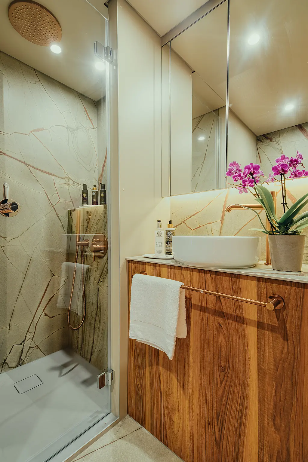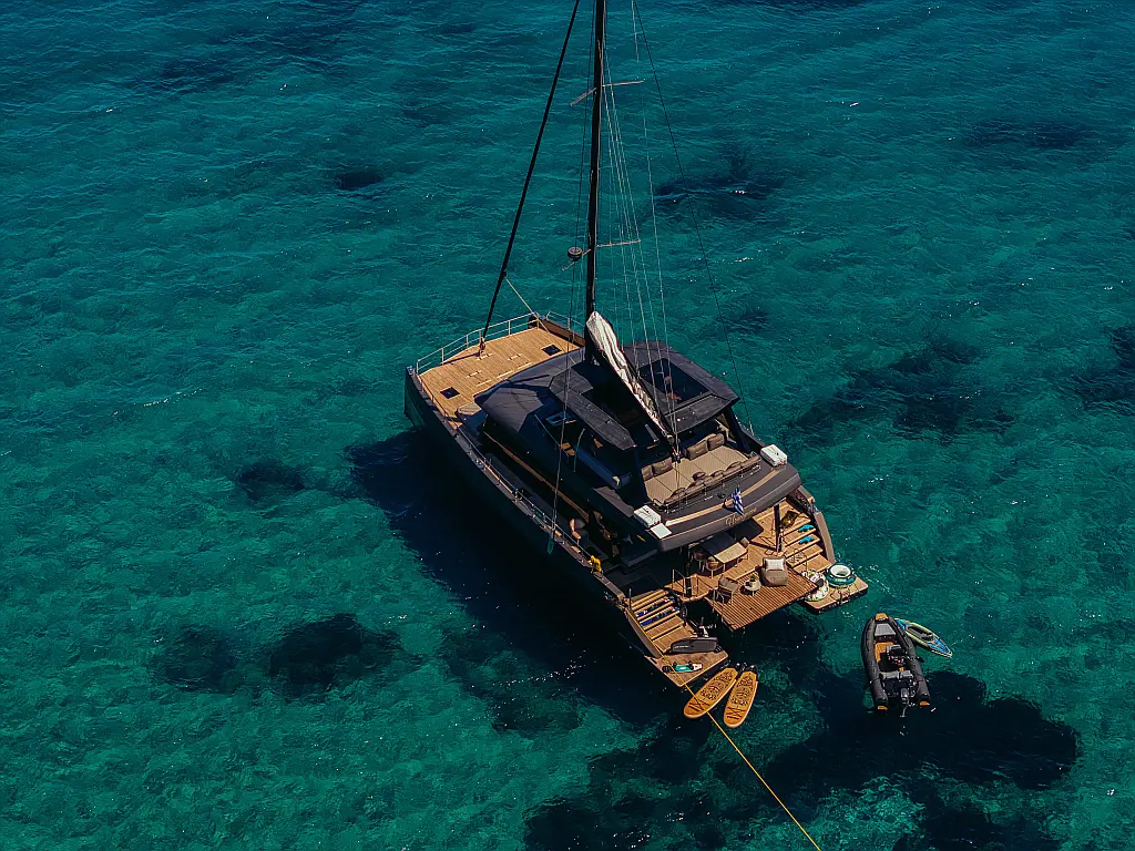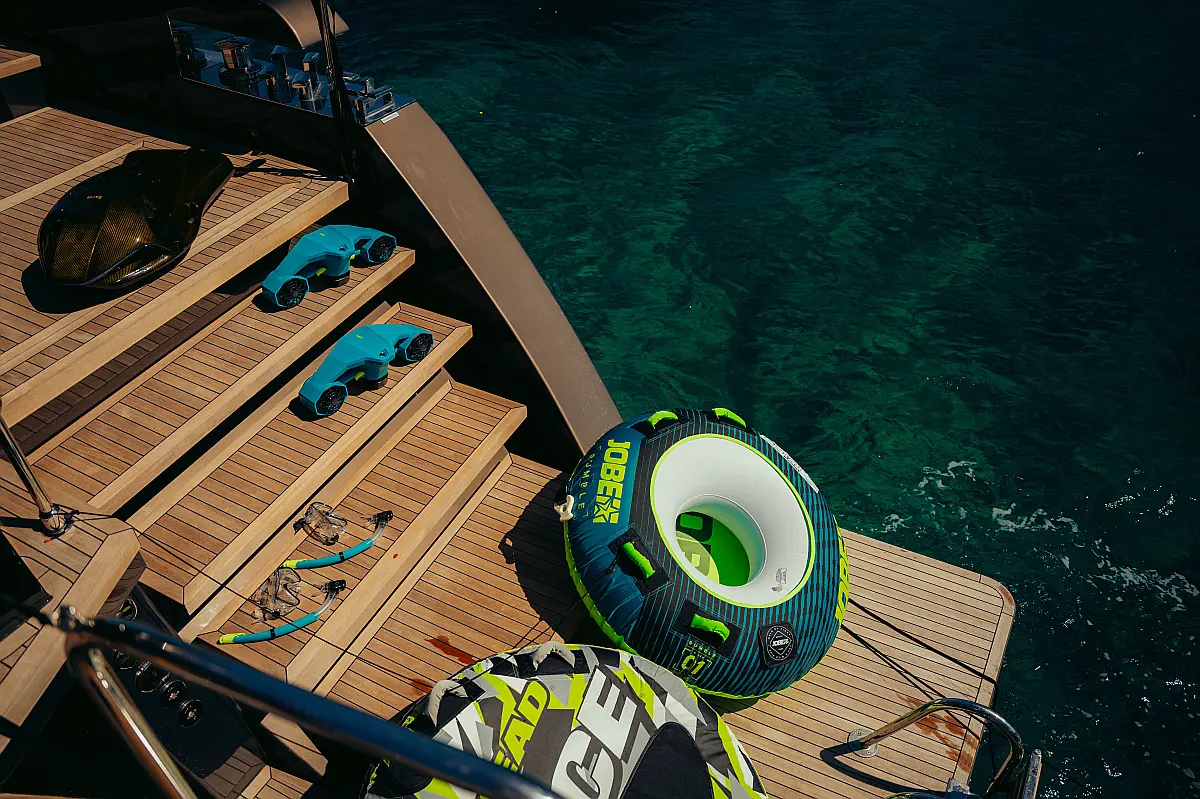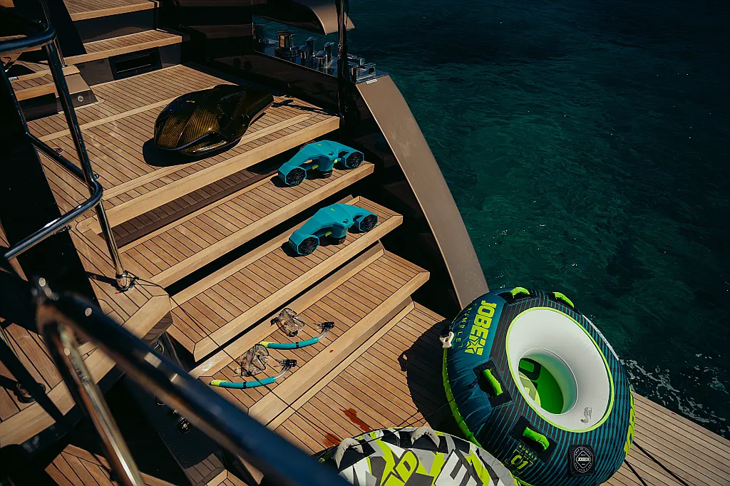 Electric winches, Refrigerator, Hydraulic gangway, Water maker