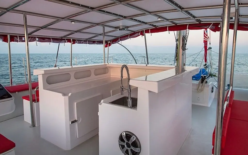 Barbecue grill in cockpit, Bimini, Water maker, Refrigerator, Solar Panels
