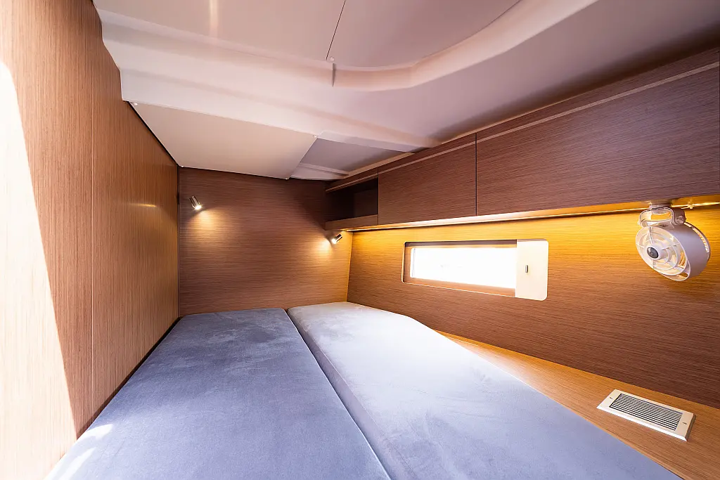 6 (4 double-bed cabins +1 with bunk beds +1 bow cabin)