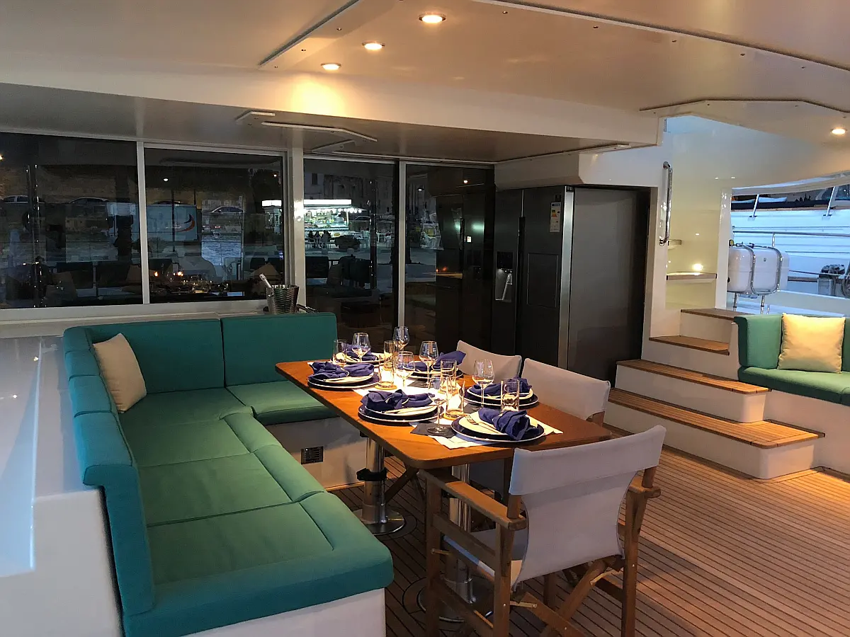Generator, Air condition, Swimming platform, Dinghy, Electric winches, Cockpit speakers, Bimini, Solar Panels, Teak deck, Water maker