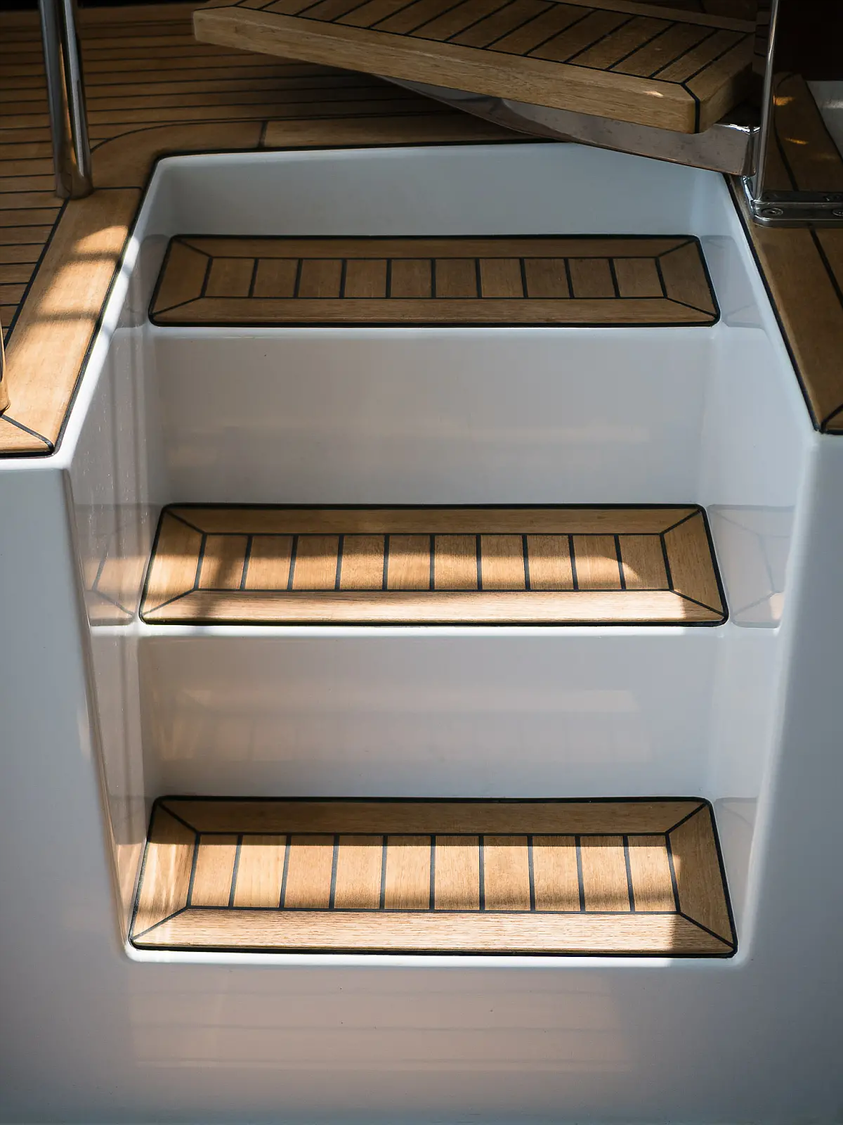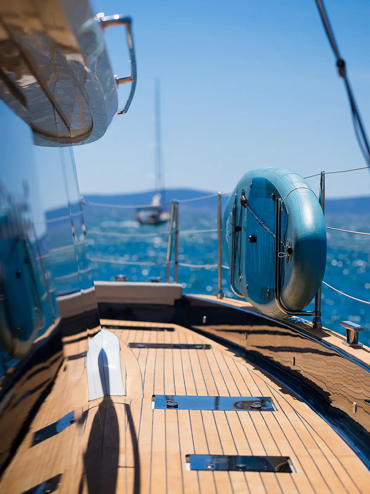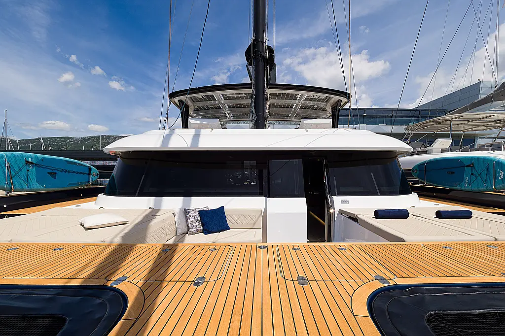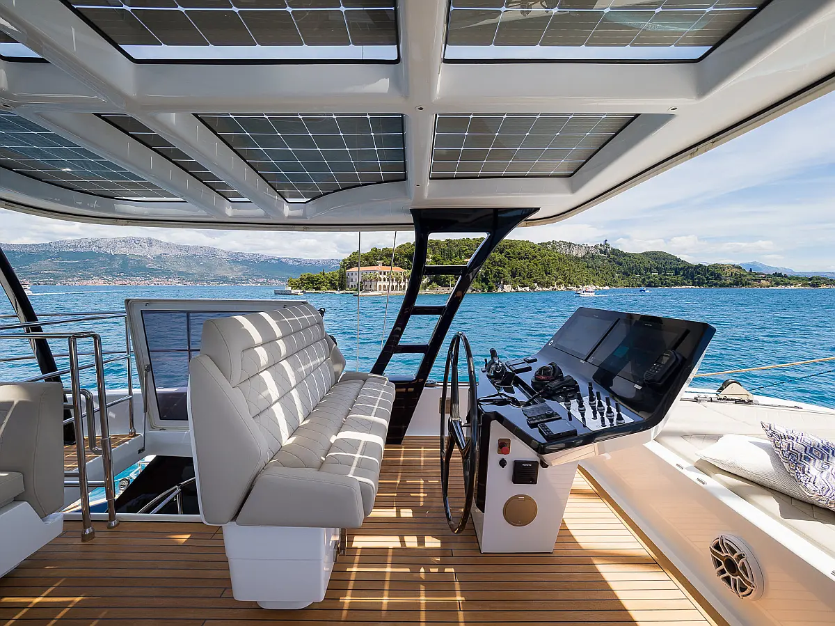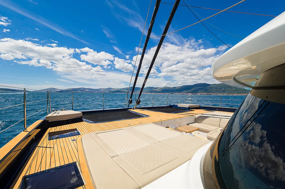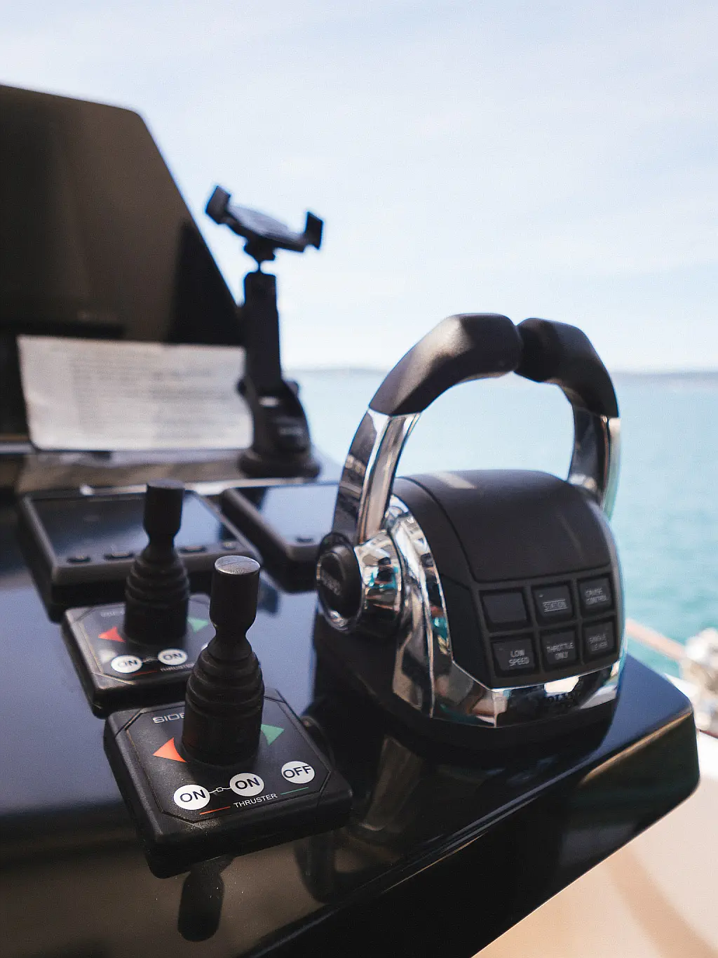 Cockpit speakers, Barbecue grill in cockpit, Air condition, Heating, Swimming platform, Bimini, Teak deck, Refrigerator, Generator, Solar Panels, Outboard engine, Dinghy, Sprayhood