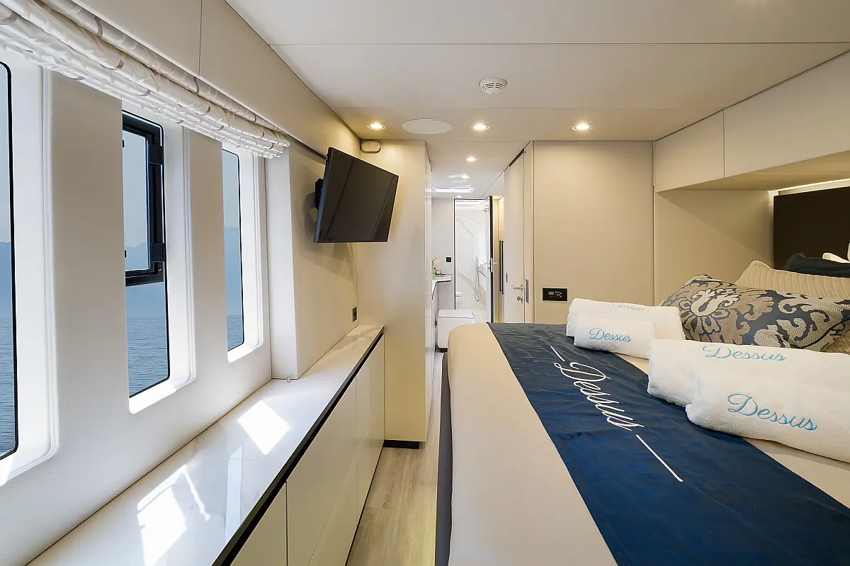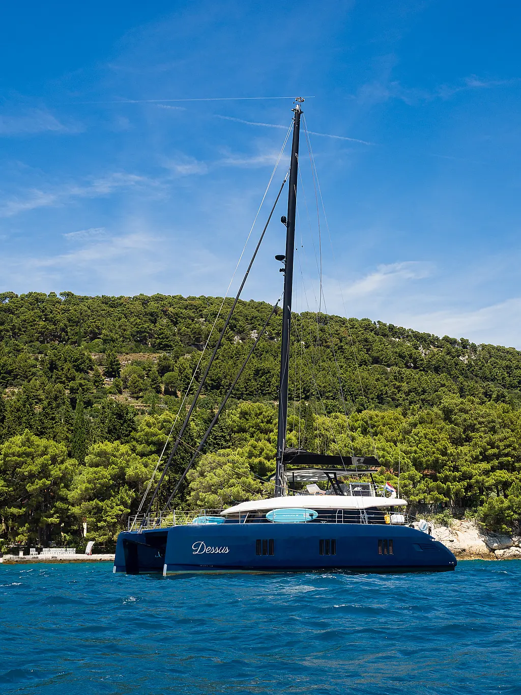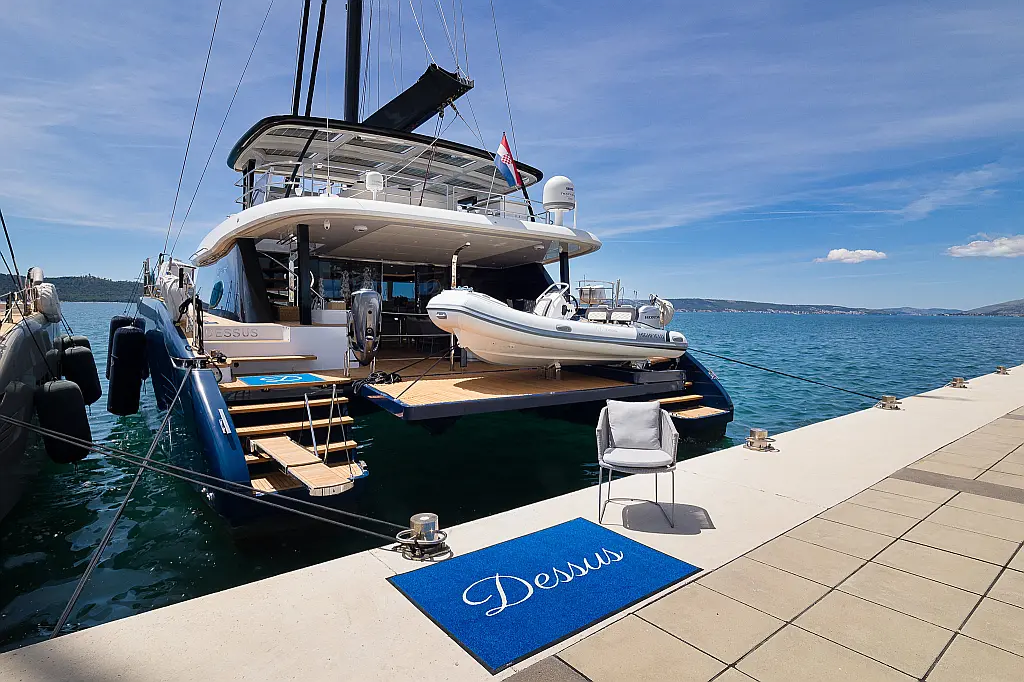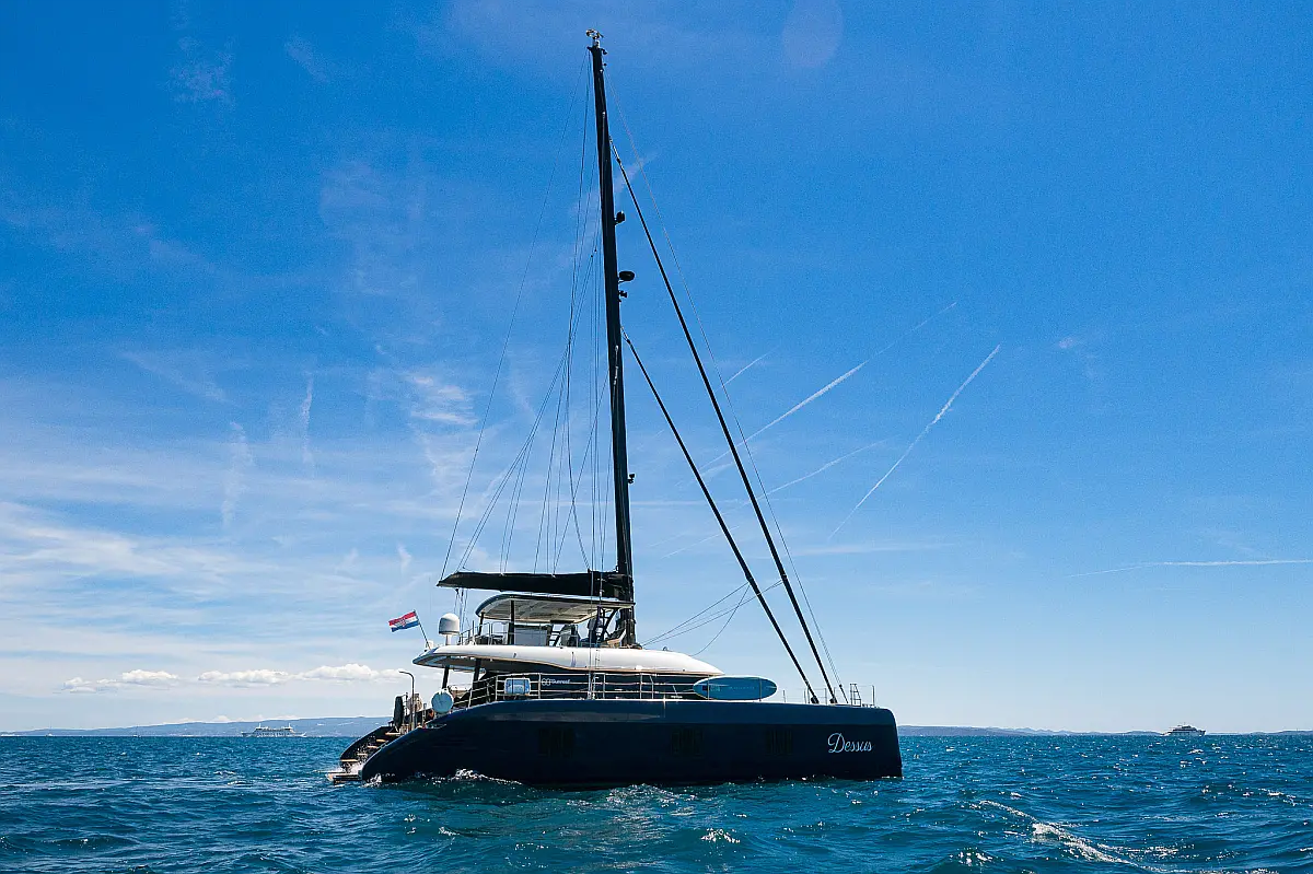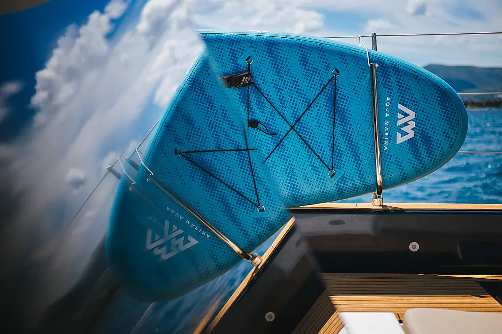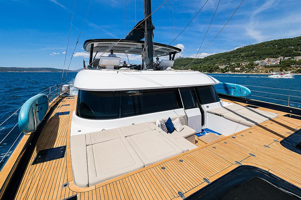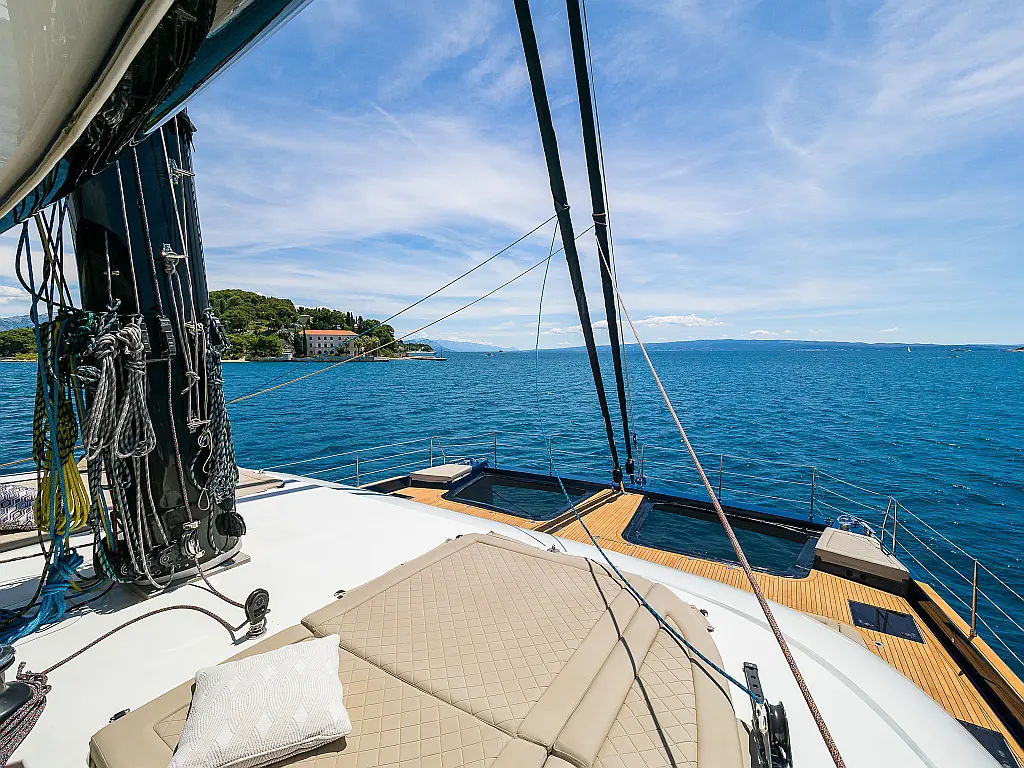 Cockpit speakers, Barbecue grill in cockpit, Air condition, Heating, Swimming platform, Bimini, Teak deck, Refrigerator, Generator, Solar Panels, Outboard engine, Dinghy, Sprayhood
