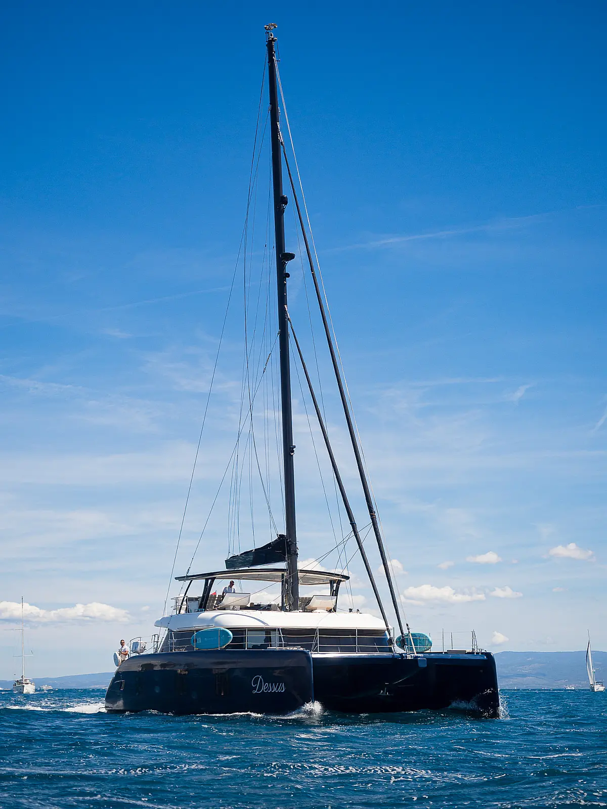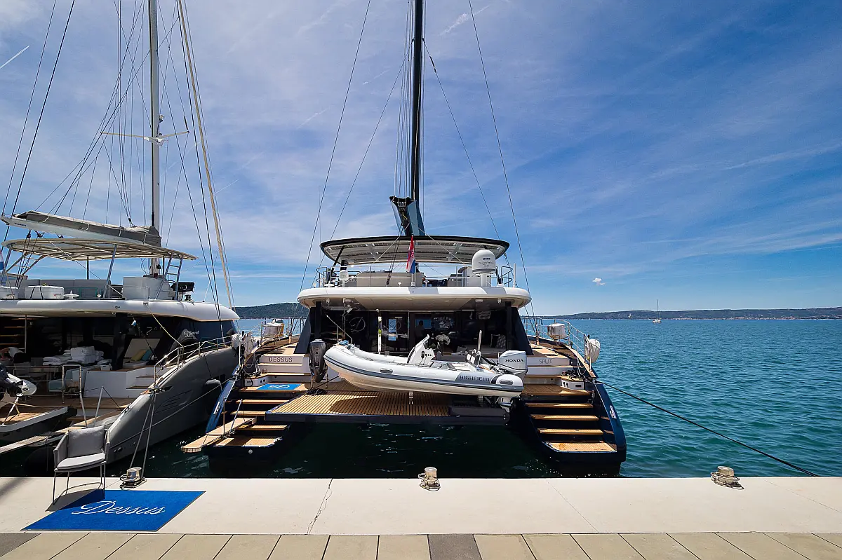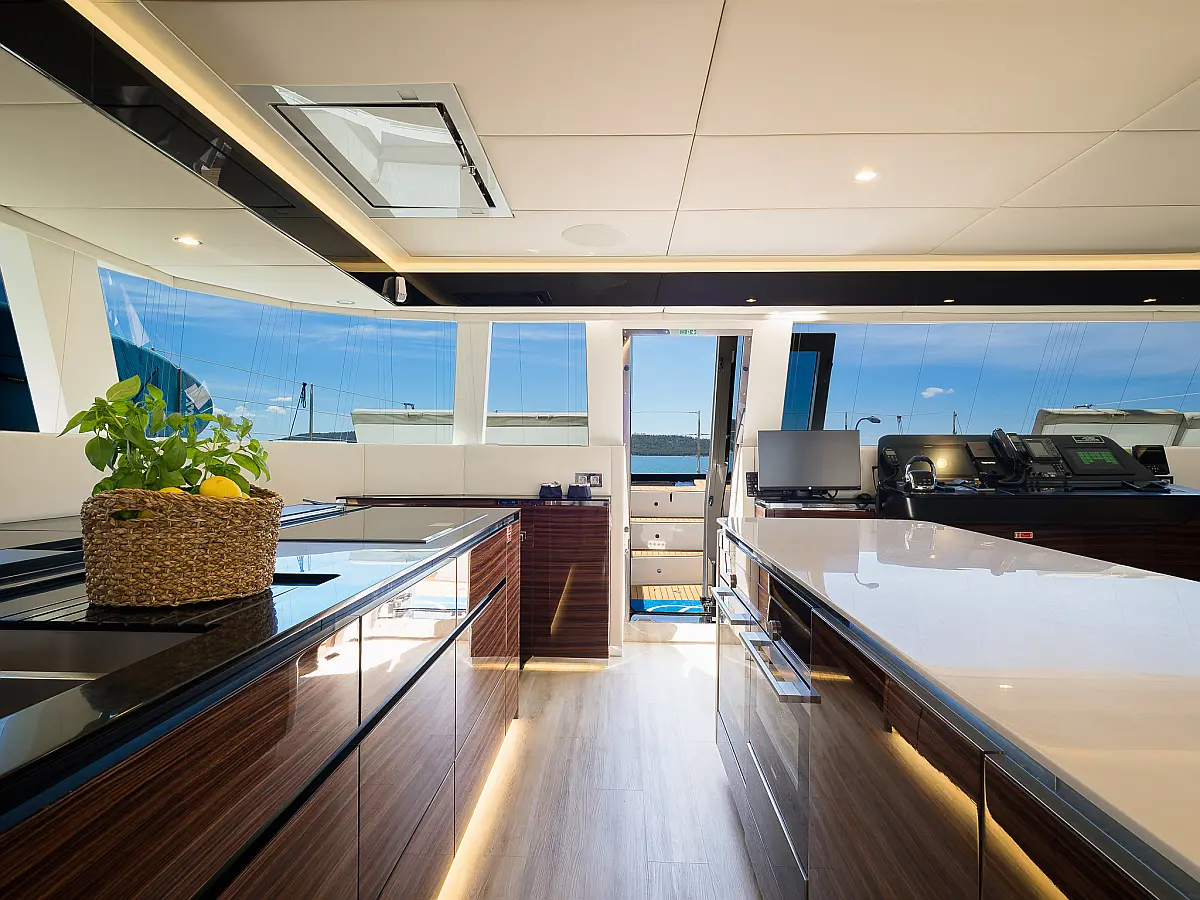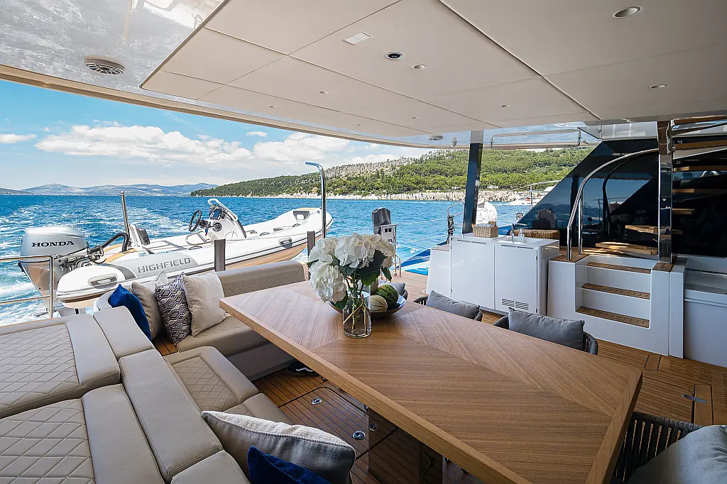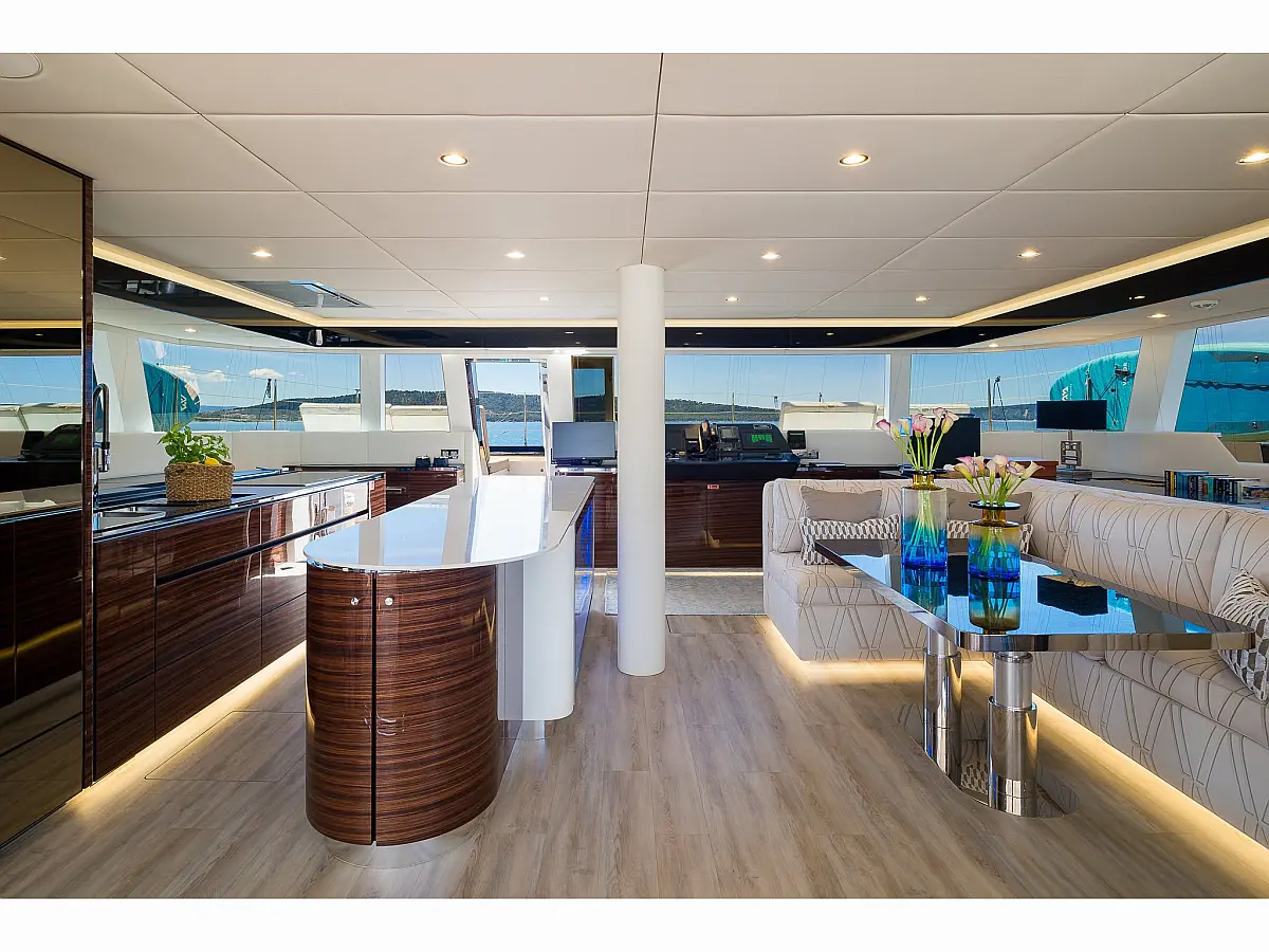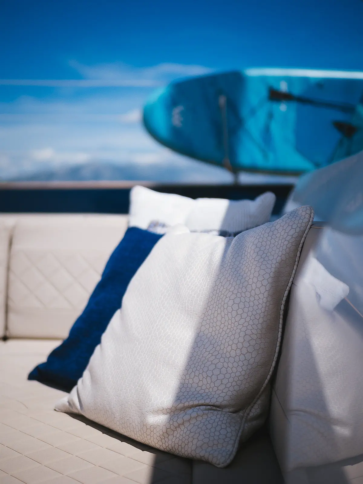 Cockpit speakers, Barbecue grill in cockpit, Air condition, Heating, Swimming platform, Bimini, Teak deck, Refrigerator, Generator, Solar Panels, Outboard engine, Dinghy, Sprayhood