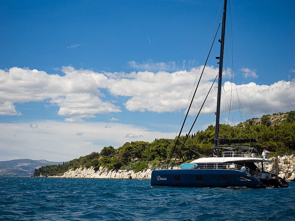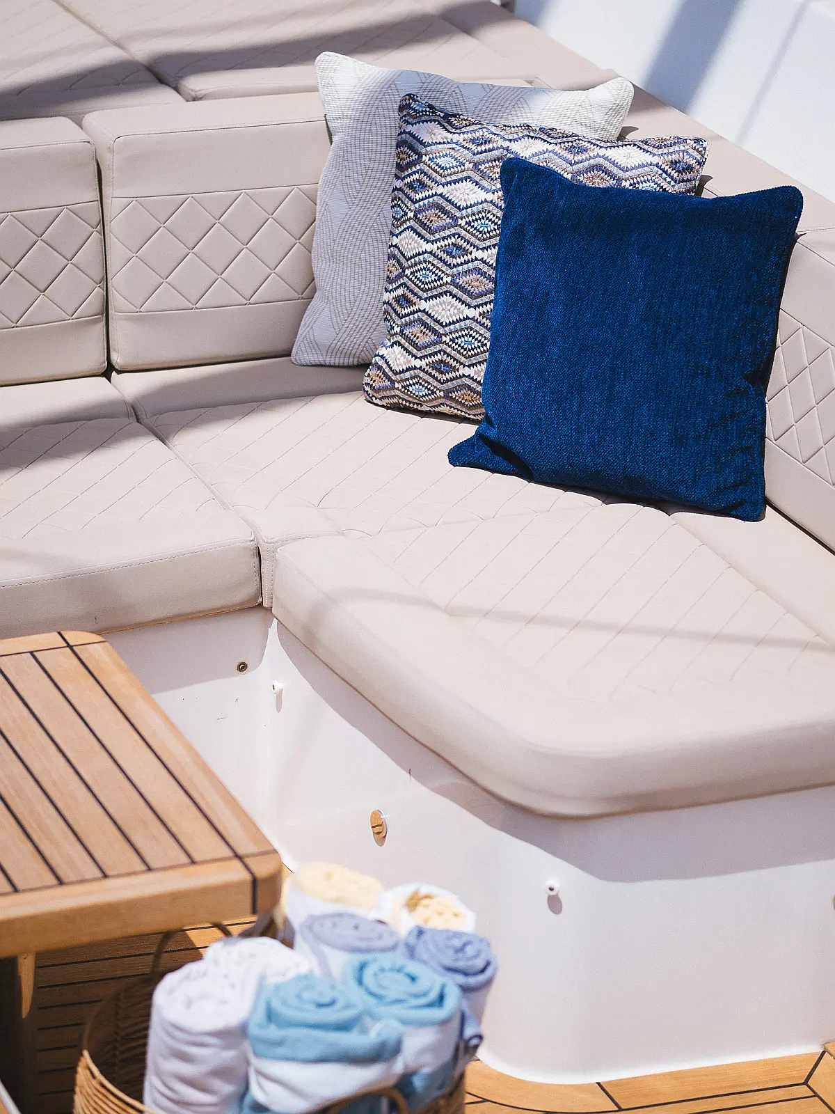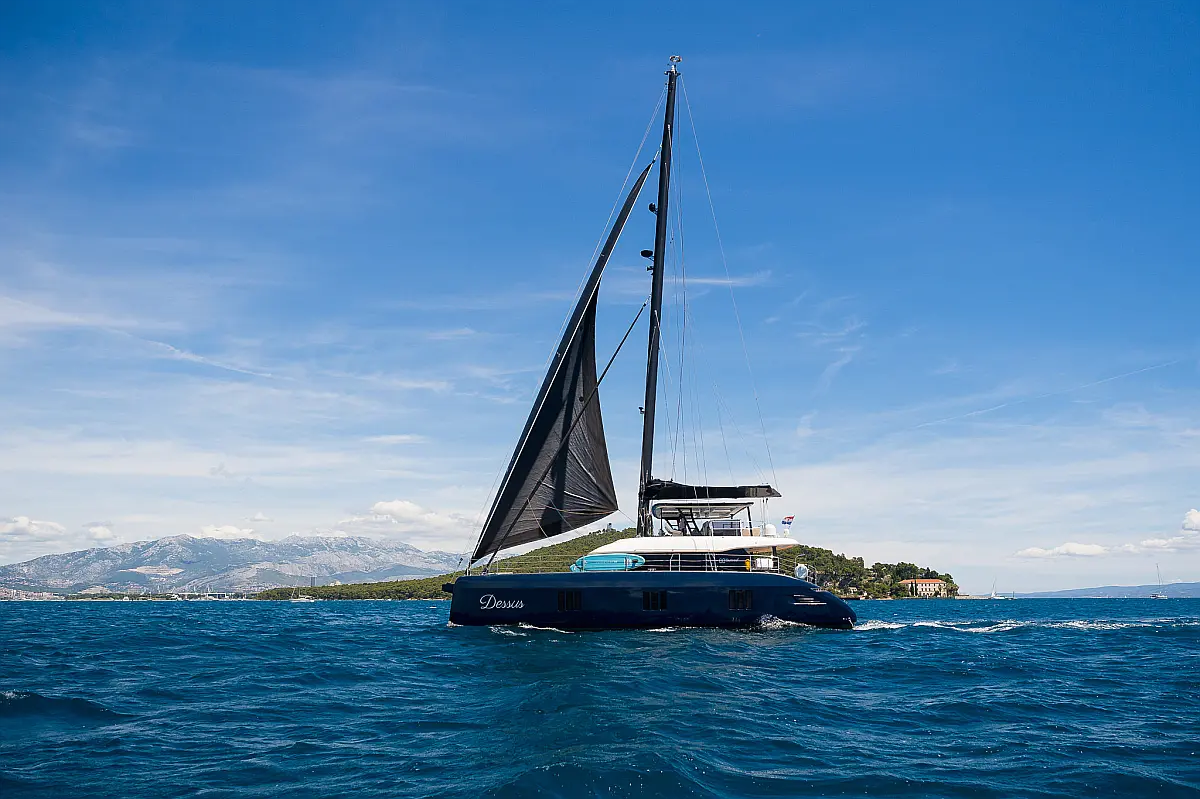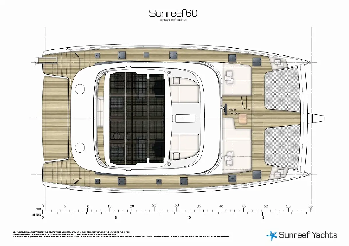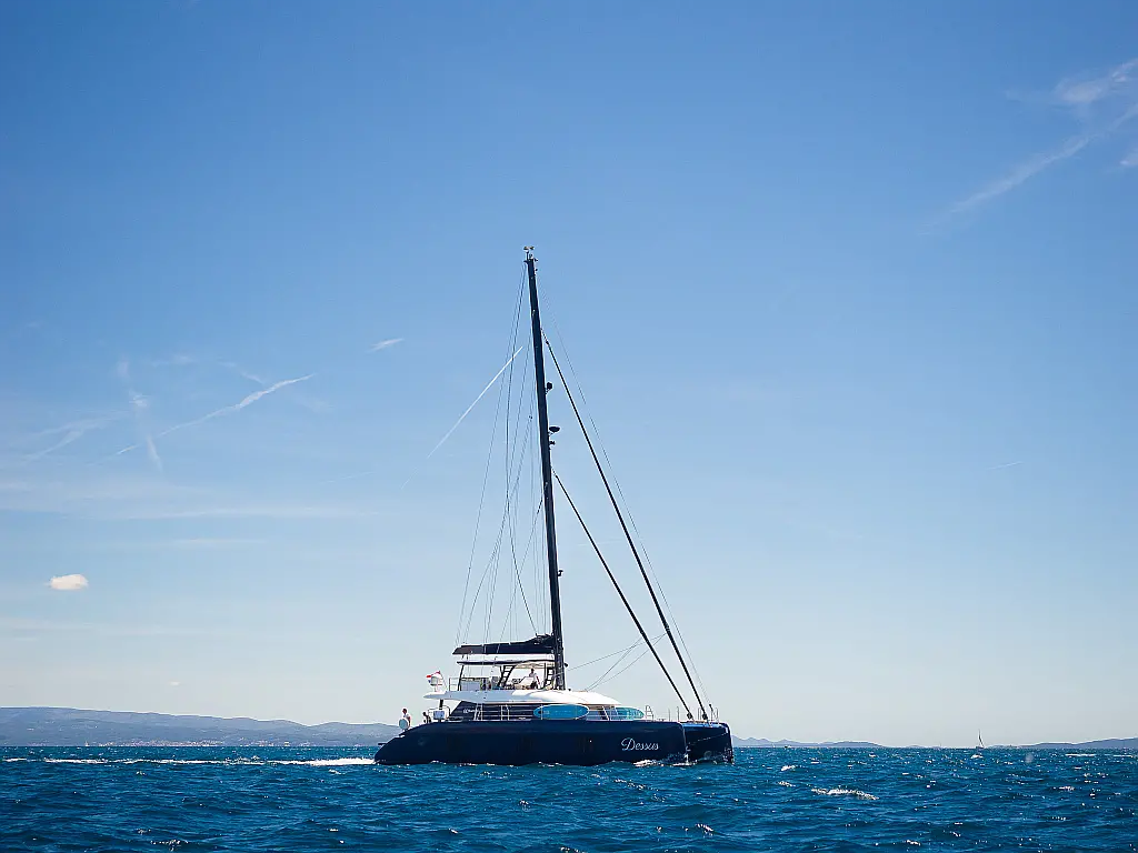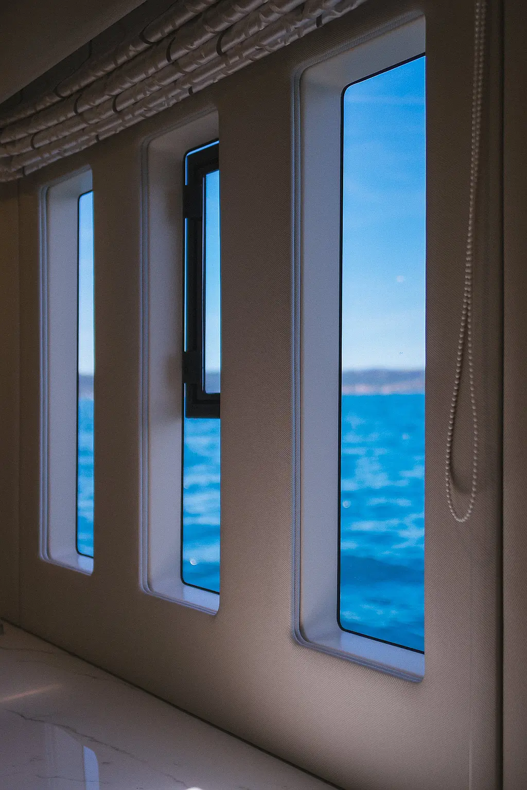 Cockpit speakers, Barbecue grill in cockpit, Air condition, Heating, Swimming platform, Bimini, Teak deck, Refrigerator, Generator, Solar Panels, Outboard engine, Dinghy, Sprayhood