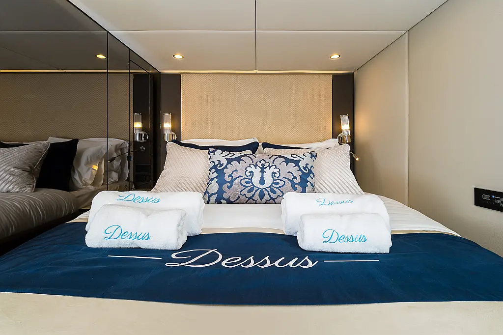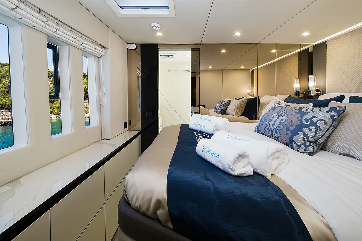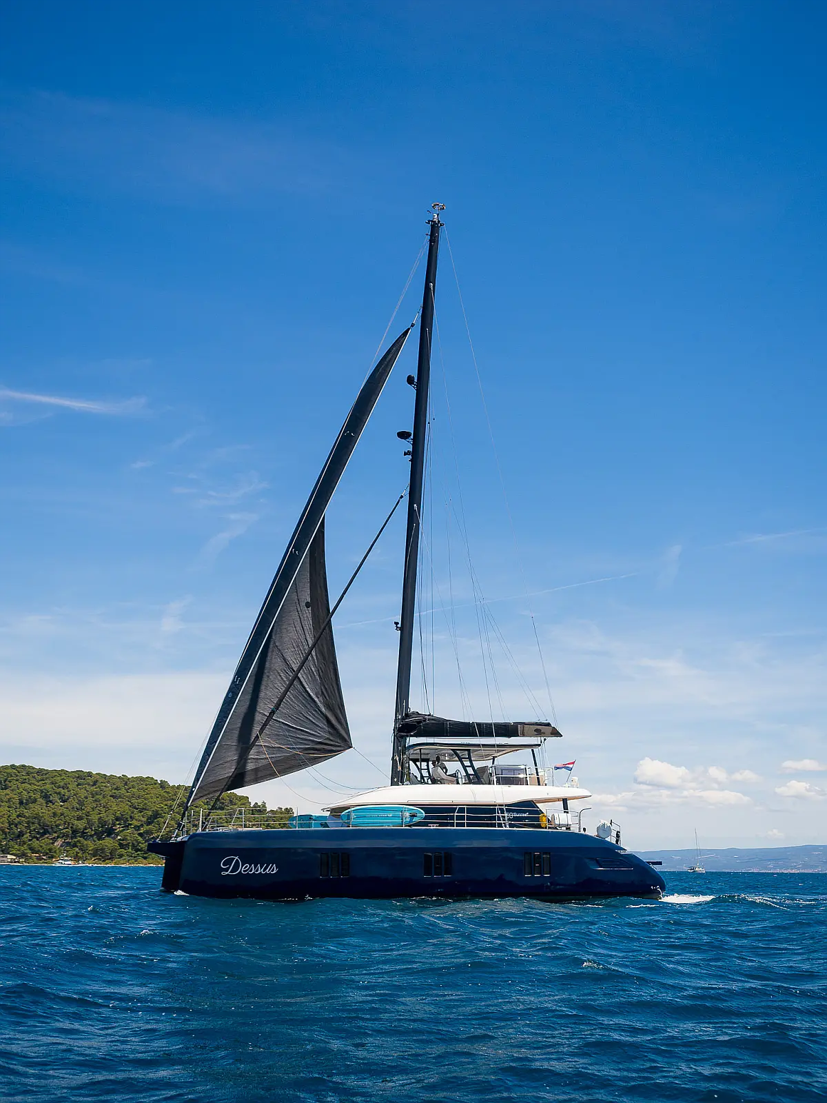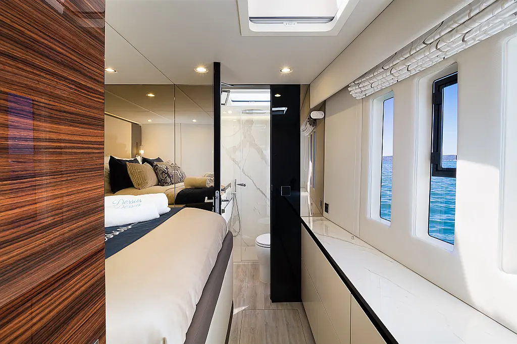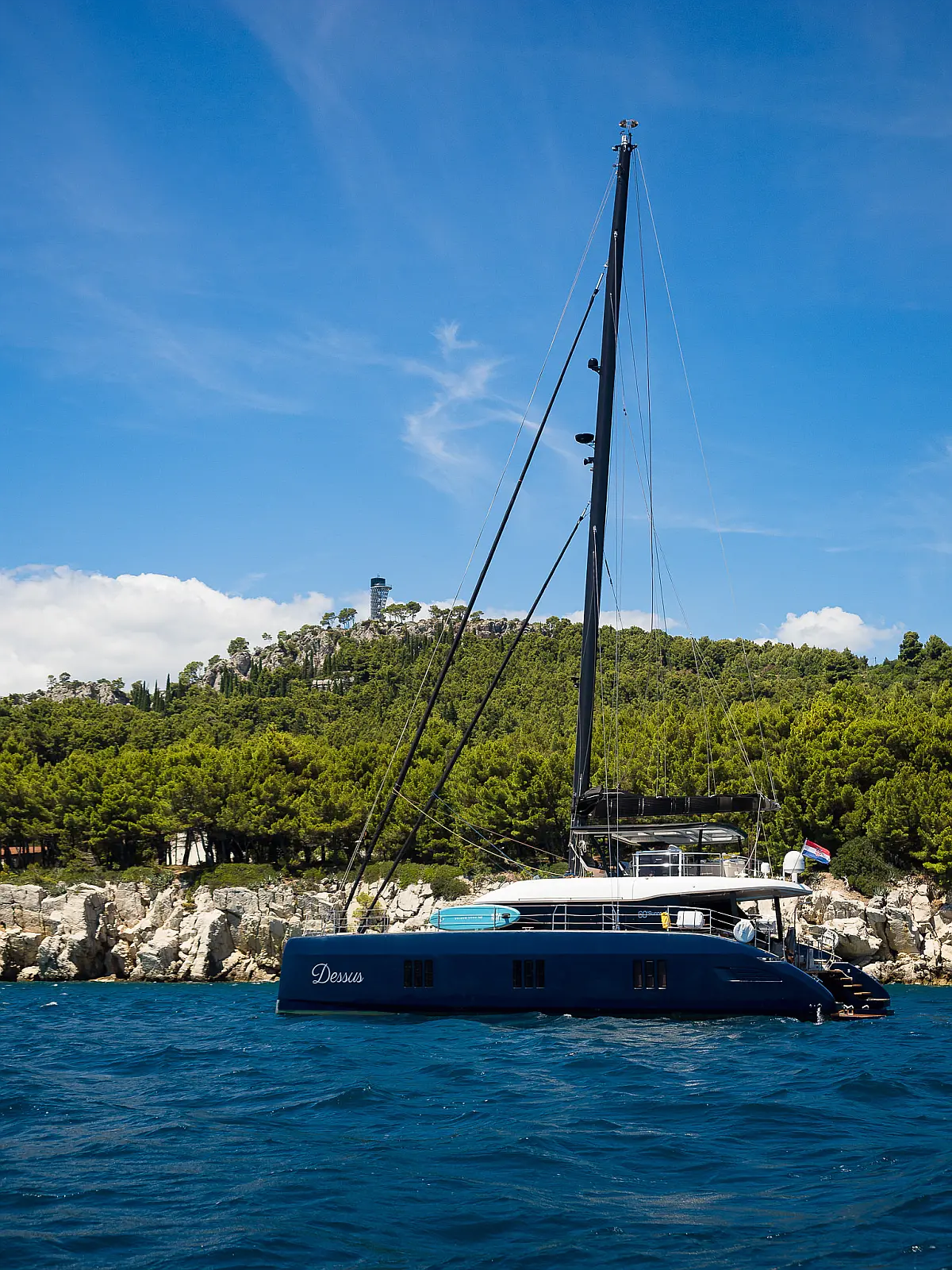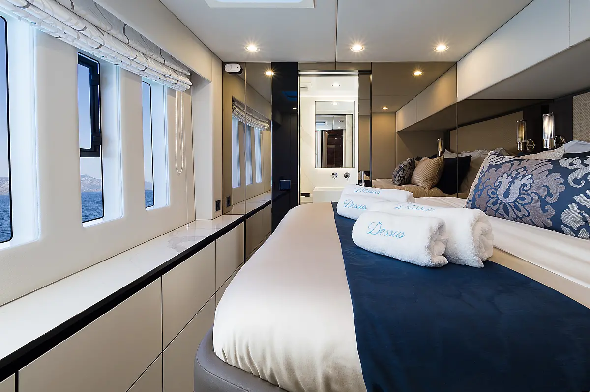 Cockpit speakers, Barbecue grill in cockpit, Air condition, Heating, Swimming platform, Bimini, Teak deck, Refrigerator, Generator, Solar Panels, Outboard engine, Dinghy, Sprayhood
