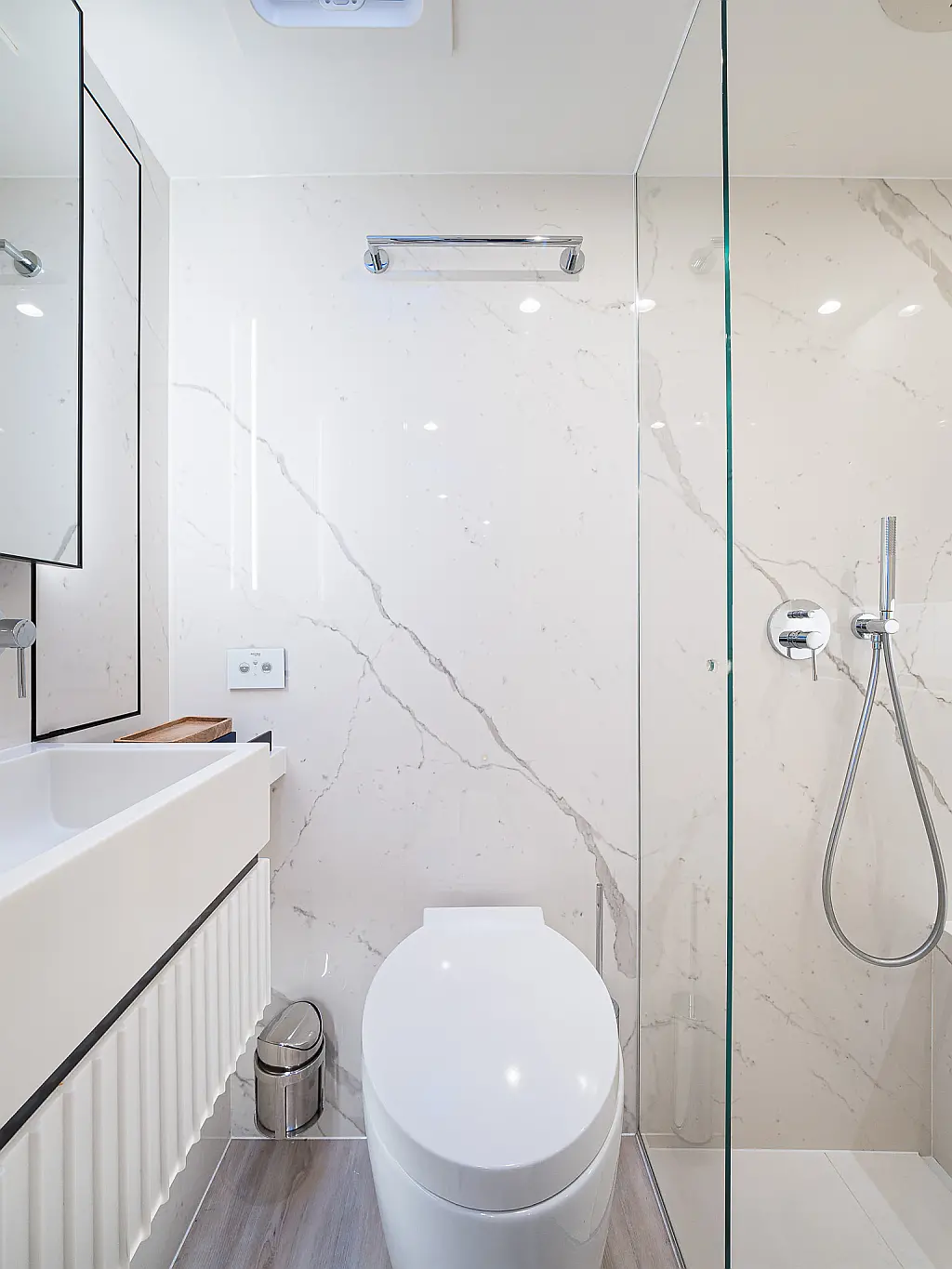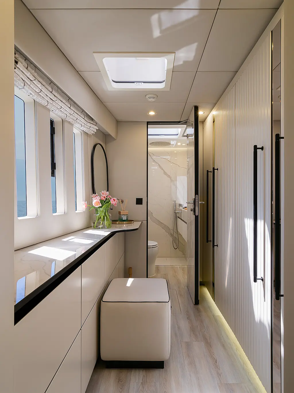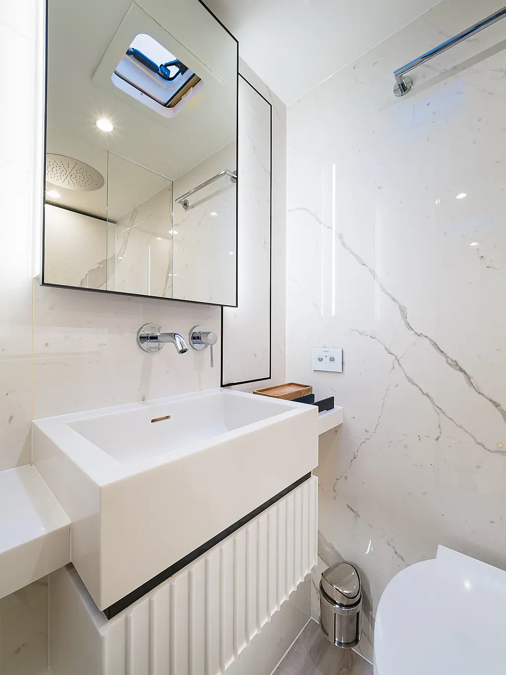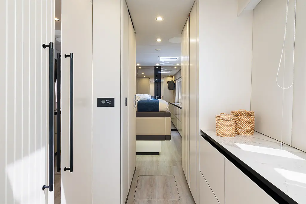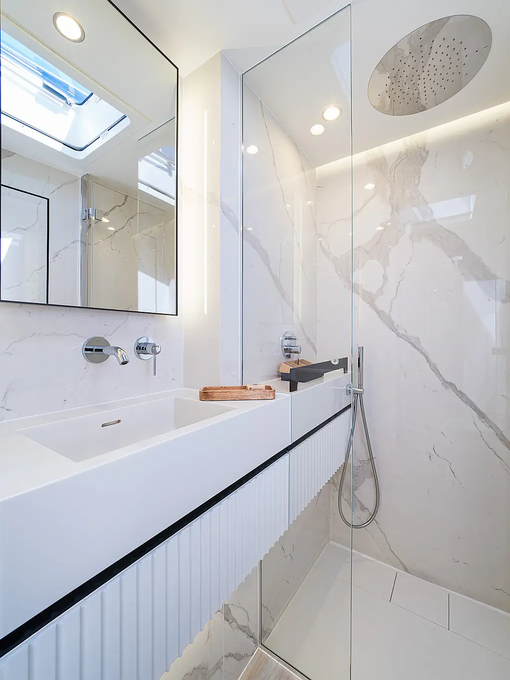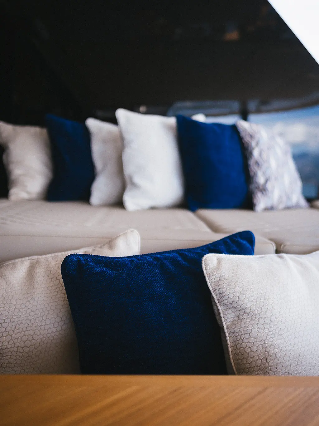 Cockpit speakers, Barbecue grill in cockpit, Air condition, Heating, Swimming platform, Bimini, Teak deck, Refrigerator, Generator, Solar Panels, Outboard engine, Dinghy, Sprayhood