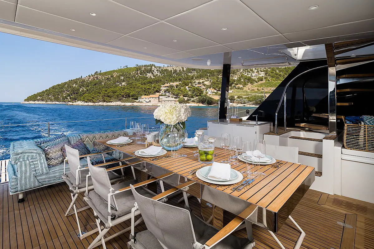 Cockpit speakers, Air condition, Swimming platform, Teak deck, Refrigerator, Generator