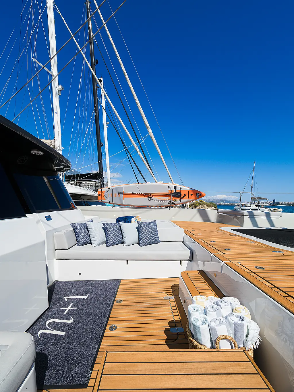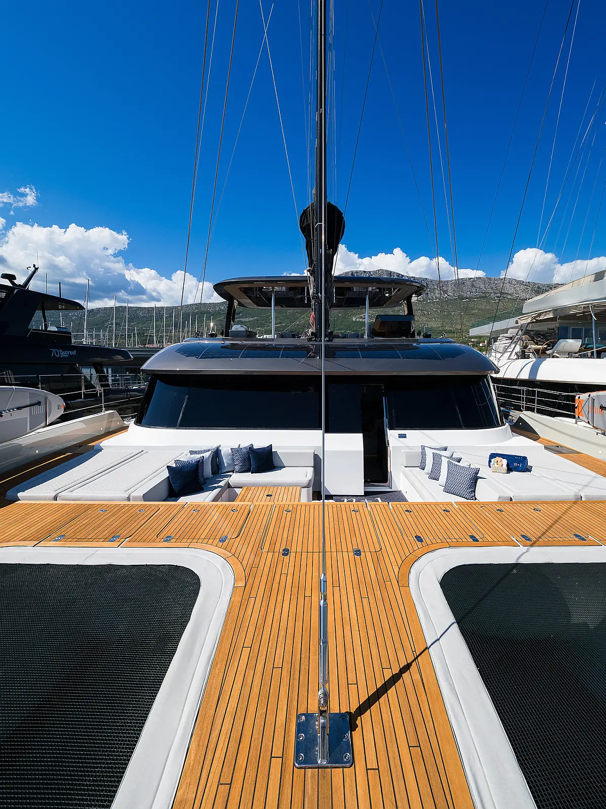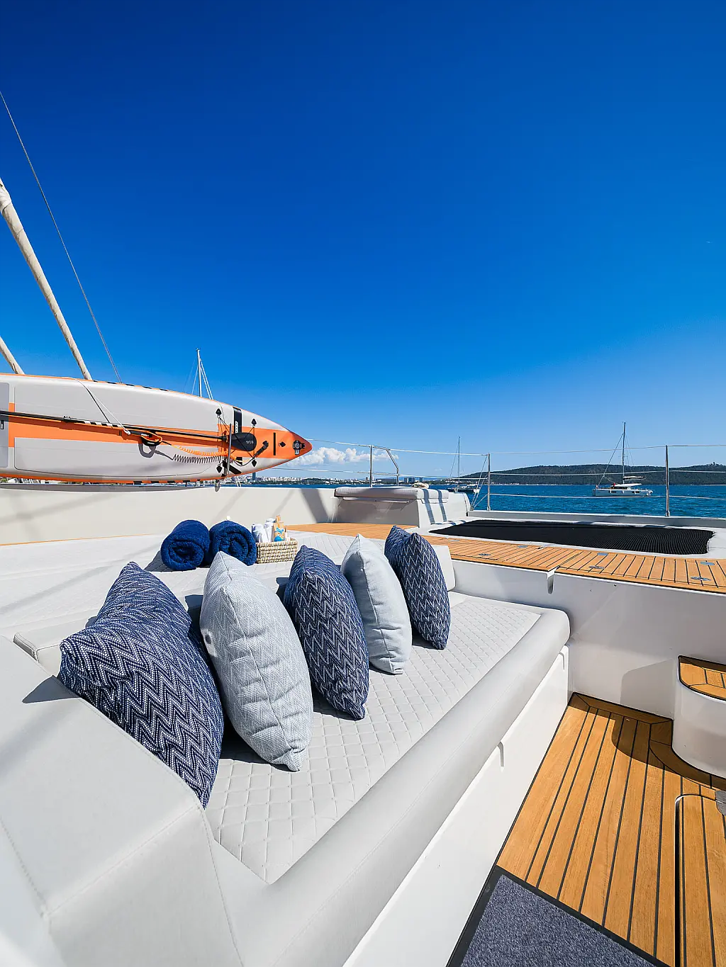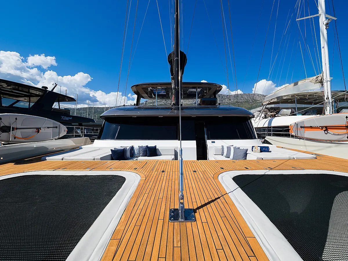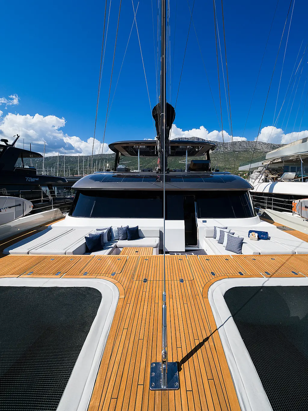 Cockpit speakers, Barbecue grill in cockpit, Air condition, Heating, Swimming platform, Bimini, Teak deck, Refrigerator, Generator, Solar Panels, Dinghy, Sprayhood