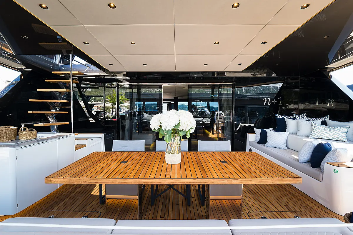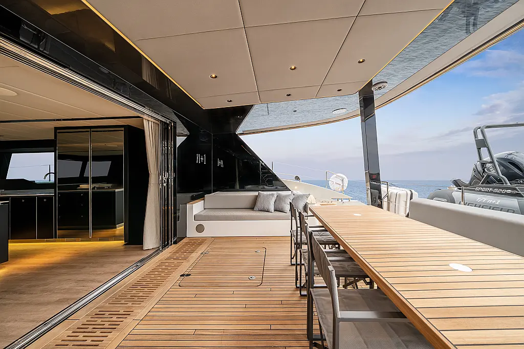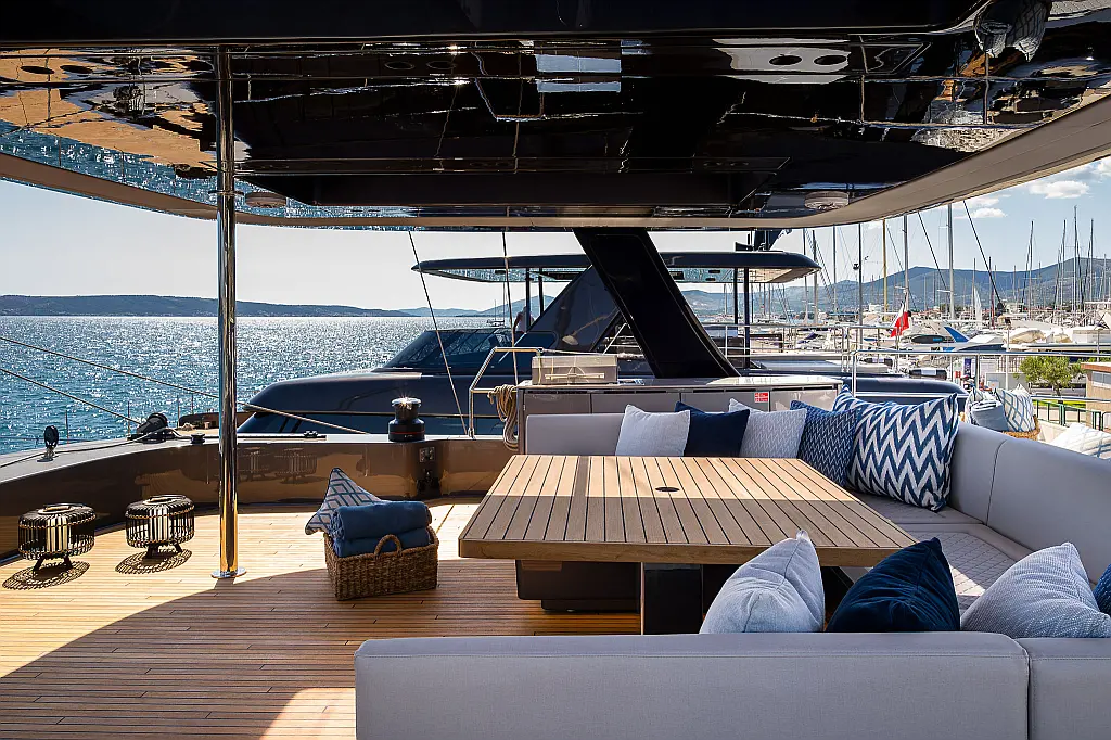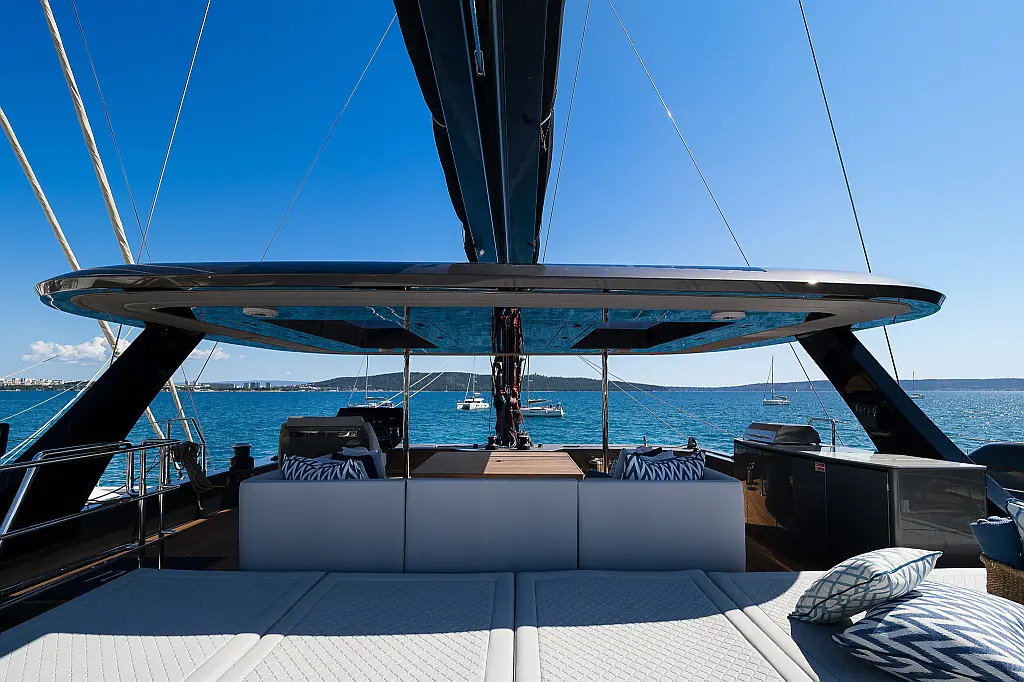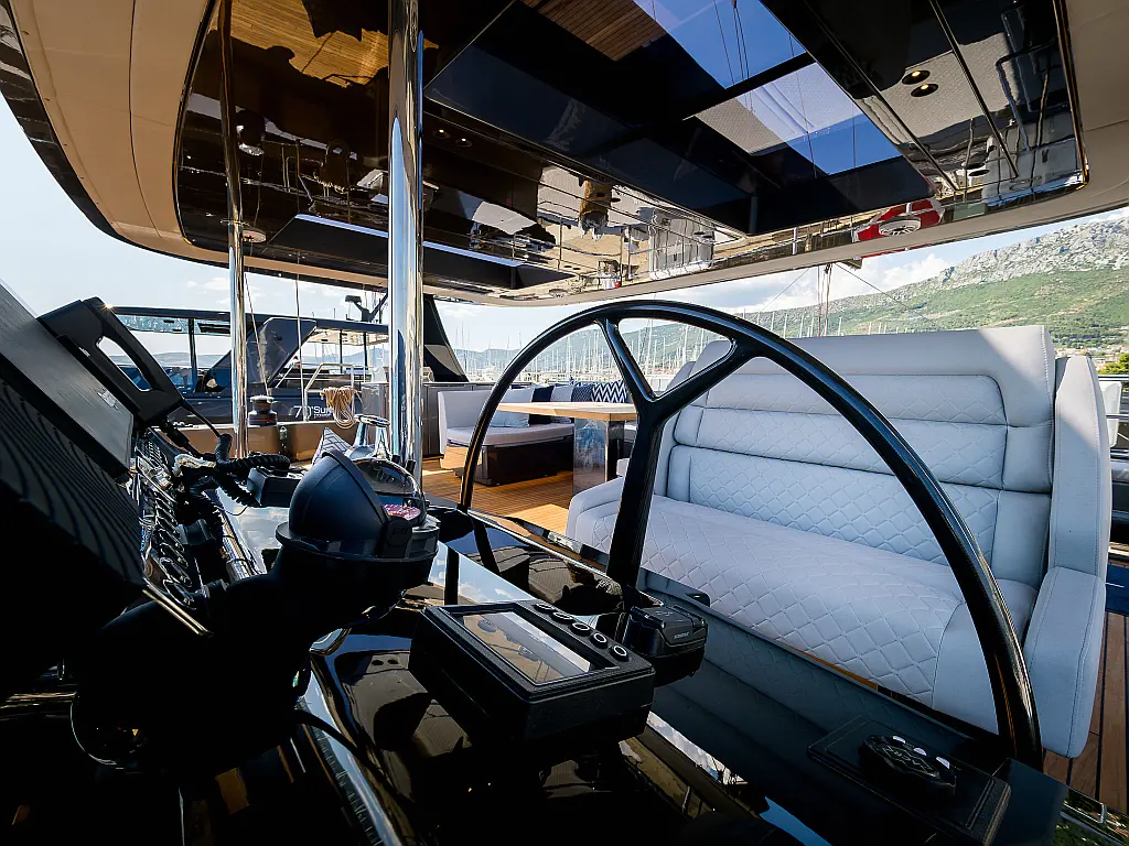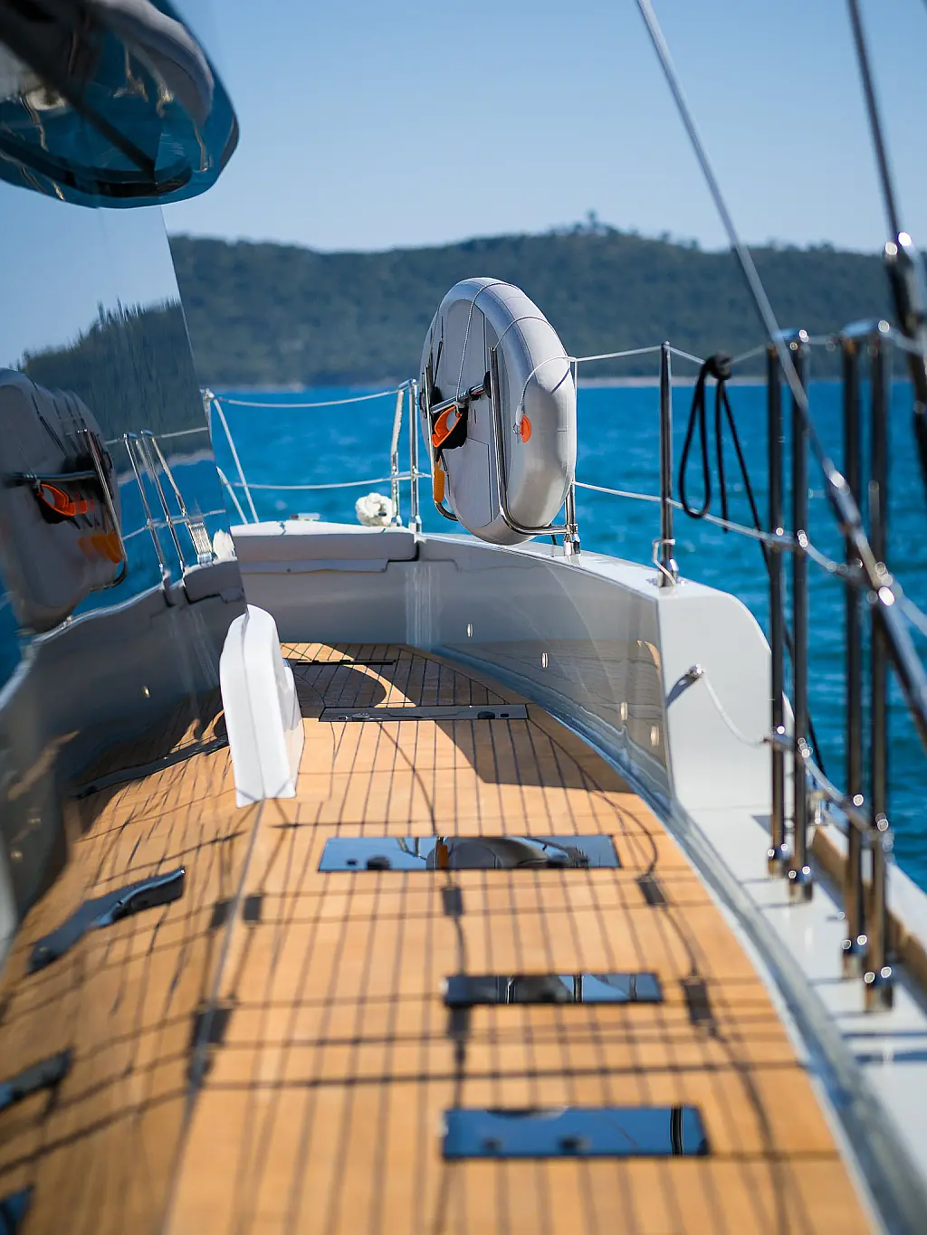 Cockpit speakers, Barbecue grill in cockpit, Air condition, Heating, Swimming platform, Bimini, Teak deck, Refrigerator, Generator, Solar Panels, Dinghy, Sprayhood