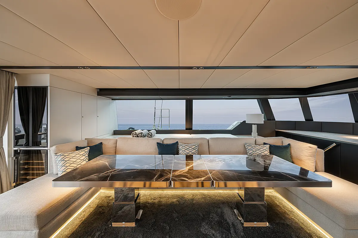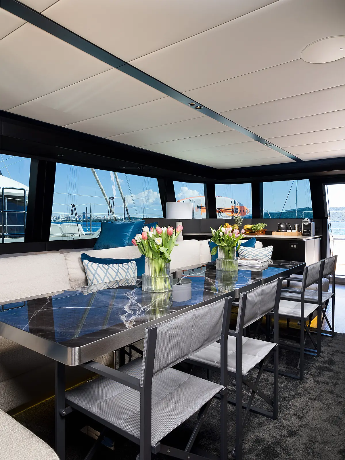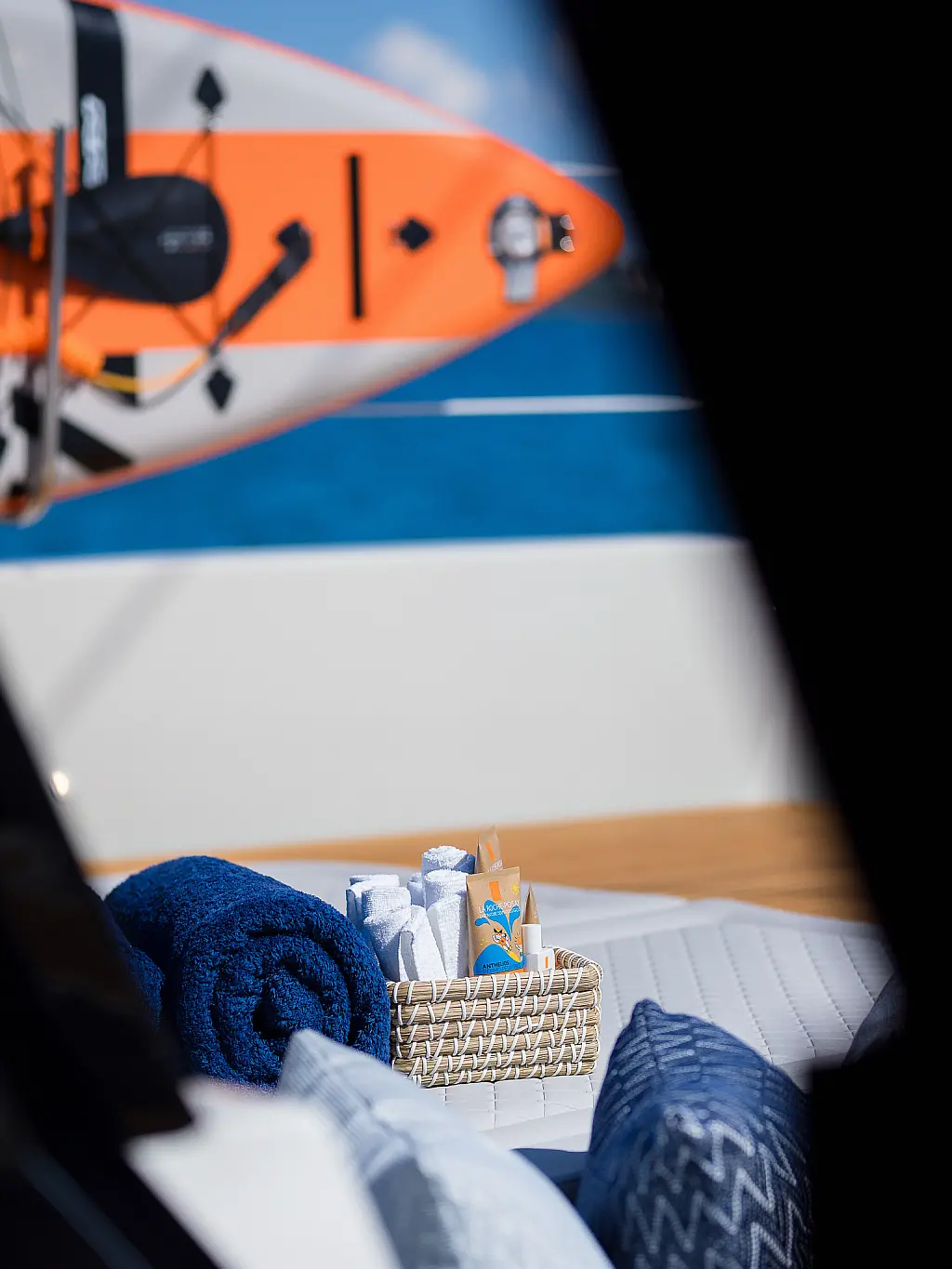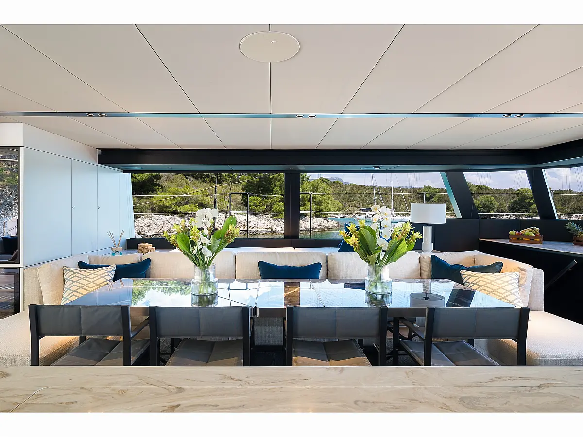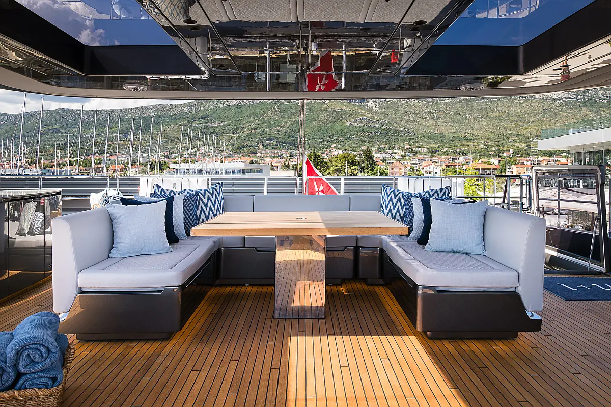 Cockpit speakers, Barbecue grill in cockpit, Air condition, Heating, Swimming platform, Bimini, Teak deck, Refrigerator, Generator, Solar Panels, Dinghy, Sprayhood